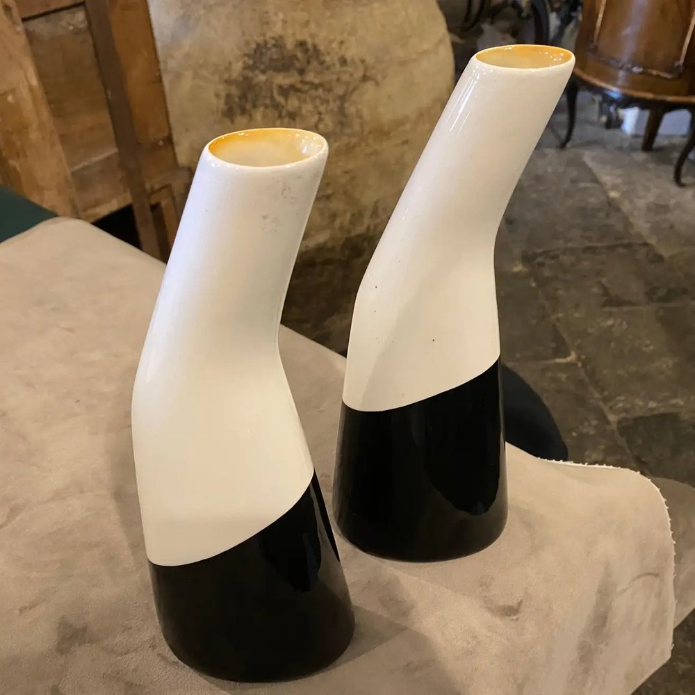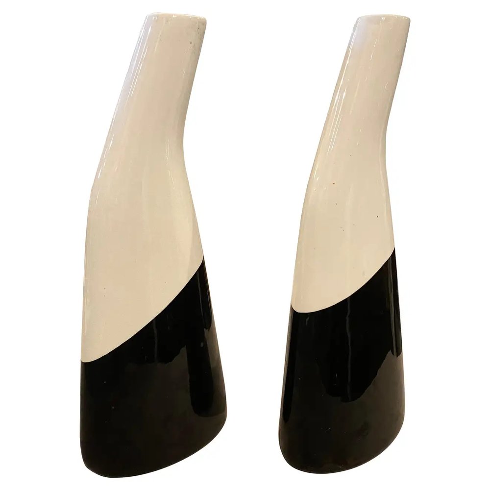 Italian Black and White Ceramic Vases by La Donatella, 1960s, Set of 2