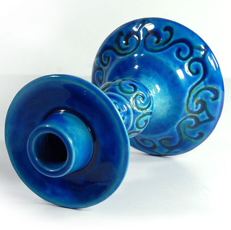 Italian Blue Ceramic Candleholder from Italica Ars, 1970s