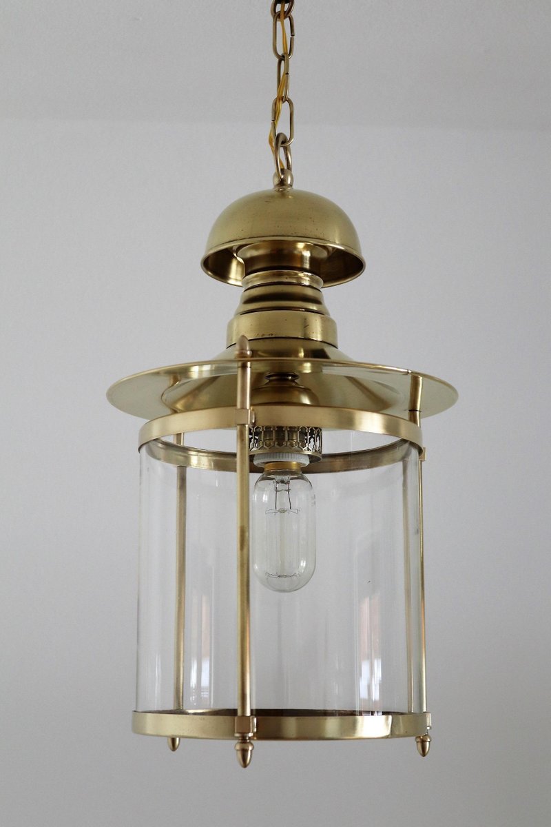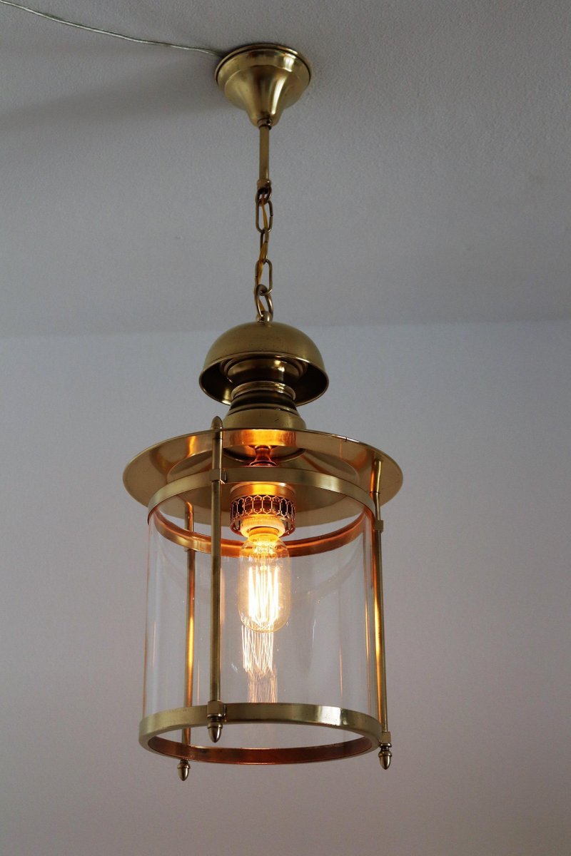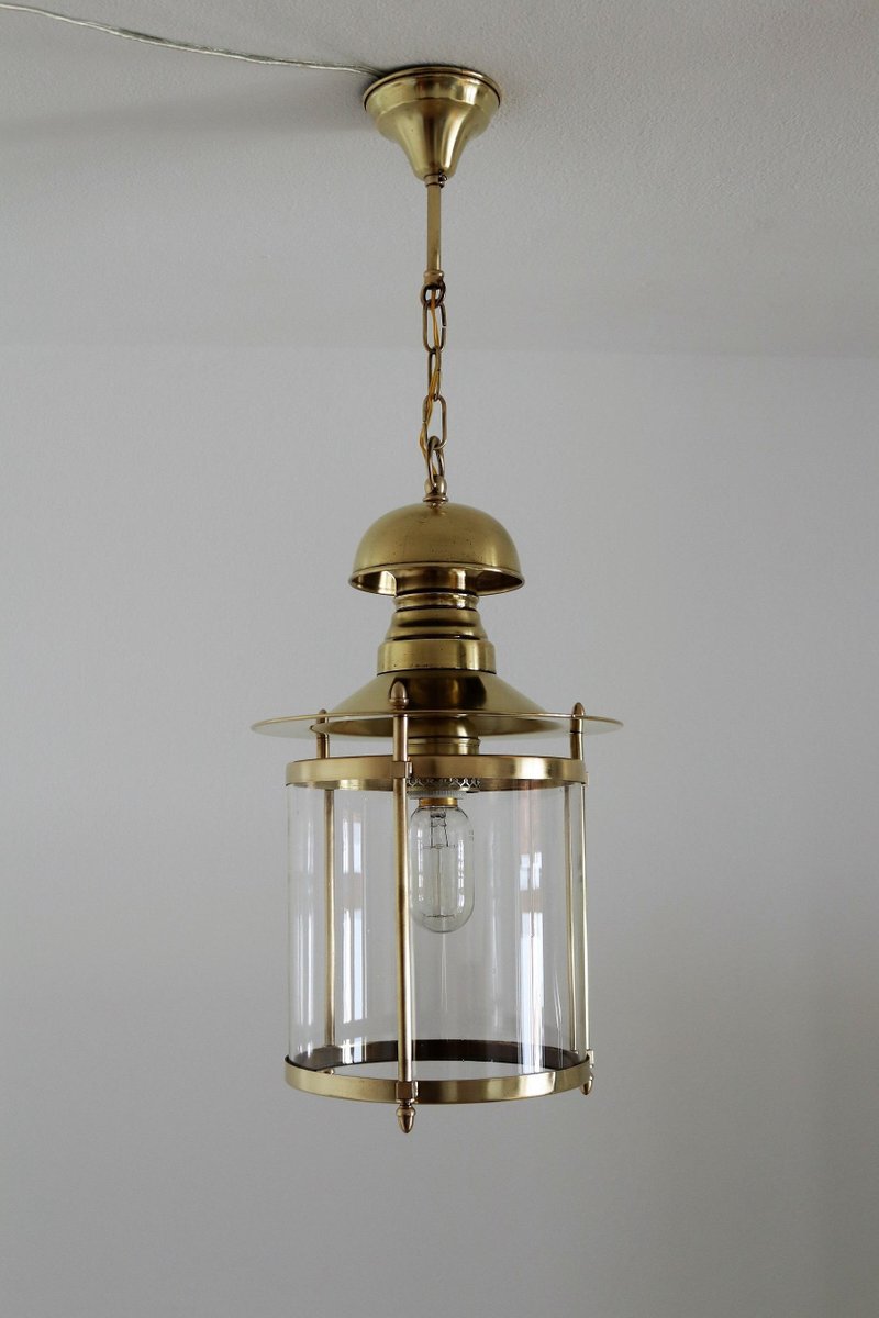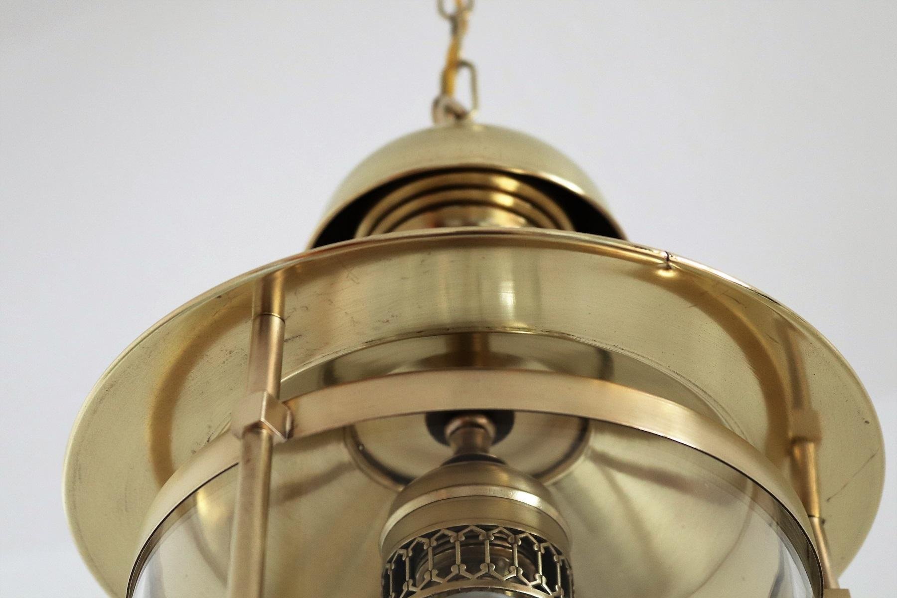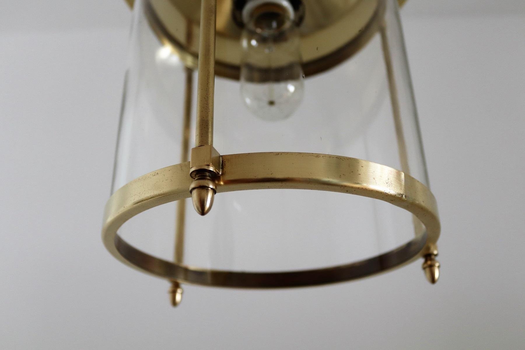 Italian Brass and Glass Pendant Lamp, 1970s