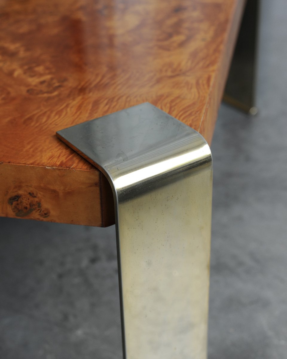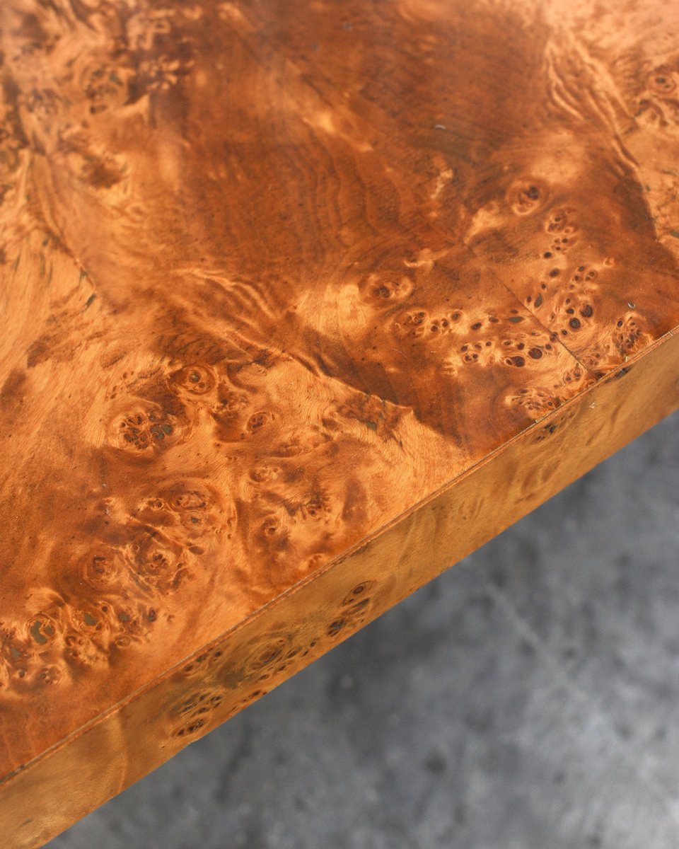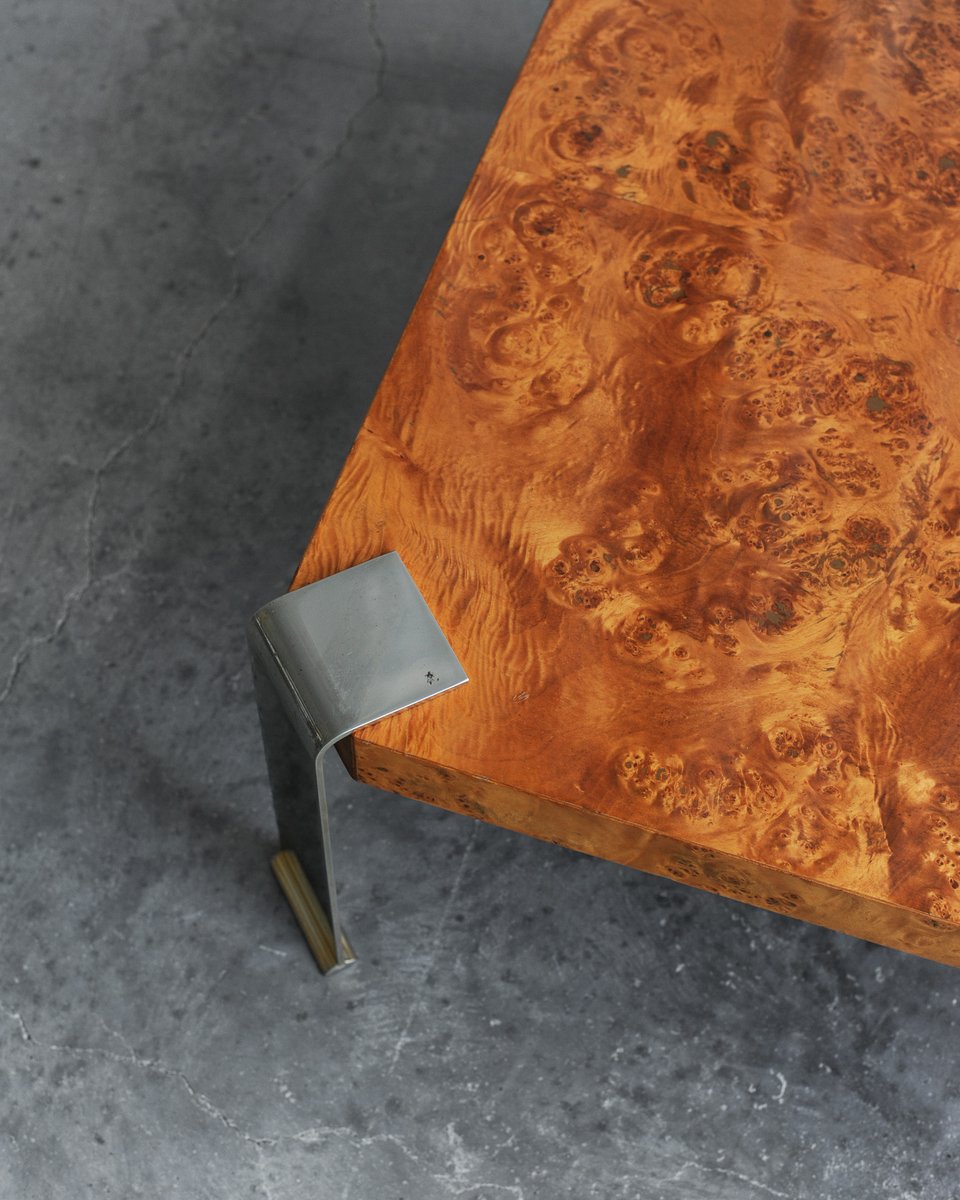 In the early 1950s, Baughman traveled to the East Coast, where he designed collections for companies like Macy’s, Drexel, Winchendon Furniture. In 1951, his work received rave reviews in The New York Times. Around 1953, he went to High Point, North Carolina—a major center for US furniture manufacturing at the time—looking for partners. Although most companies thought his designs were too modern, Thayer Coggin Inc. recognized his potential right away. A handshake deal between Baughman and Mr. Coggin solidified a collaboration that would last fifty years. From 1953 until 2003, the pair collaborated on numerous midcentury modern furniture collections that were characterized by bold yet controlled proportions and fine materials in sophisticated finishes. Baughman was particularly fond of using sleek chrome bases, varnished burled wood, and tufted upholstery. Iconic designs from the collaboration include the 820-400 Chaise (1954), 955-304 Sofa (1954), 951-103 Milo Lounge Chair (1962), T-Back 989-103 Lounge Chair (1963), Viceroy Recliner (1965), the Wave Chaise (1960s), and 1224 Circle Sectional (1970s).