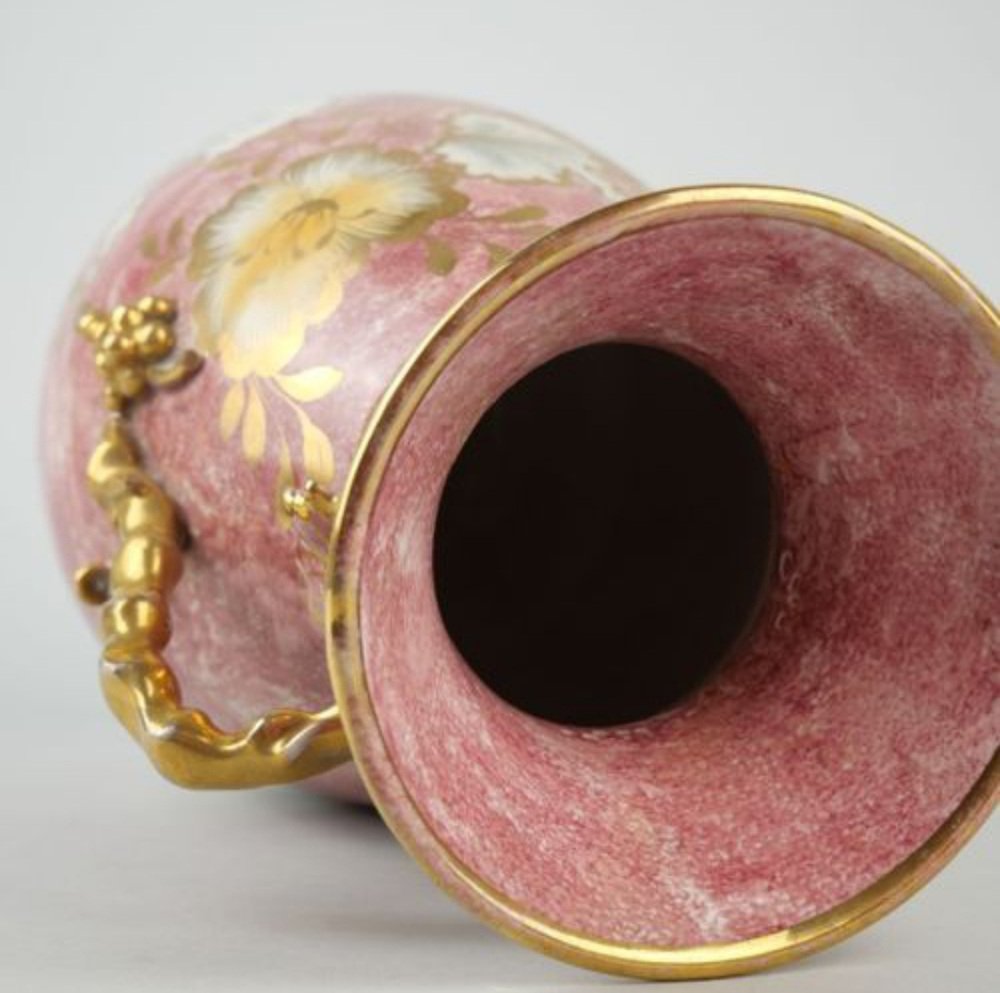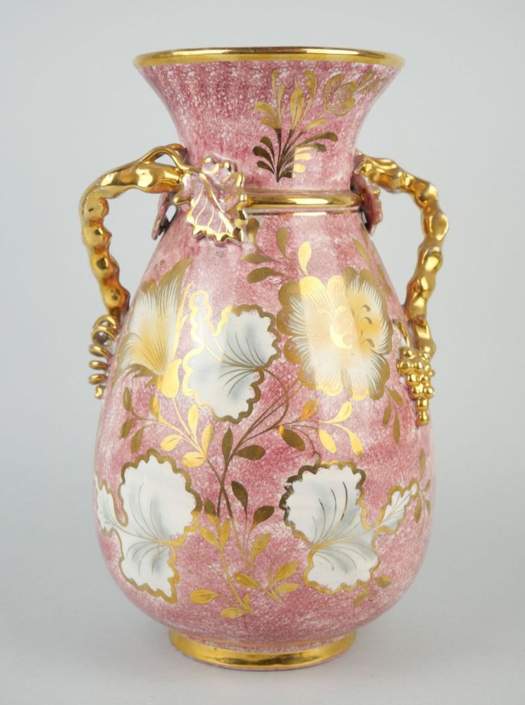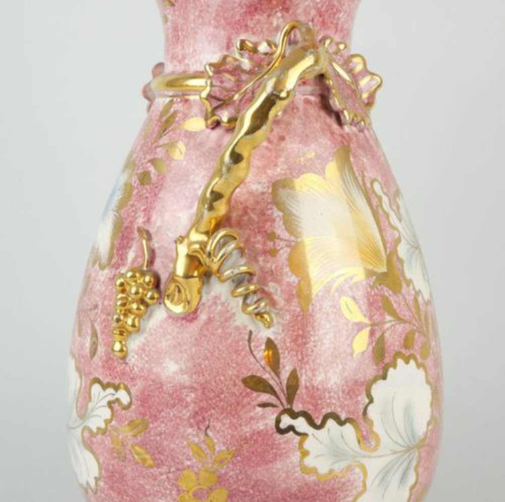 Italian Handpainted Vase in Pink and Gold Vase from Mica