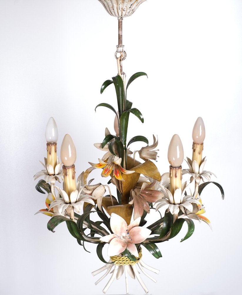 Italian Metal Flower Chandelier, 1960s