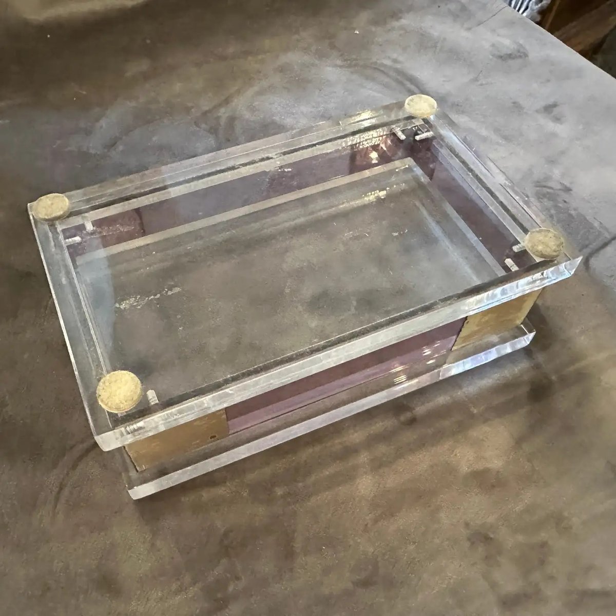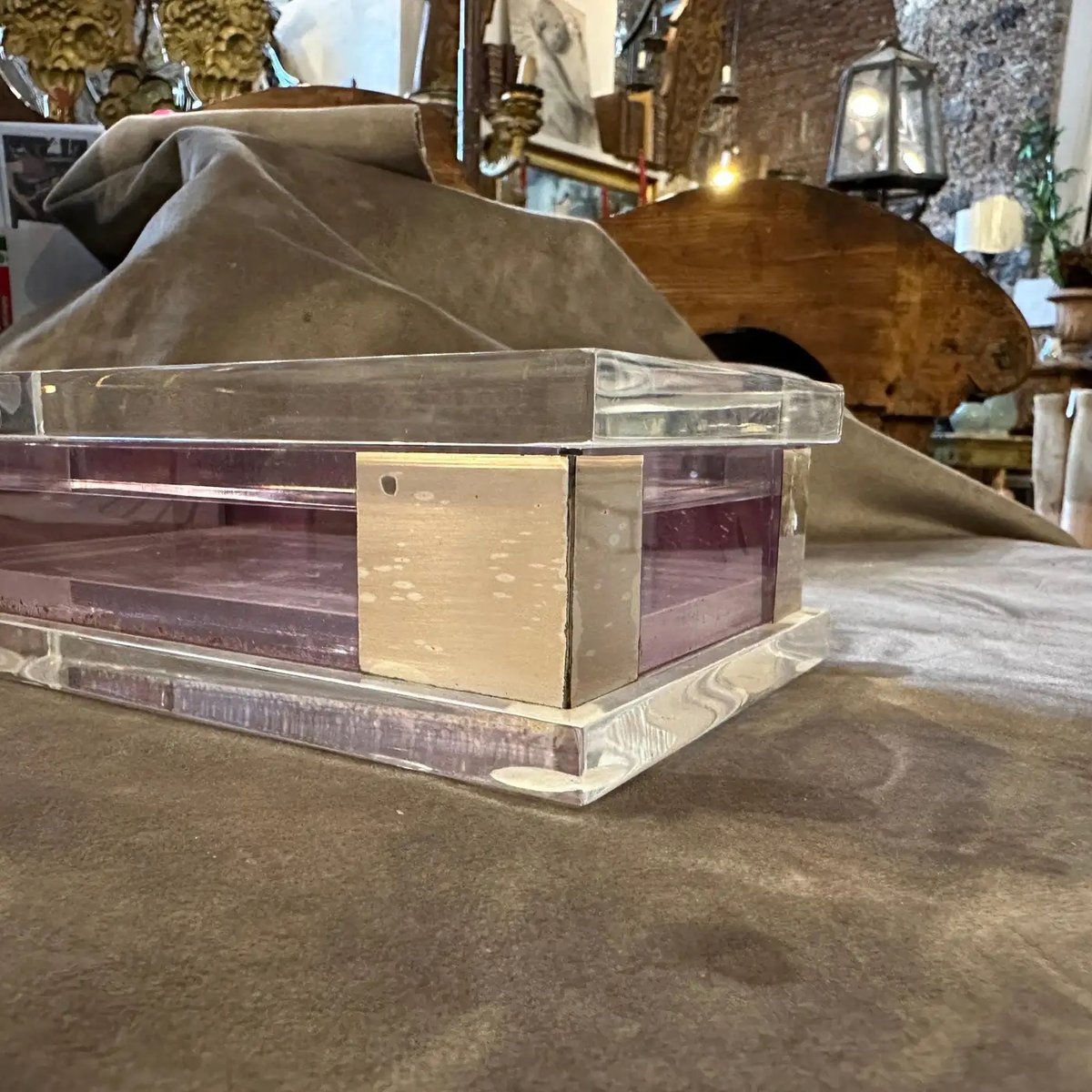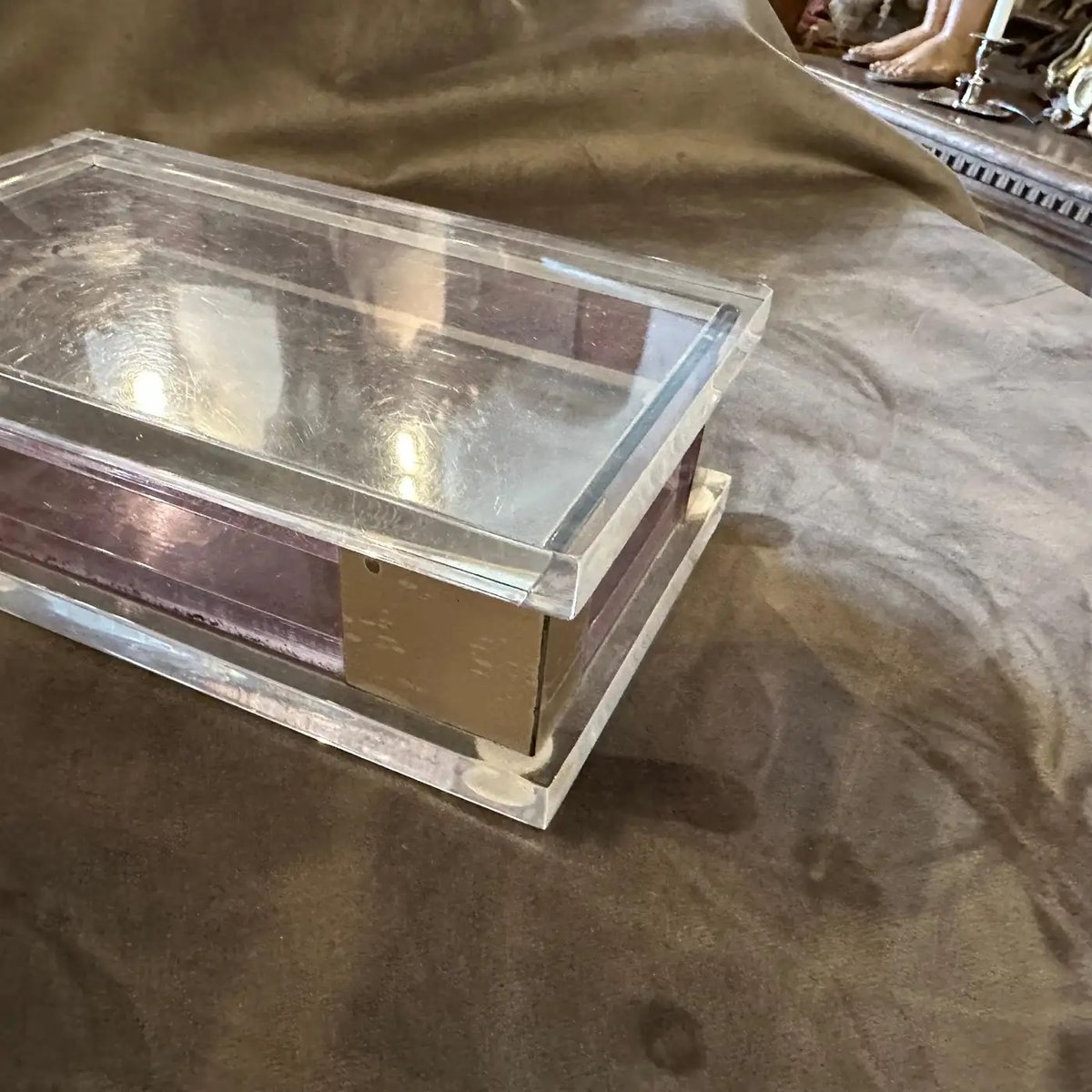 Italian Modernist Rectangular Vanity Box in White and Pink Acrylic Glass and Silver, 1980s