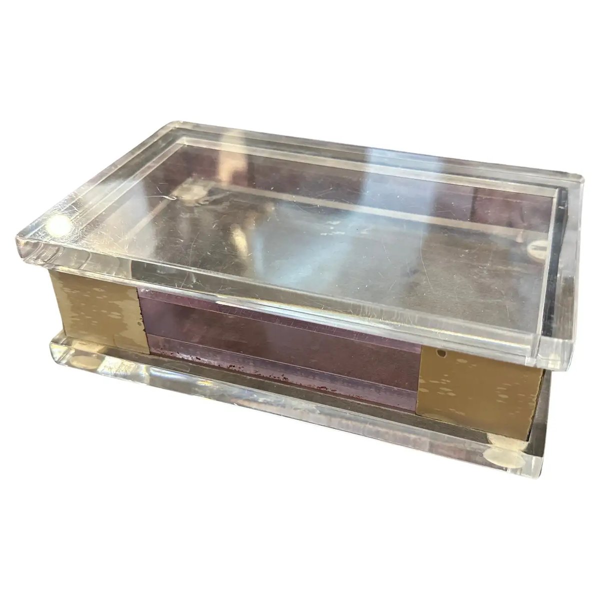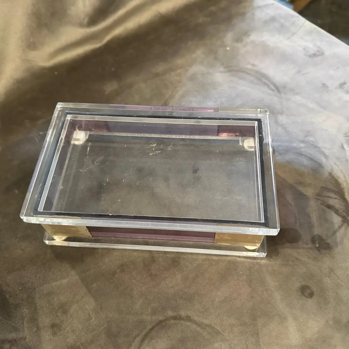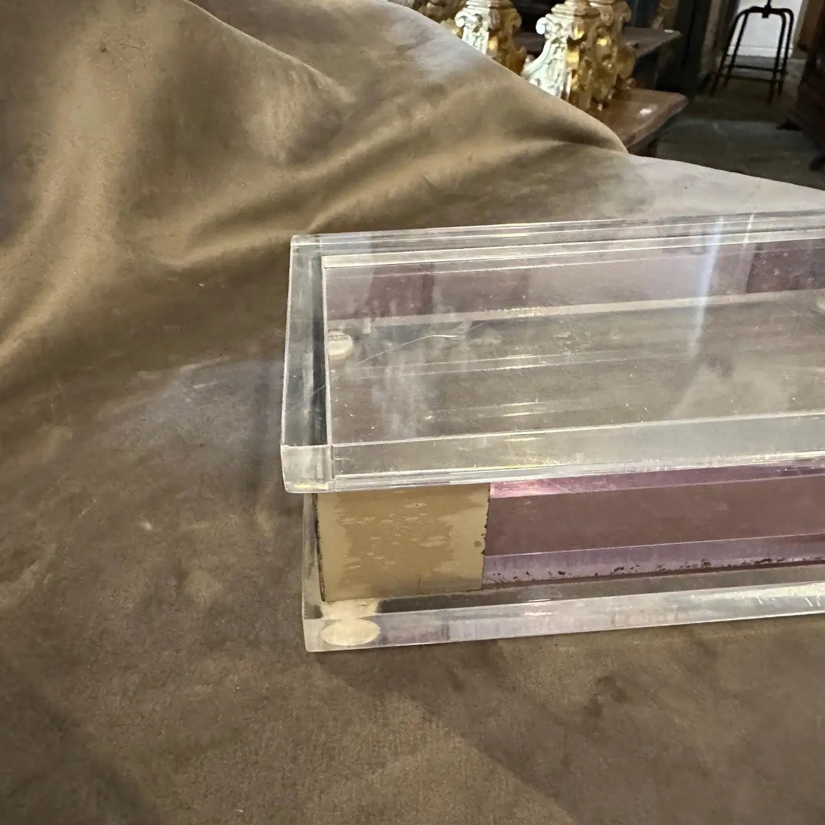 Italian Modernist Rectangular Vanity Box in White and Pink Acrylic Glass and Silver, 1980s