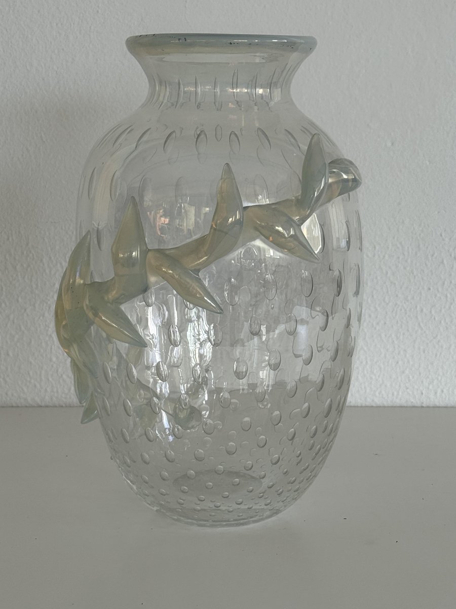 Italian Murano Glass Vase with Air Bubbles and Glass Garland, 1990s