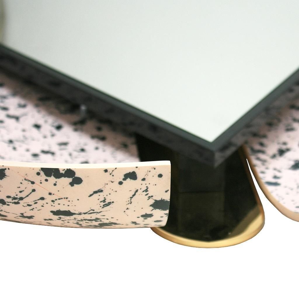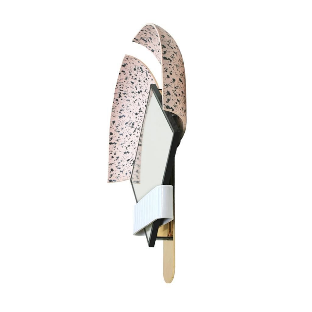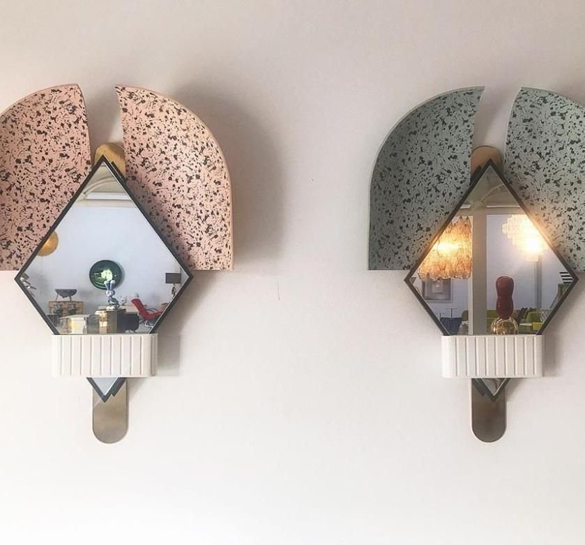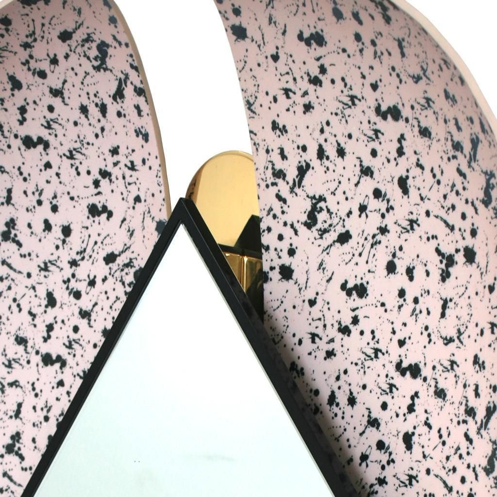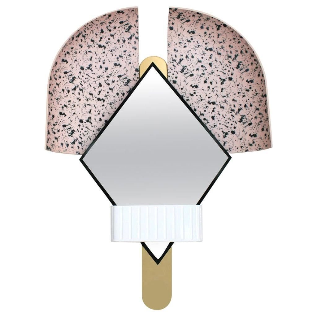 Italian Pink Bonnet Mirror in Gold Metal by Elena Salmistraro