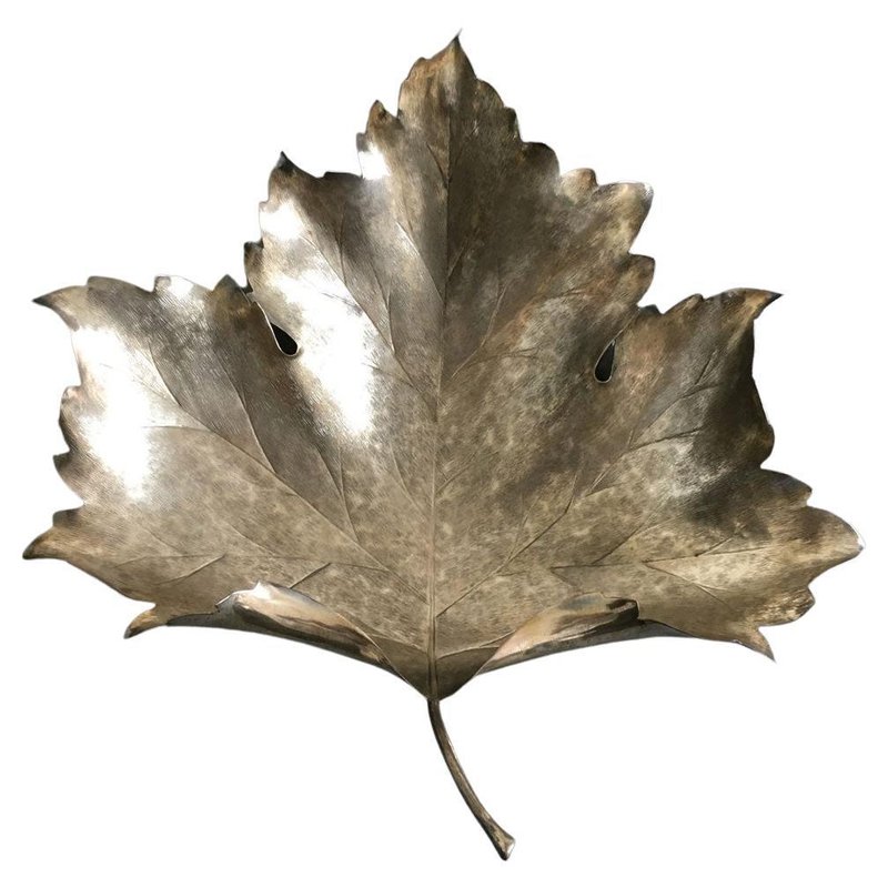 Italian Silver Bowl Leaf by Mario Buccellati, 1980