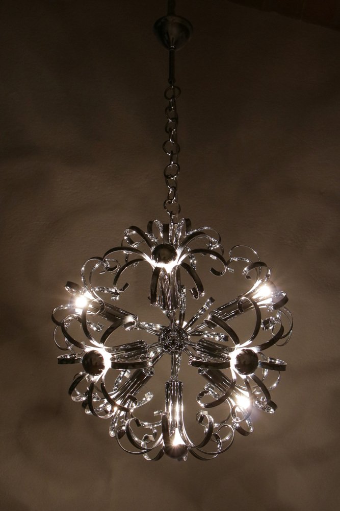 Italian Space Age Chrome Sputnik Chandelier, 1970s