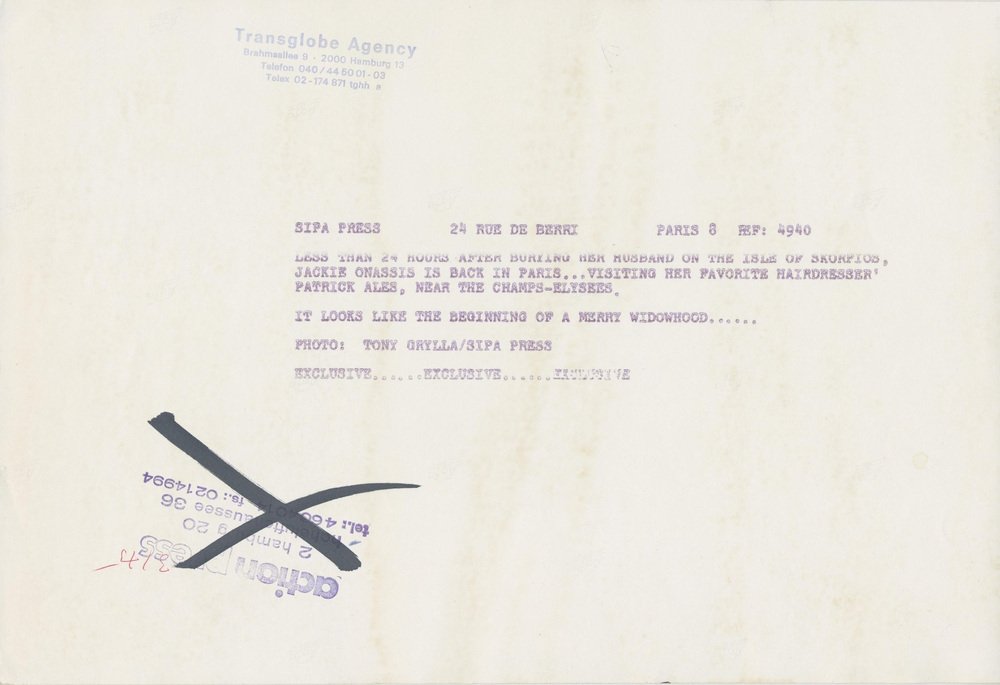 Jackie Kennedy in Paris, France, 1975, Photograph