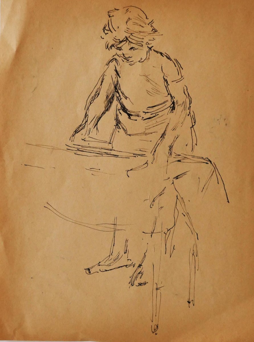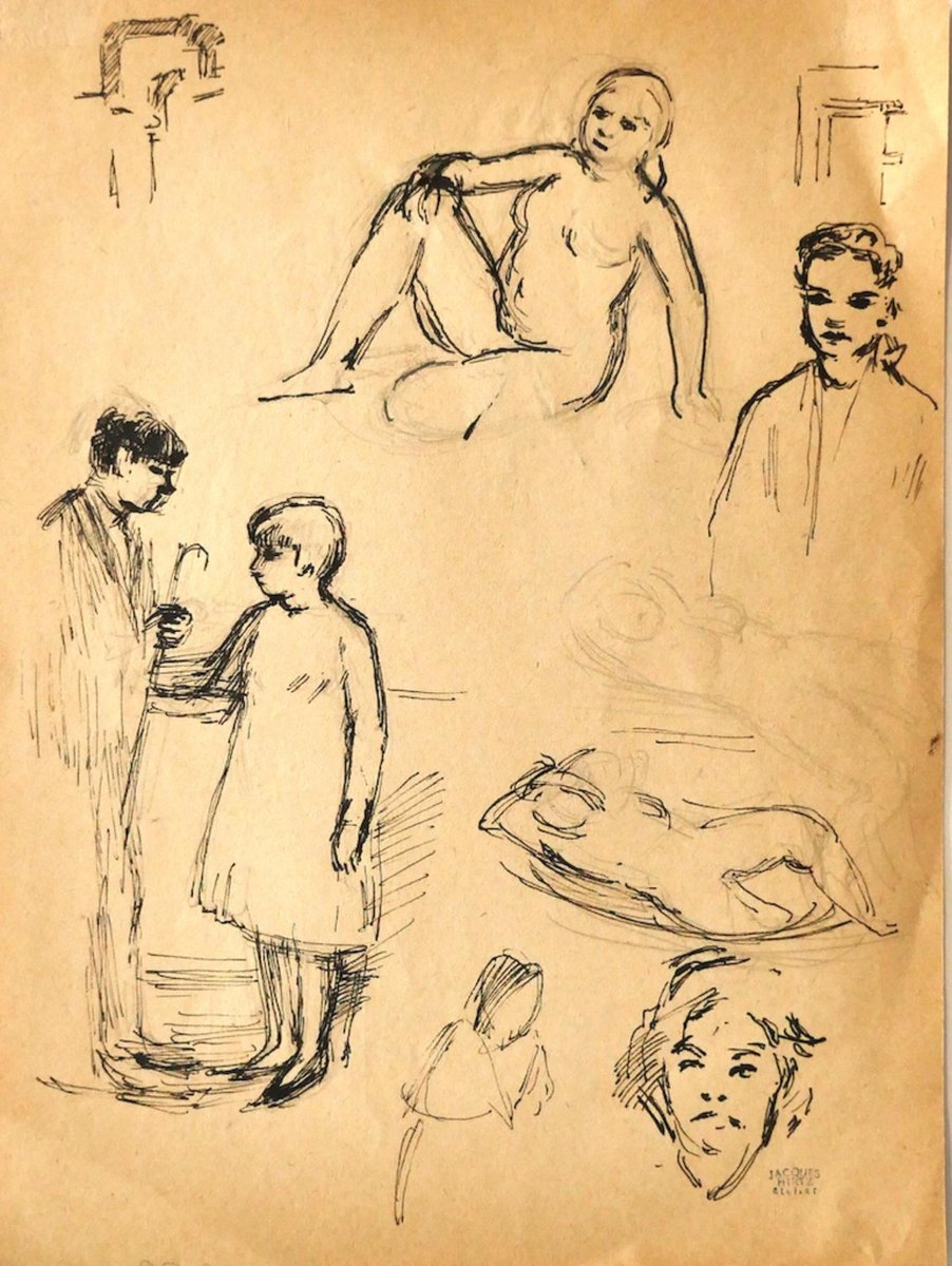 Jacques Hirtz, Figures, Pen Drawing, Mid-20th Century