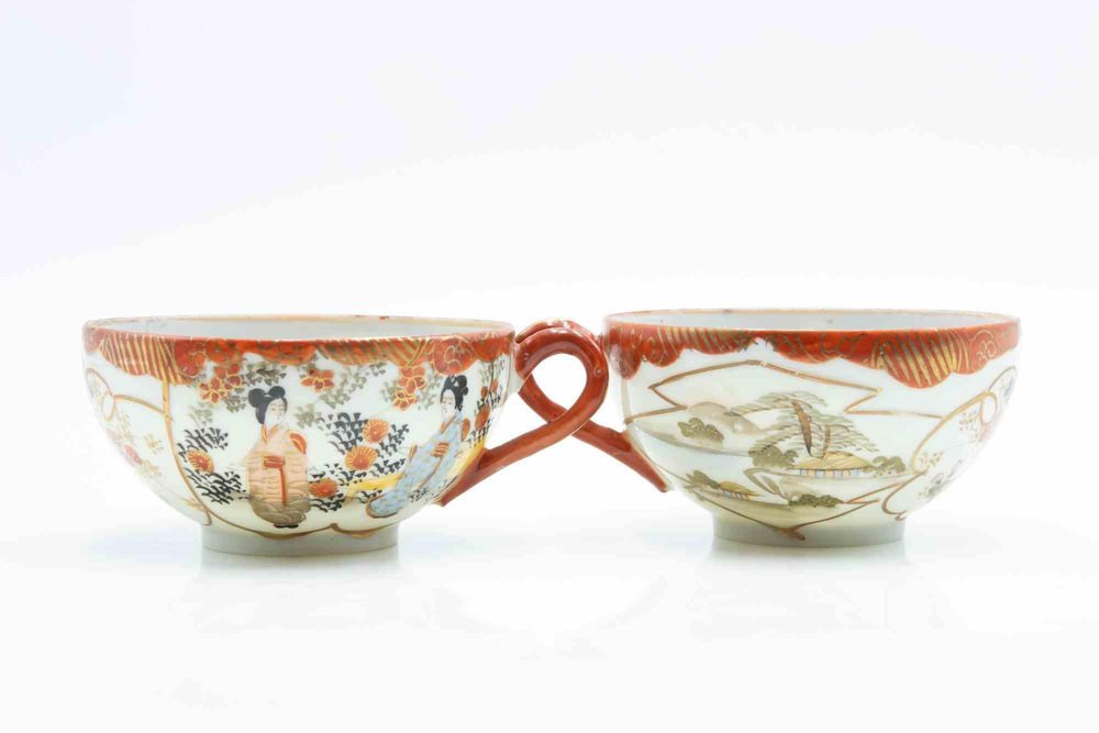 Japanese Cutani Eggshell Teacups, Set of 2