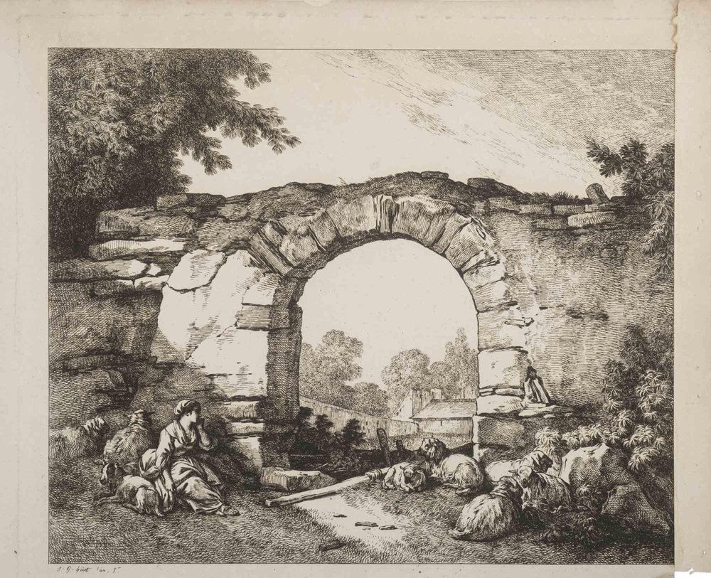 Jean Baptiste Huet, Landscape with Ruins, Original Etching, 19th-Century