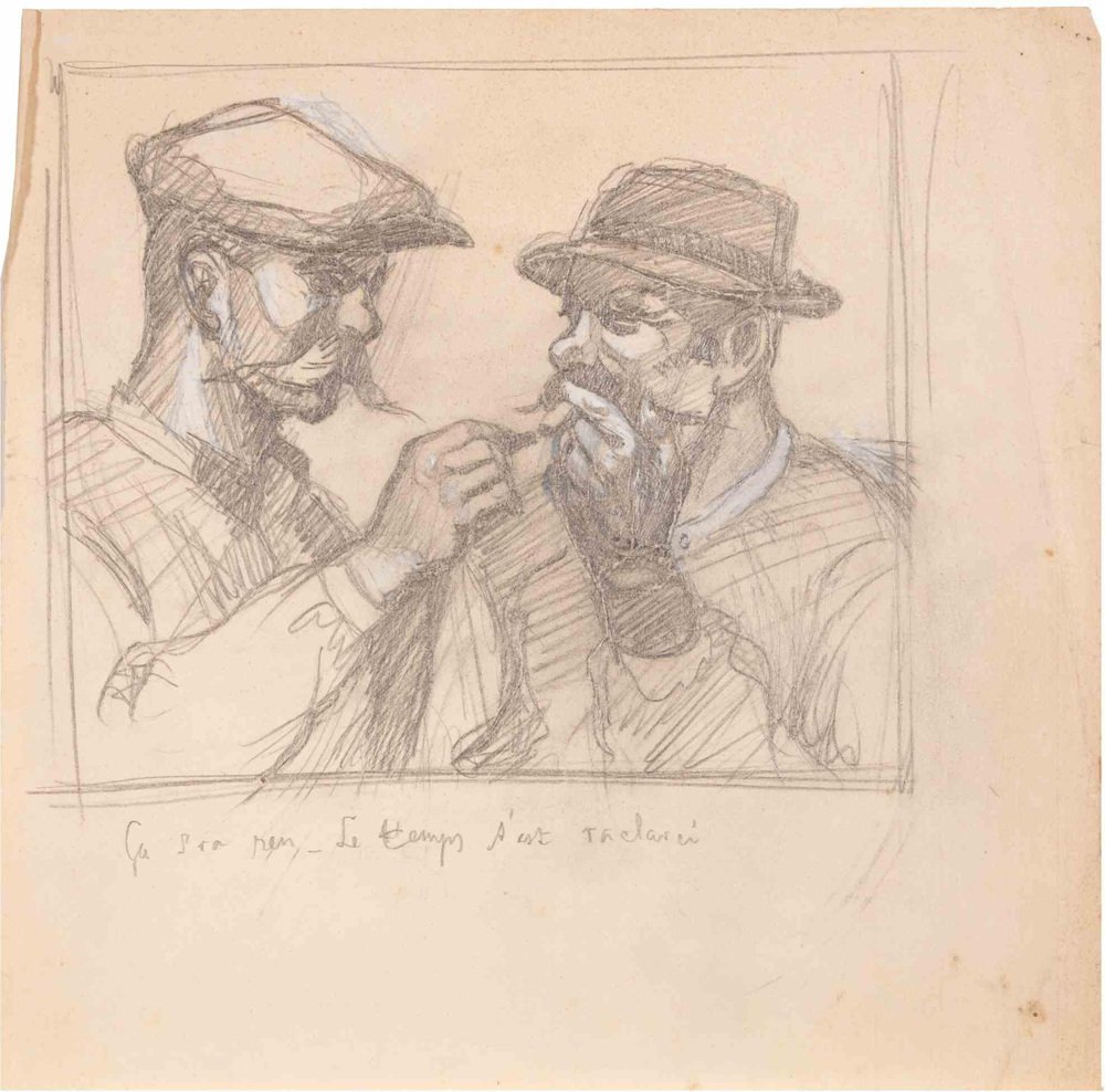 Jean Morin, Friends Smoking, Pencil Drawing, Early 20th Century