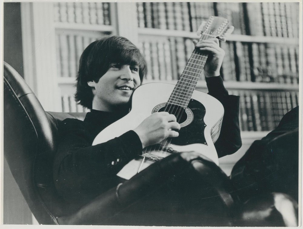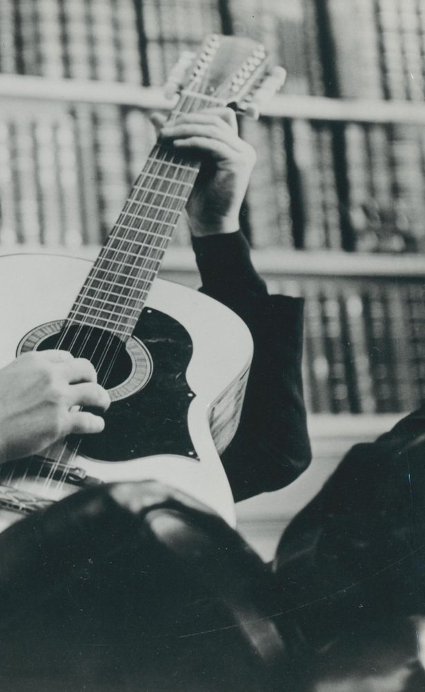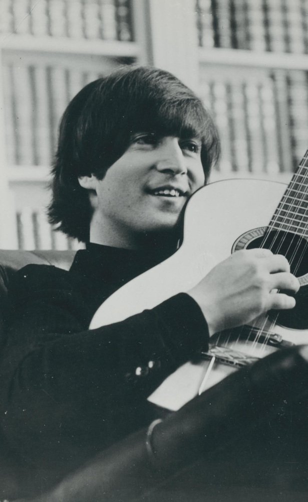 John Lennon with Guitar, 1970s, Black and White Photograph