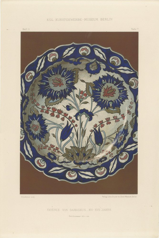 Julius Lessing, Damascus Faience Plate with Carnations and Tulips, 1890, Paper