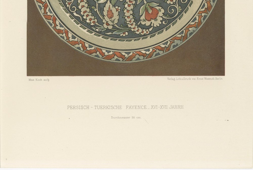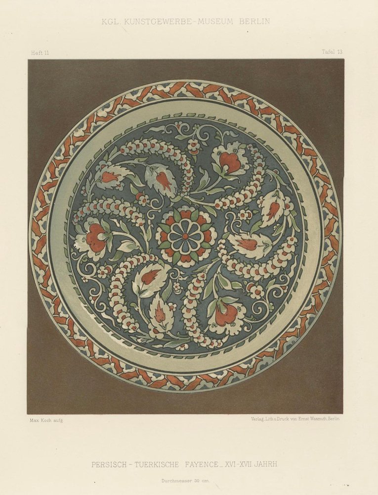 Julius Lessing, Turkish Faience Plate with Spiraling Floral, 1890, Paper