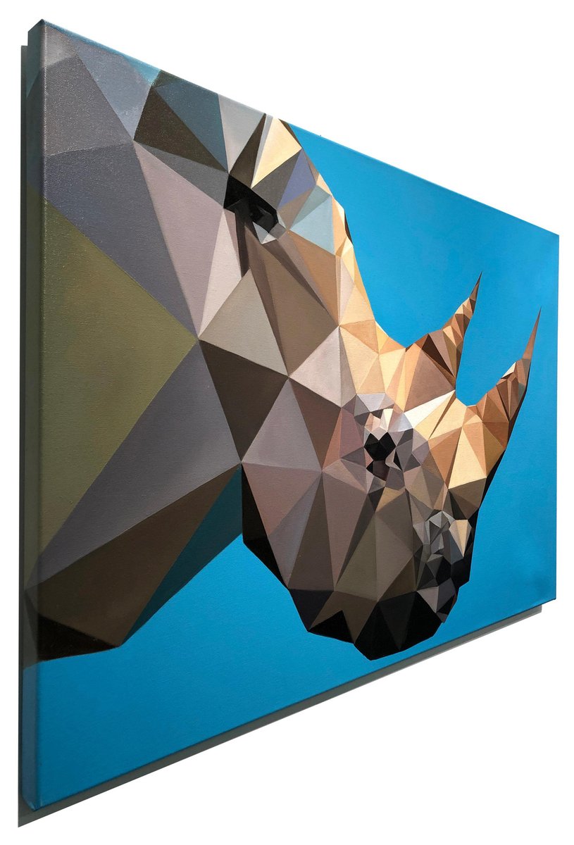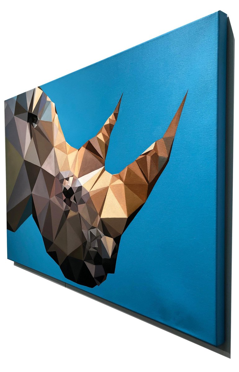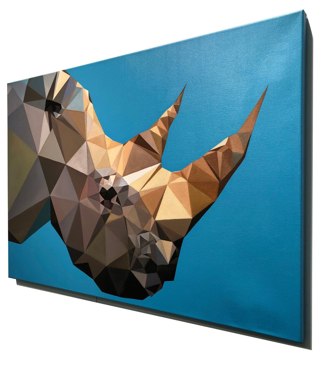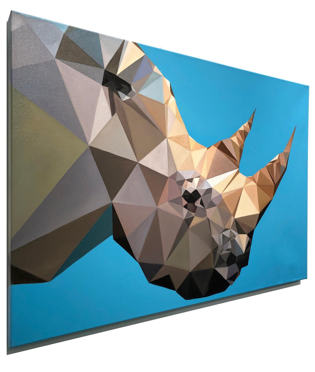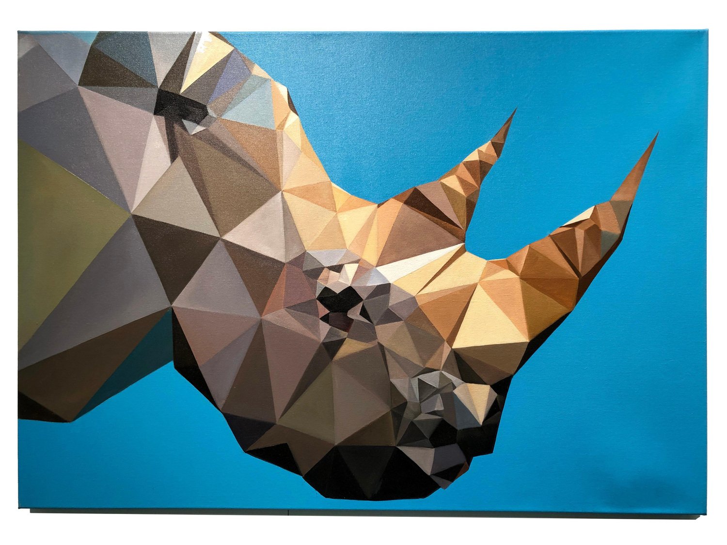 Kartel, Rhino Blues, Oil on Canvas, Pop Art Triangulated, Animal Painting, 2016