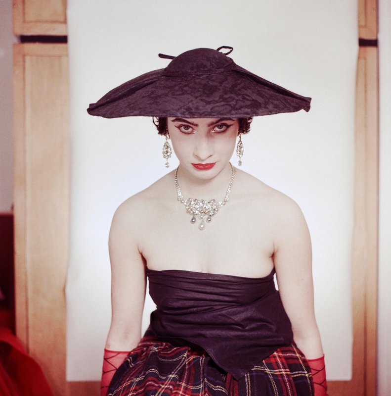 Photograph by Klaus Redenbacher, Munich, 1954 In this striking 1954 portrait, German model Gina poses in an improvised photo studio in Munich, showcasing a piece of postwar fashion elegance. Captured by photographer Klaus Redenbacher, Gina wears an extravagant wide-brimmed ladies' hat, dramatically styled to reflect the bold spirit of 1950s couture in Germany. Her outfit – a strapless black top paired with a checkered skirt – contrasts stylishly with a sparkling necklace and drop earrings, giving the composition a mix of refined glamour and expressive individuality. The image embodies the renewed creative energy of fashion photography in postwar Europe – intimate, artistic, and full of personality. The print is new, a Fine Art Print on Illford quality paper made by Whitewall. It comes to you in a tube. About Klaus Redenbacher "A photographer paints with the camera" (Augsburger Allgemeine, May 7/8, 1970) or "Pioneer and father of the modern color portrait" (Who's Who in Photo, Film & TV, circa 1980) are just a few examples of the press acclaim that describe Klaus Redenbacher’s photographic work and career, which spanned nearly five decades. Born in Nuremberg in 1935, he began an apprenticeship as a photo lab technician with portrait photographer Ludwig Harren in Nuremberg from 1952 to 1956, before enrolling at the Bavarian State Institute of Photography in Munich. His first professional steps followed as a fashion and advertising photographer for the Daco publishing house (Günther Bläse) and the Herrmann Bruder advertising agency in Stuttgart. In 1960, he passed his master craftsman's examination in photography, with a focus on portrait, fashion, industry, and advertising. He then worked as a freelance photojournalist. A photo report on Istanbul was published in Madame magazine and awarded first prize by the travel magazine Merian (1960/61). As part of the University of the Seven Seas program, Redenbacher served as a ship photographer aboard the intercontinental cruise ship MS Seven Seas in 1963/1964. He also produced advertising and industrial photography for companies such as Bayer AG, Electrostar, the Waldhof-Aschaffenburg paper mills, and Kodak. Starting in 1969, Redenbacher increasingly devoted himself to color portrait photography. In the same year, he took over the management of the ERTL photo studio in Augsburg. Two years later, in 1971, he opened his own studio at Martin-Luther-Str. 24 in Munich-Giesing, which remained a prominent address for portrait photography in Munich until 2004. Redenbacher achieved his greatest success in portrait photography, benefiting from his background in fashion and advertising as well as from the fact that German print media began introducing color photography in the second half of the 1950s, while traditional photographic portraiture was still primarily done in black and white. Ultimately, Redenbacher saw himself as a portrait photographer with an artistic, painterly ambition, whose work was largely informed by a journalistic approach in color. Over the course of his long career, he portrayed prominent figures such as writer and painter Jean Cocteau, composer Carl Orff, zoologist Konrad Lorenz, Nobel Prize-winning physicist Werner Heisenberg, and sculptor Helmut Lederer. For his achievements in portrait photography, he was awarded the Euro Medal for Art and Culture in Gold by the Baden-Baden Cultural Circle (1980) and the Gold Medal of the Accademia Italia delle Arti e del Lavoro, based in Salsomaggiore Terme, Italy (1982).