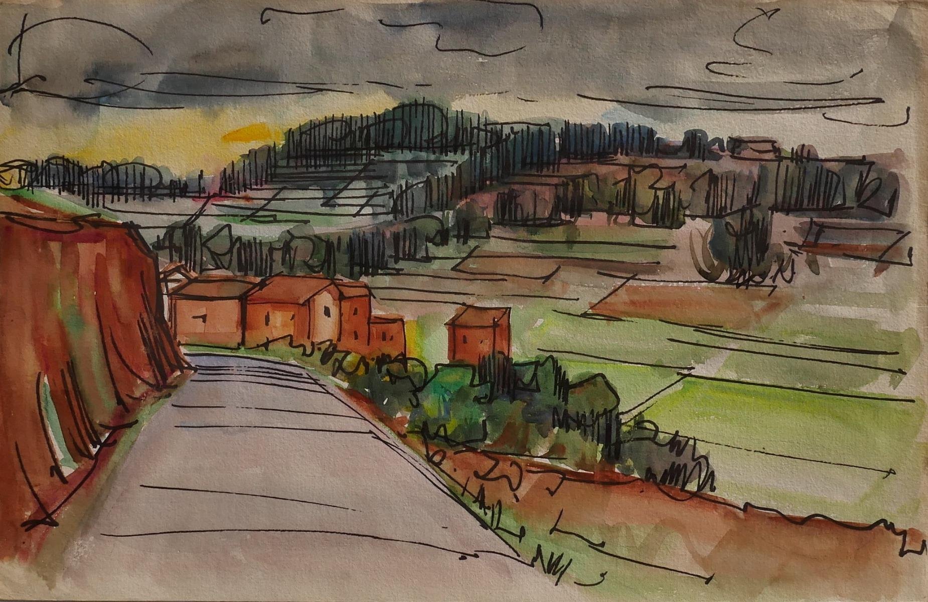 Landscape - Original Ink and Watercolor Drawing by E. Pavarino - 1969 1969