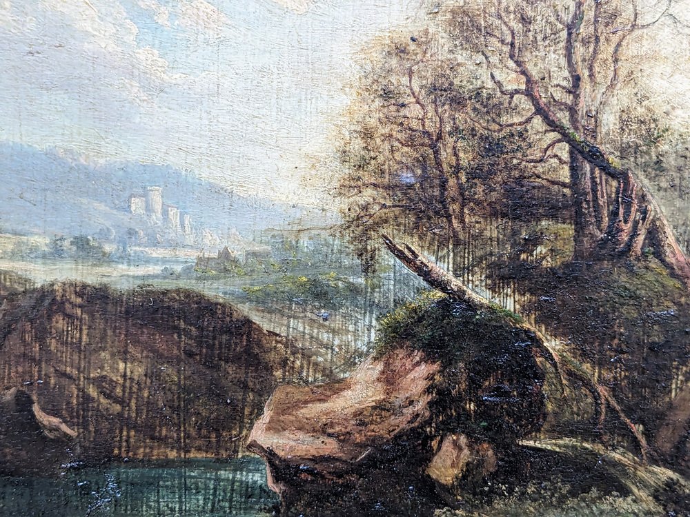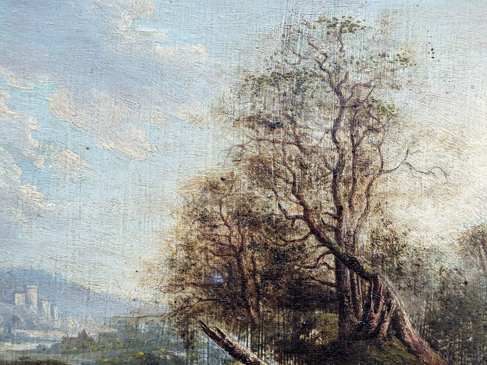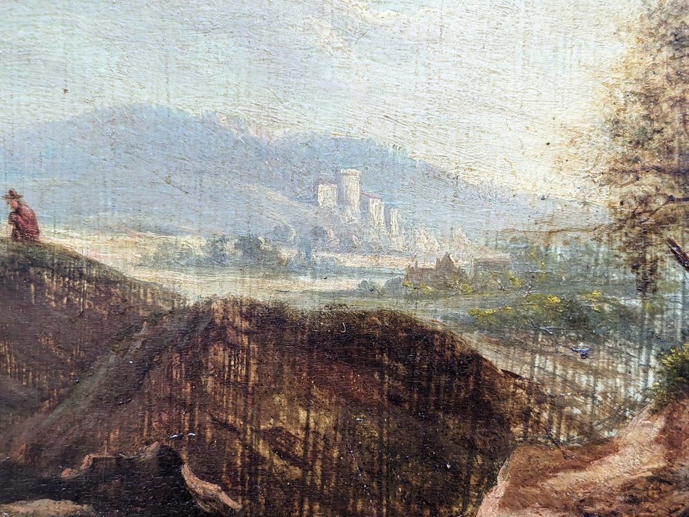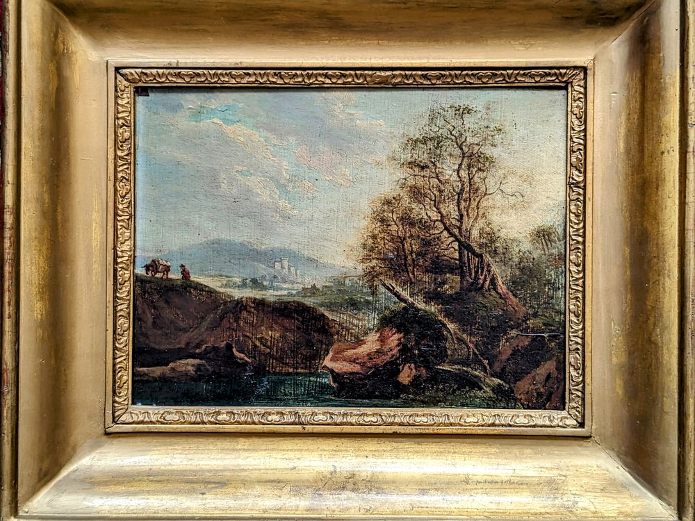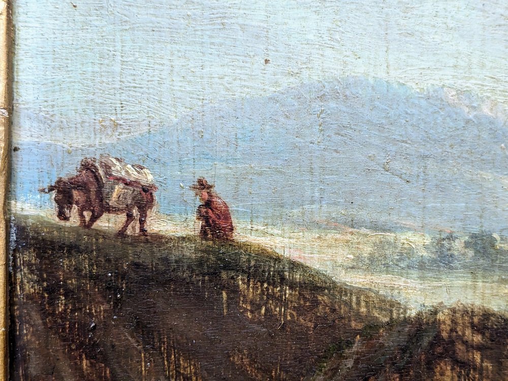 Landscape with Man and Donkey, 1800s, Oil on Wood, Framed