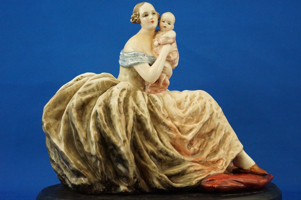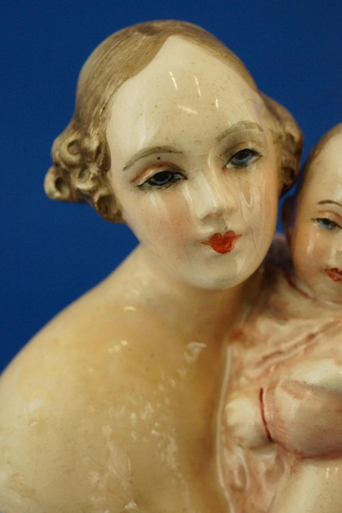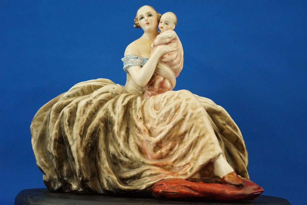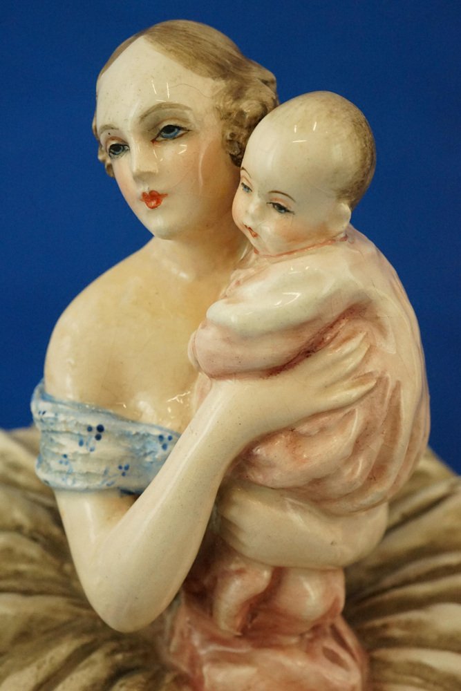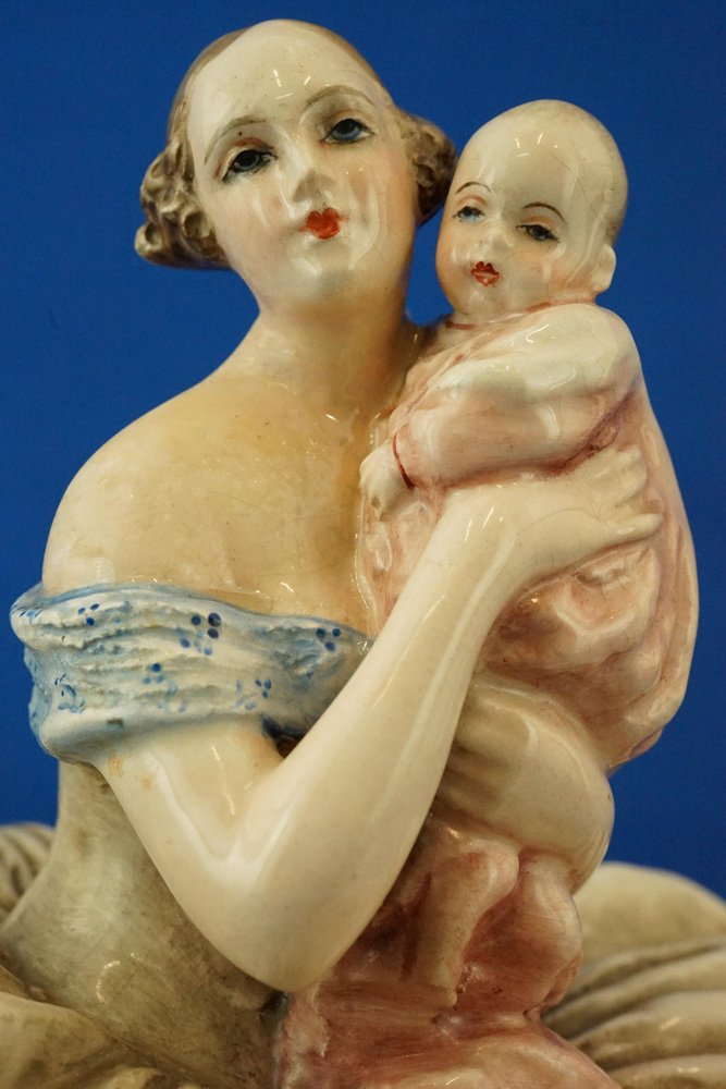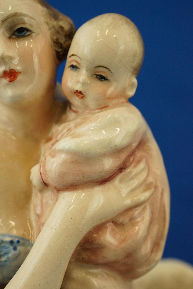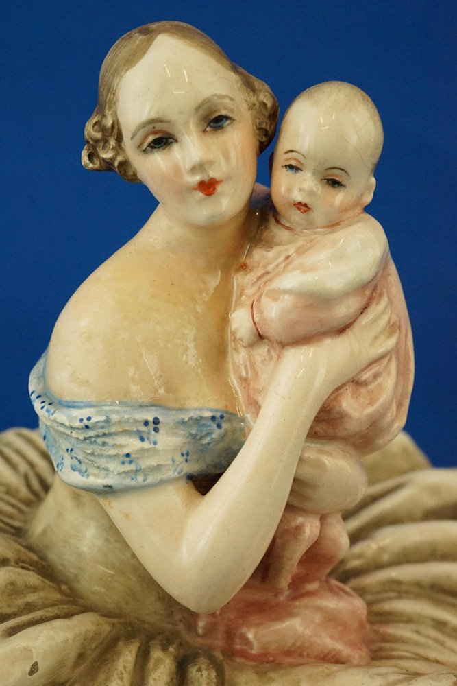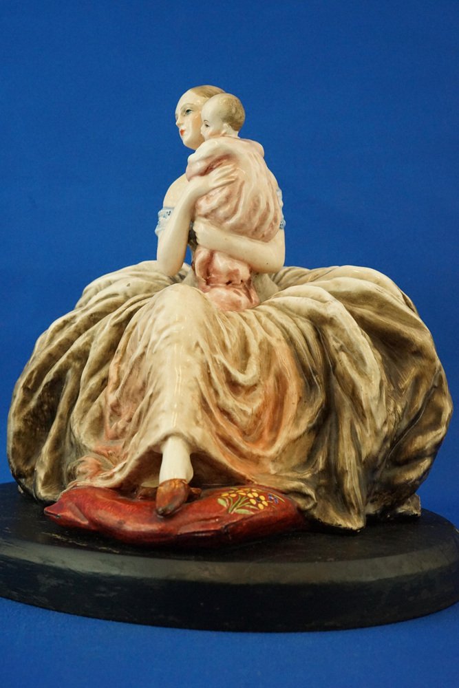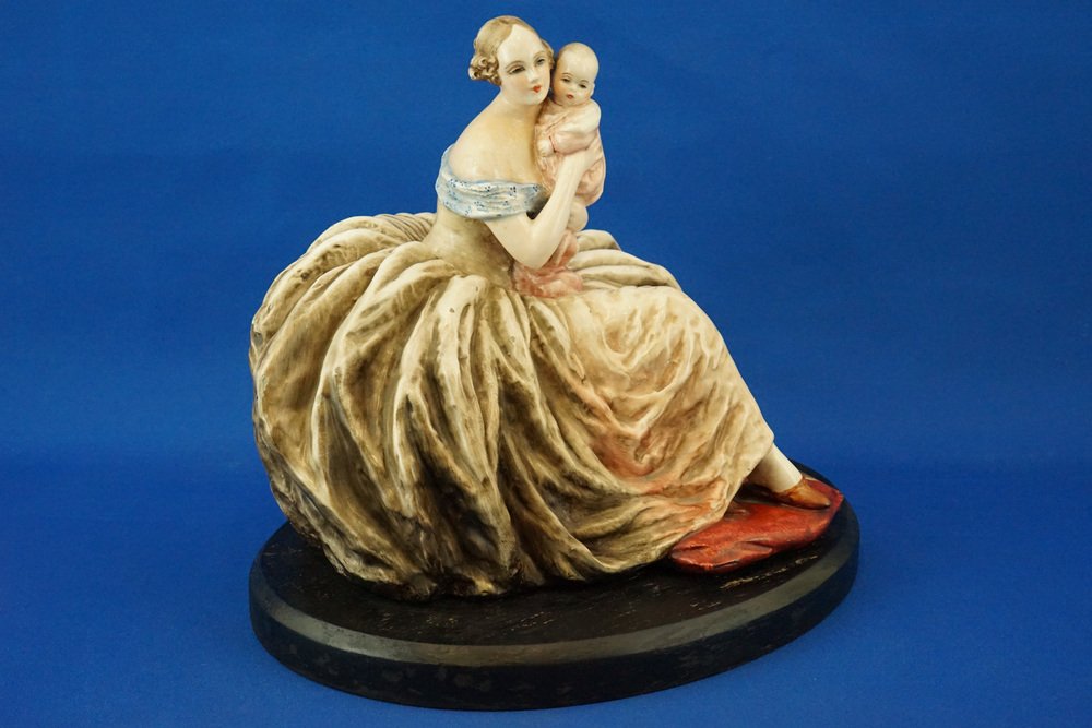 Large 20th Century Ceramic Sculpture of Lady with Child by Guido Cacciapuoti, Italy