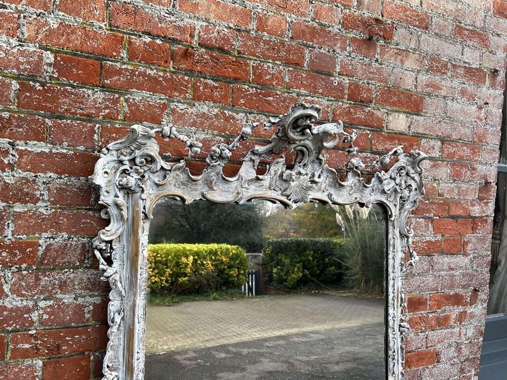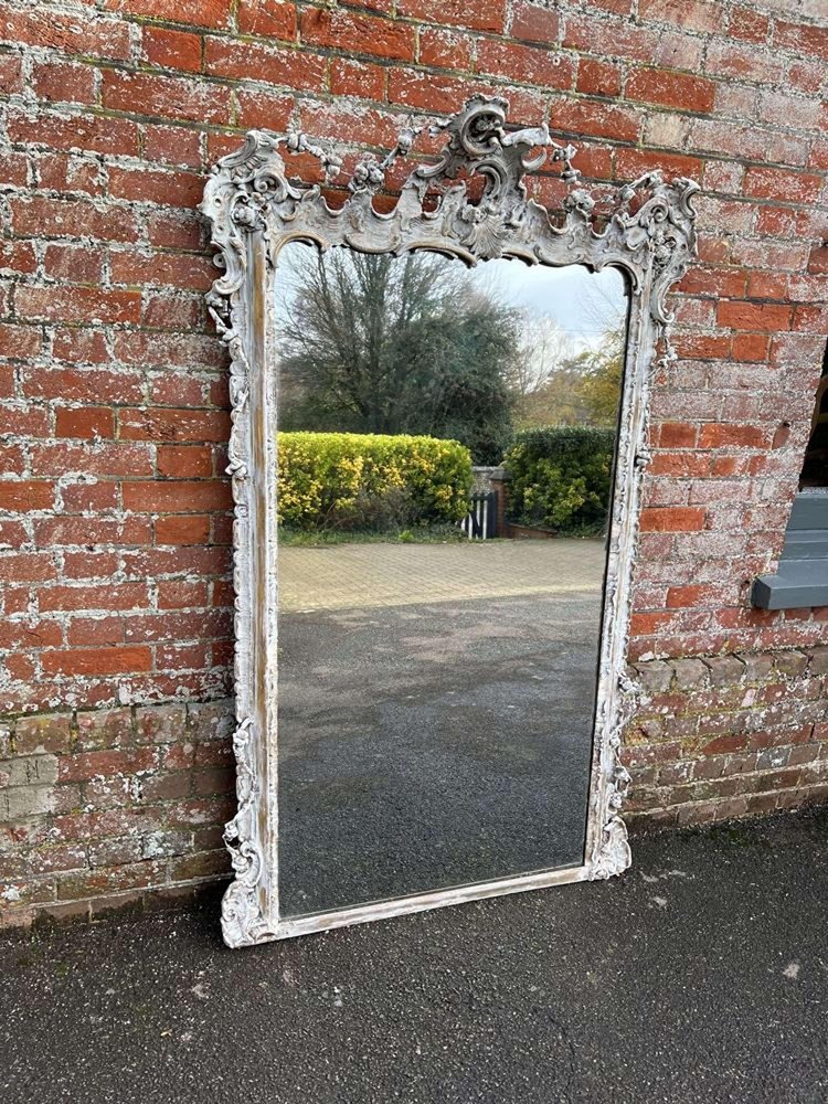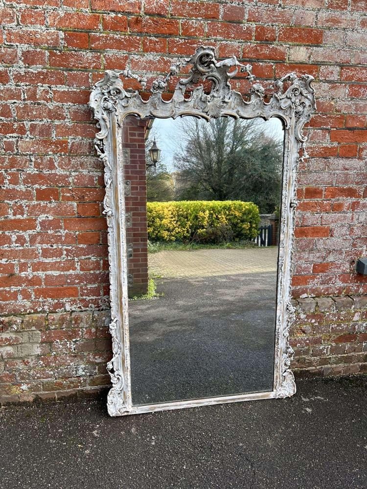 Large Antique 19th Century French Distressed Painted Mirror