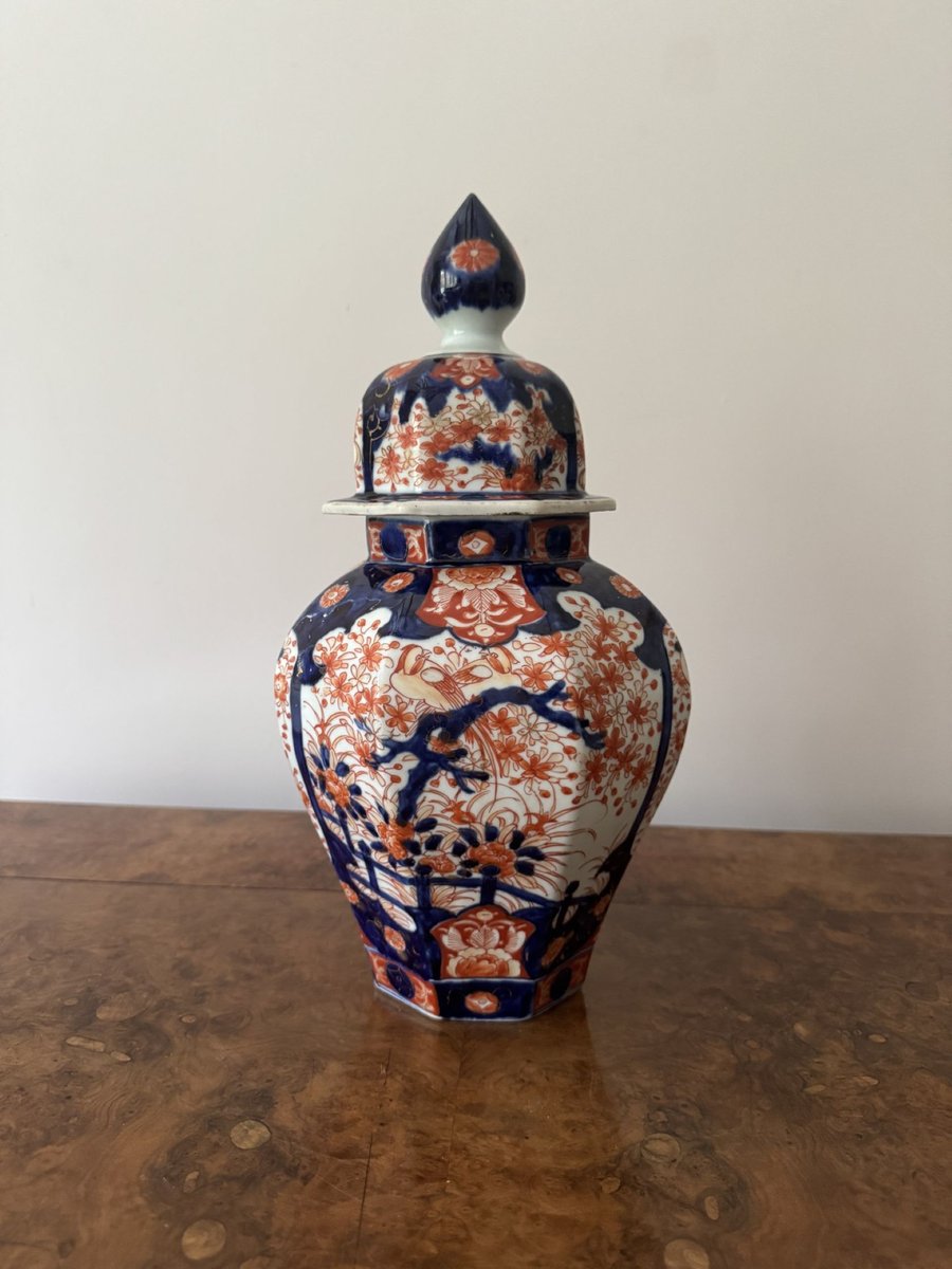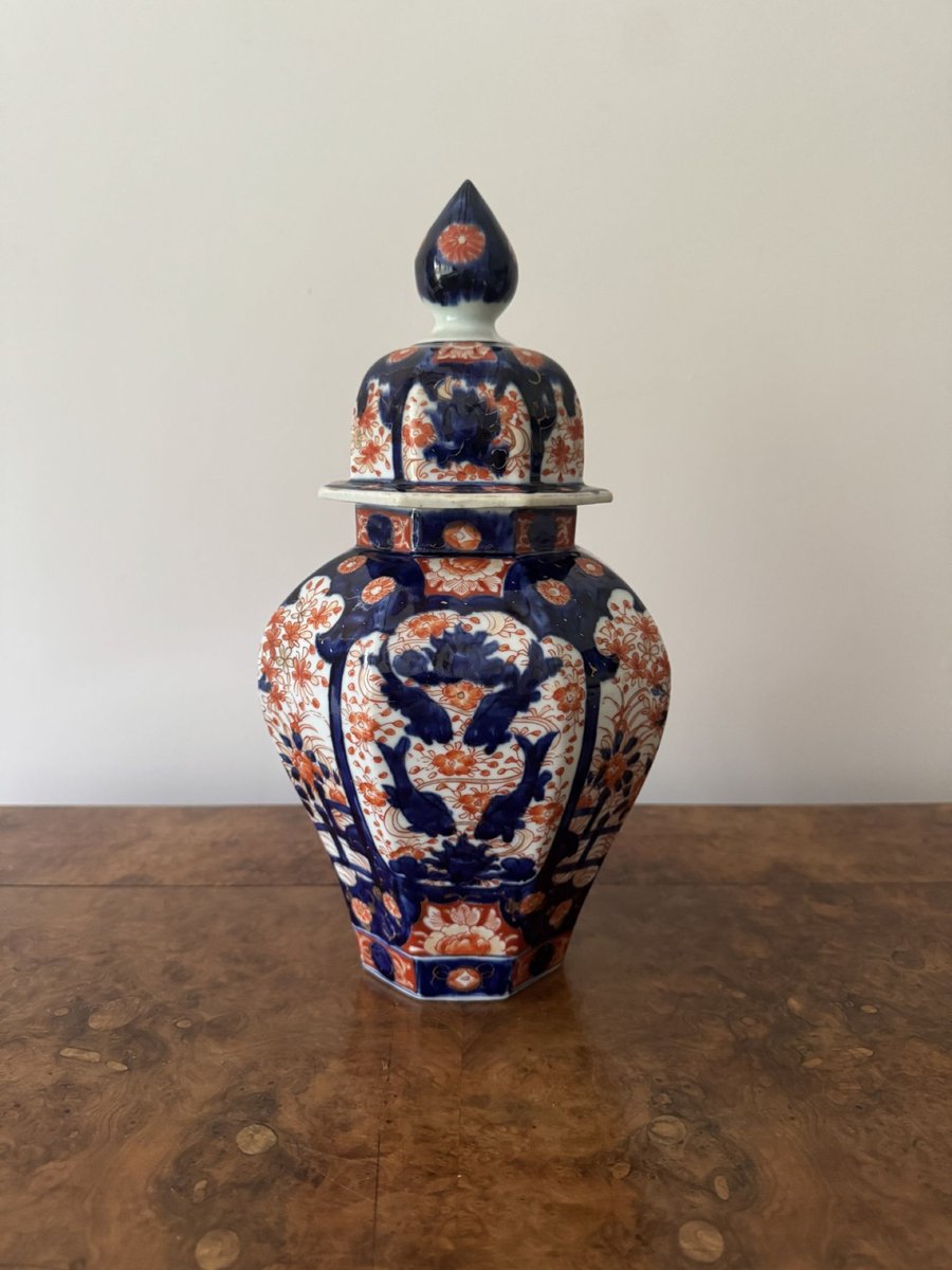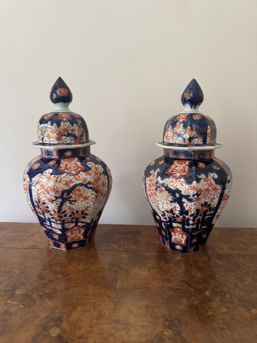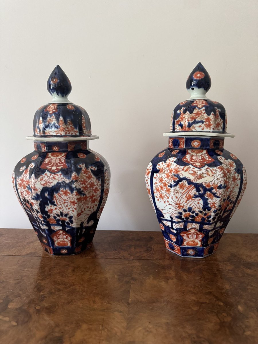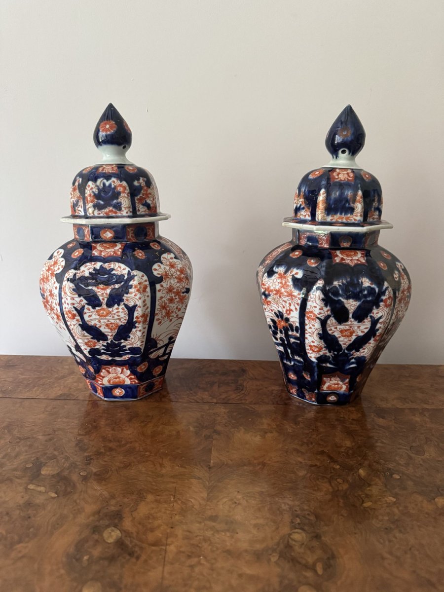 Large Antique Japanese Imari Lidded Vases, 1900, Set of 2