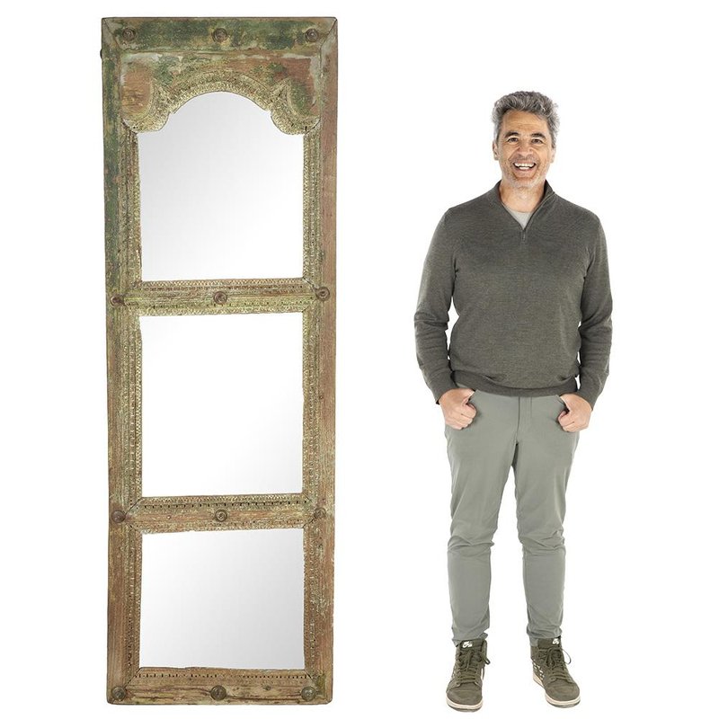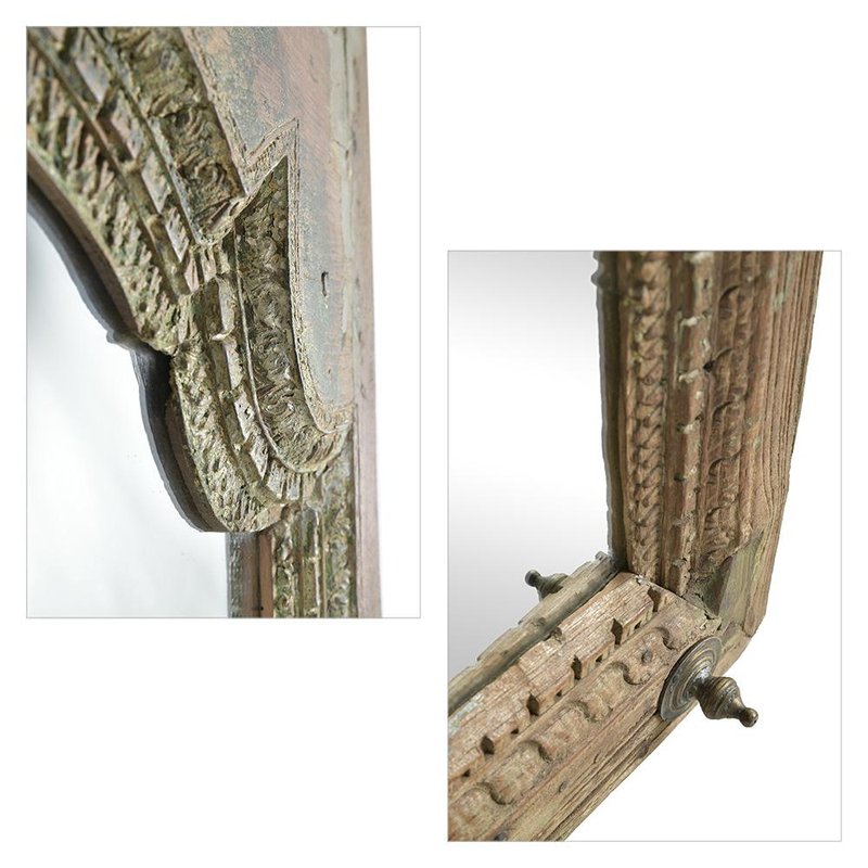 Large Antique Mirror in Patinated Solid Wood