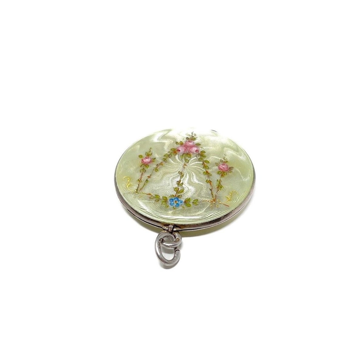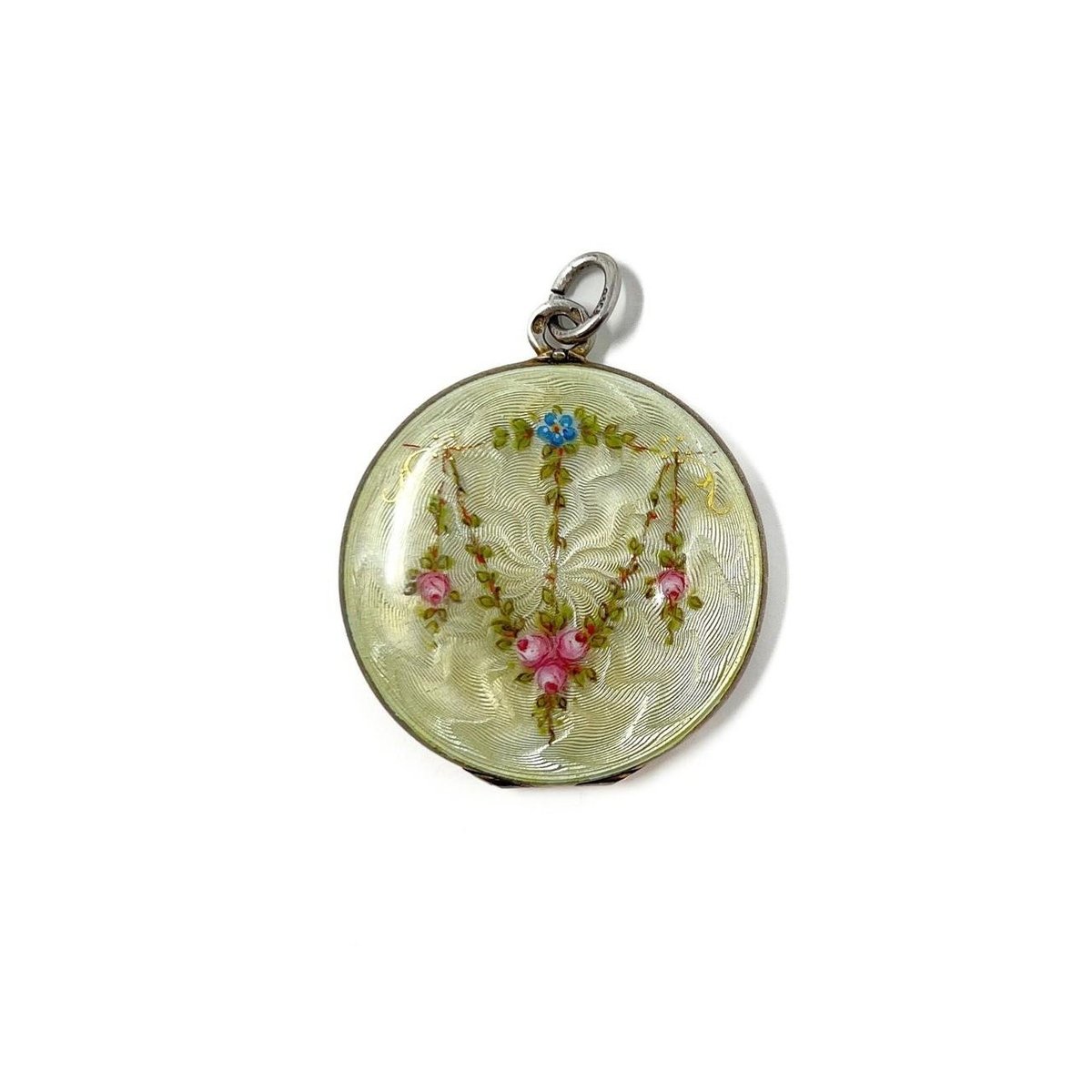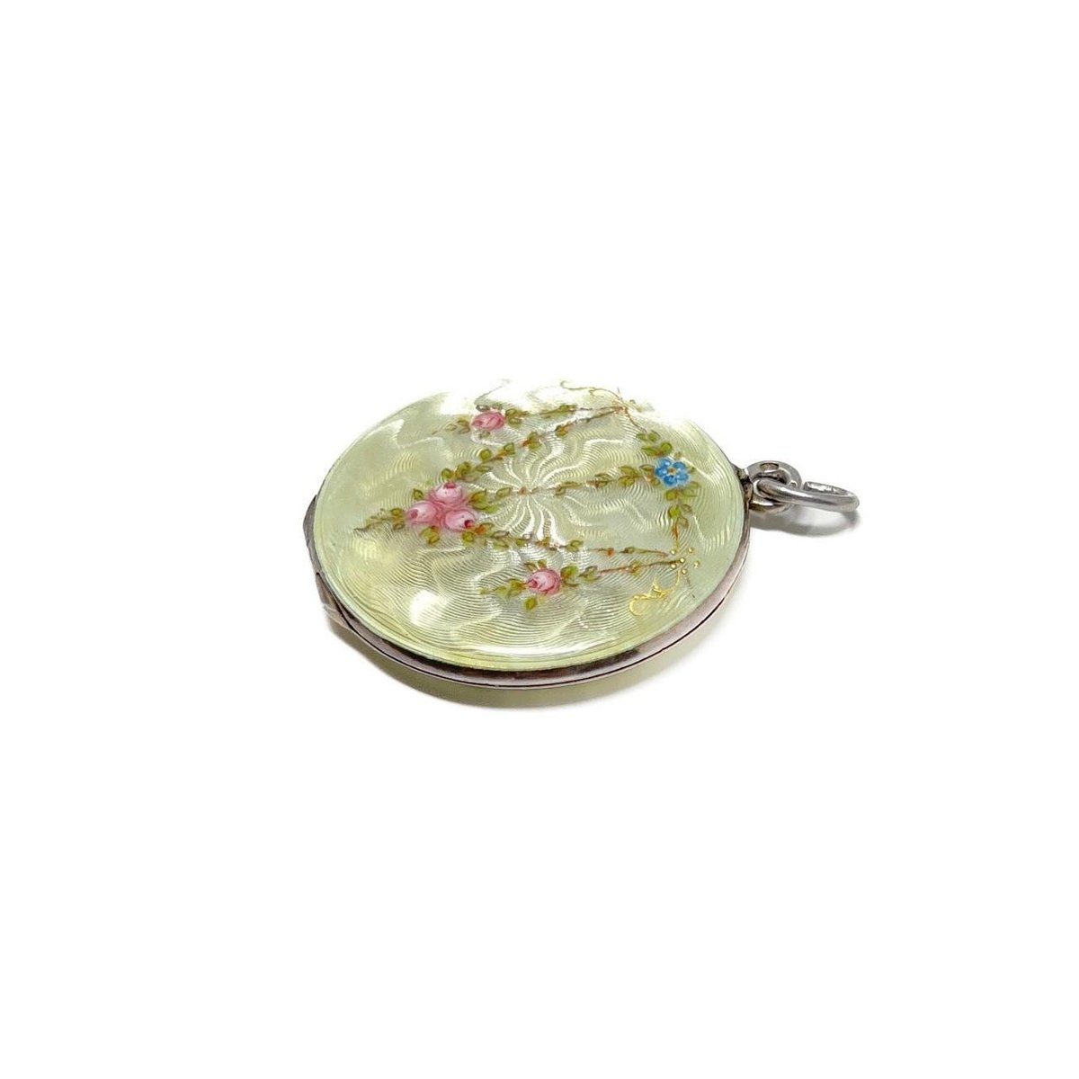 Large Antique Silver and Guilloché Enamel Floral Locket from Martin Mayer, 1900s