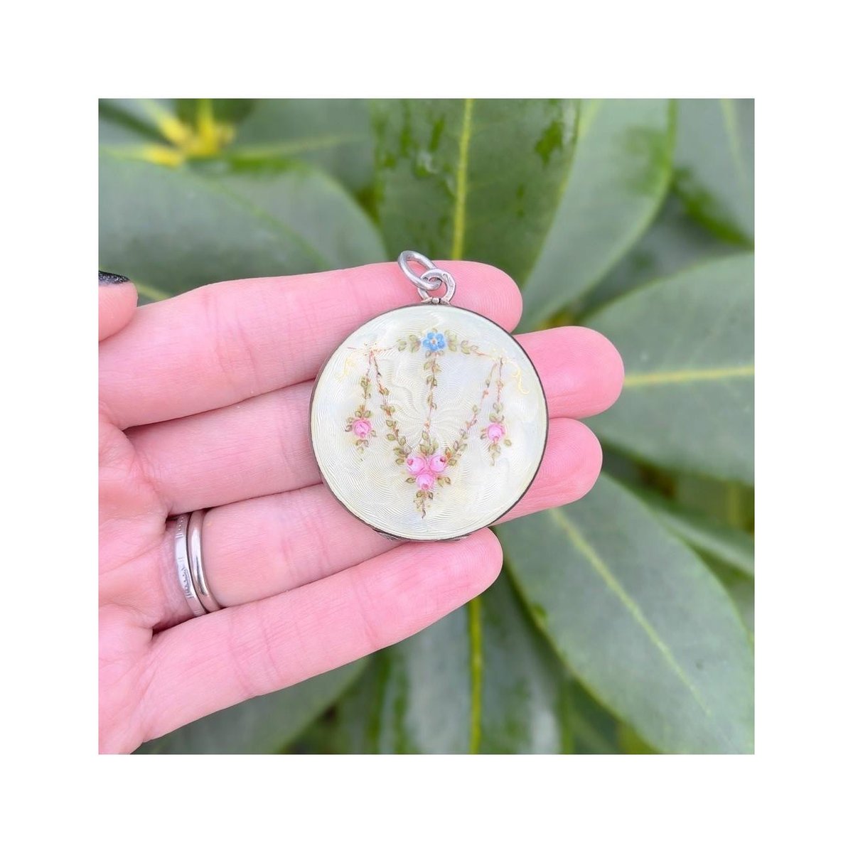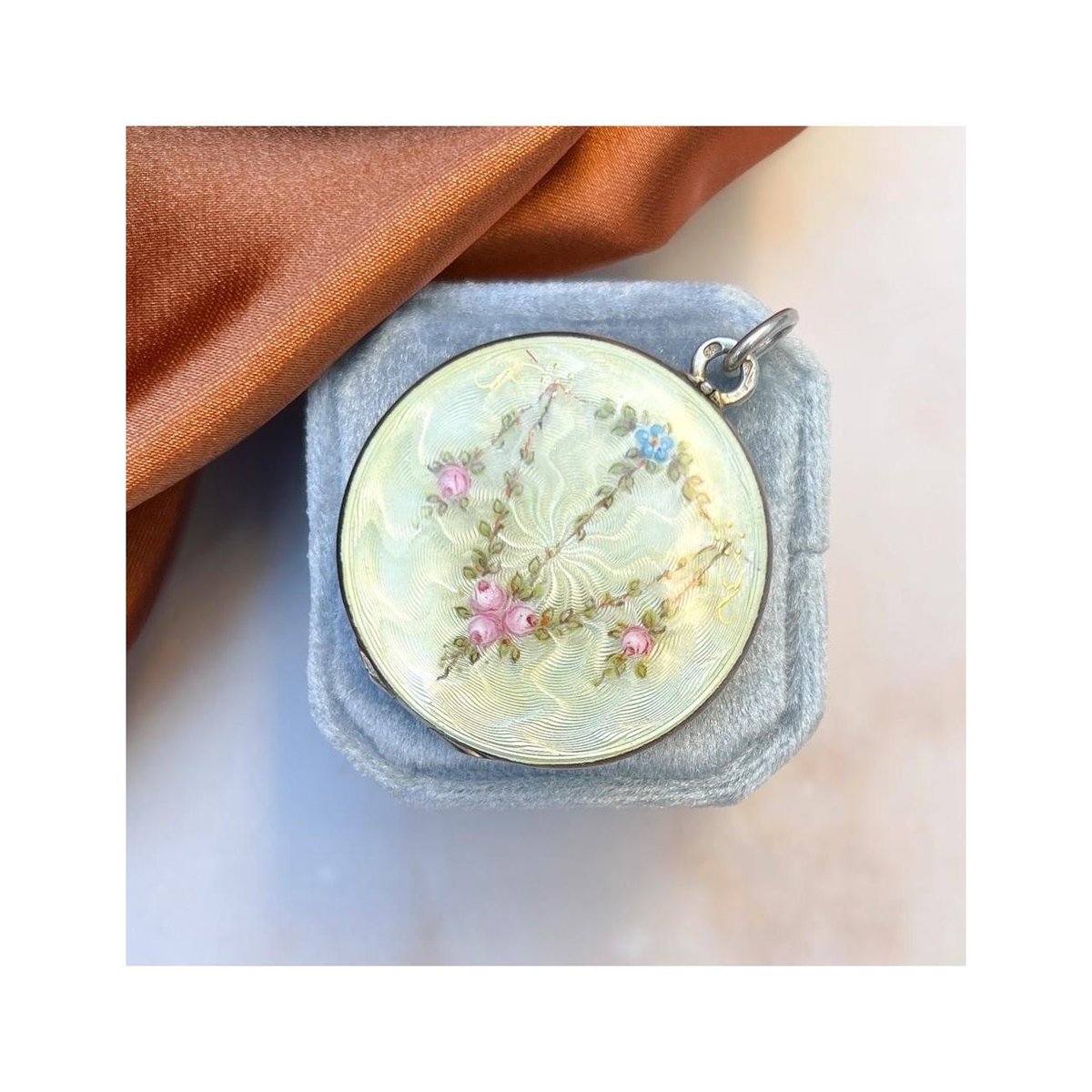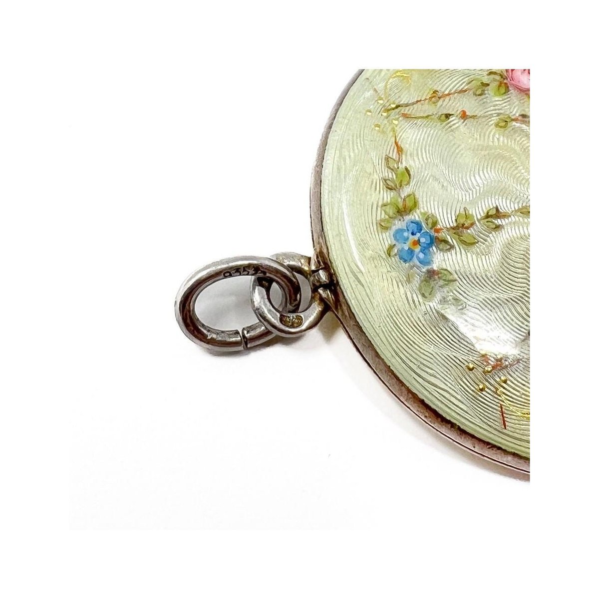 Large Antique Silver and Guilloché Enamel Floral Locket from Martin Mayer, 1900s