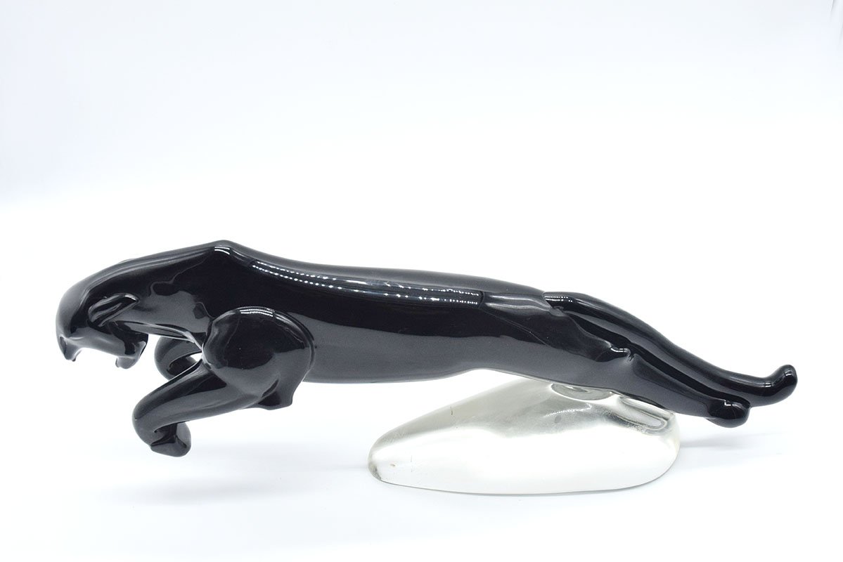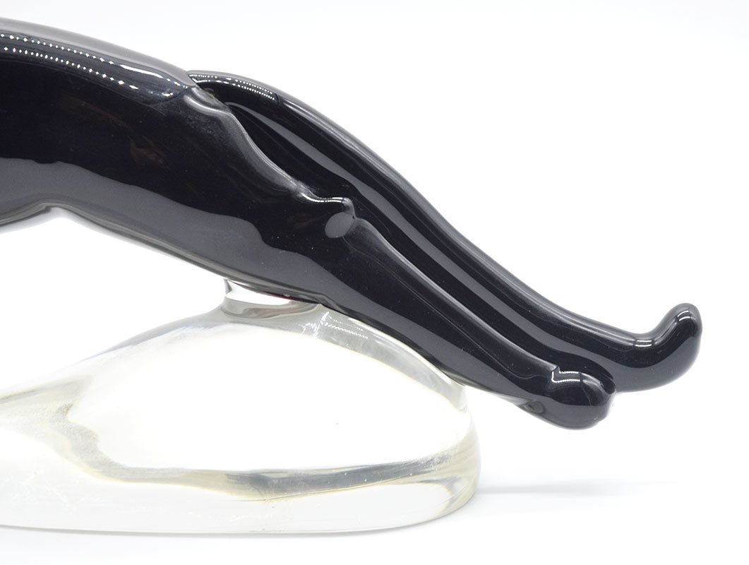 Large Art Deco Sculpture of a Panther in Murano Glass, 1940s