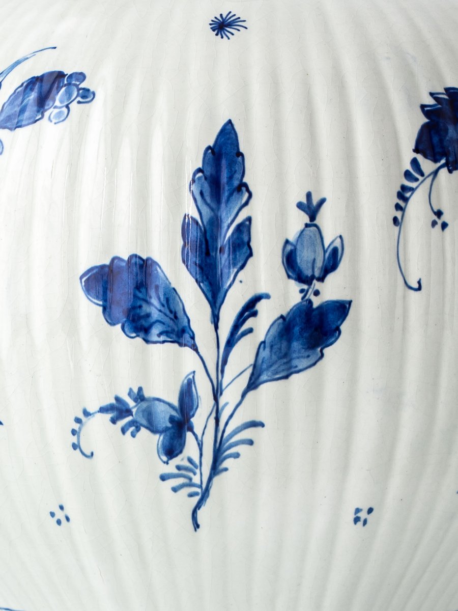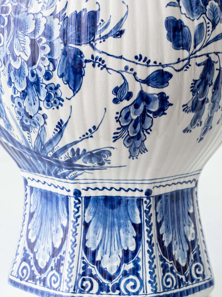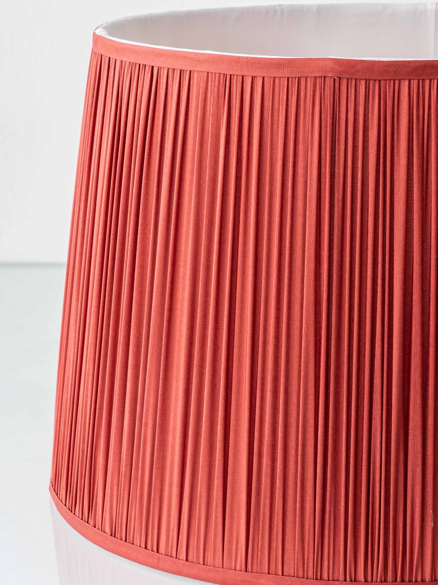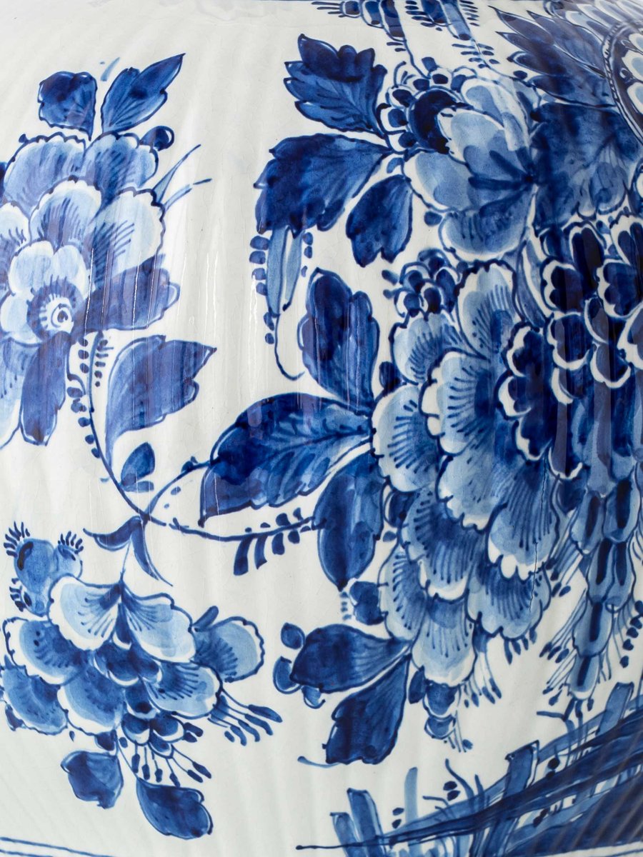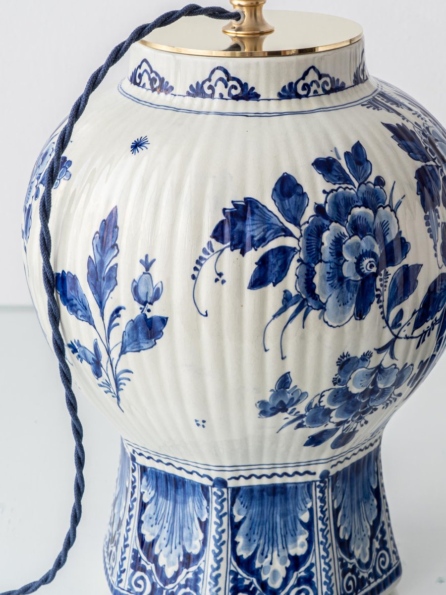 Large Blue and White Hand-Painted Table Lamp with New Terracotta Silk Lampshade from Royal Delft, 1948