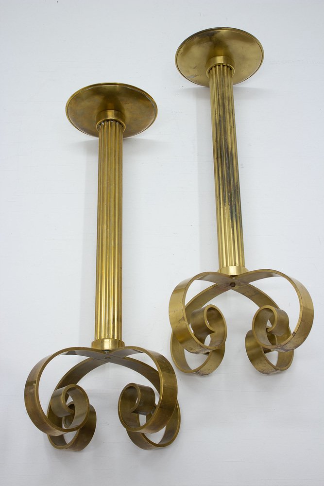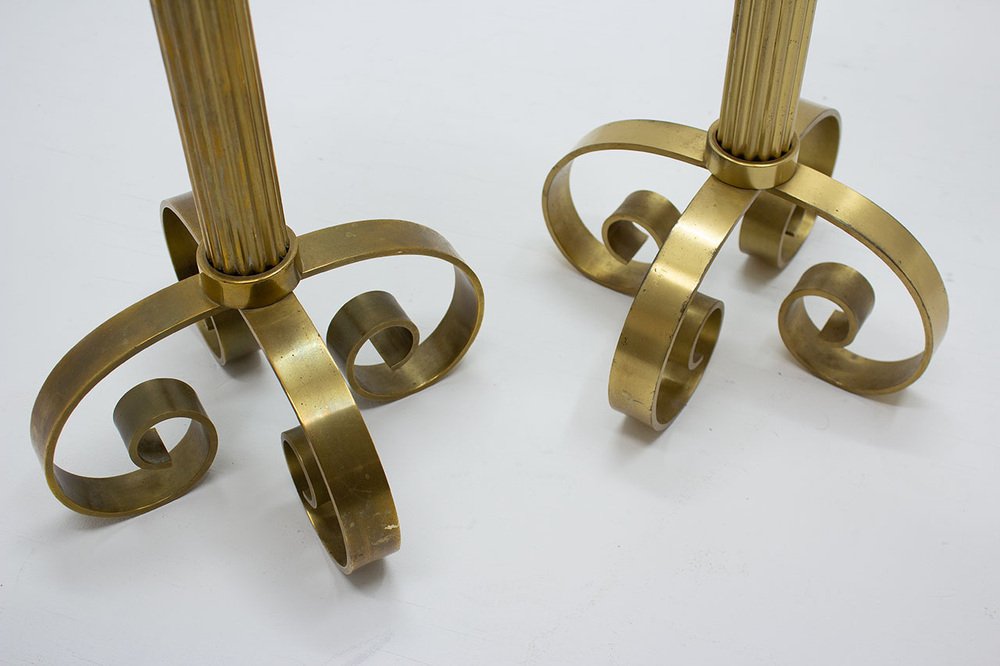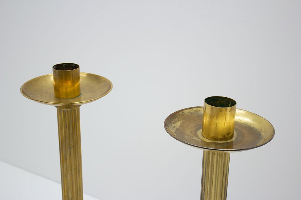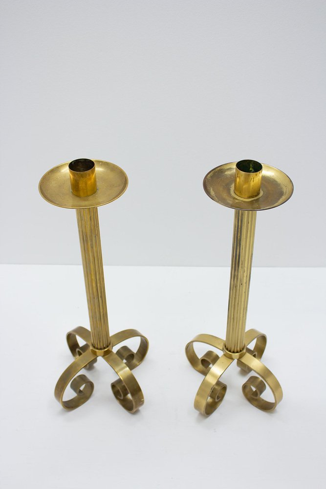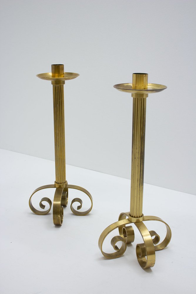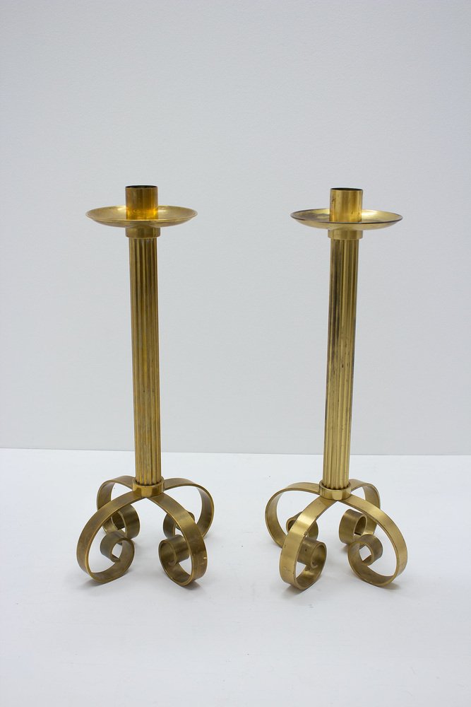 Large Brass Floor Candleholders by Ivar Ålenius Björk for Ystad-Metall, 1950s, Set of 2