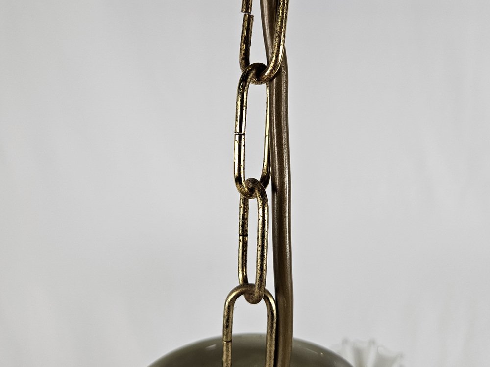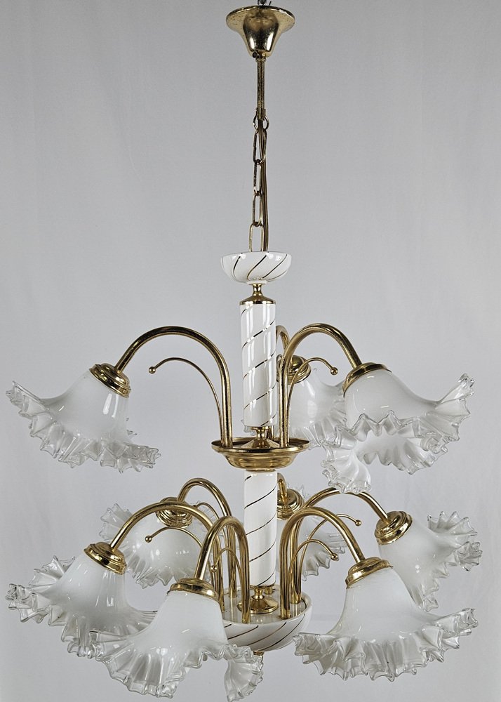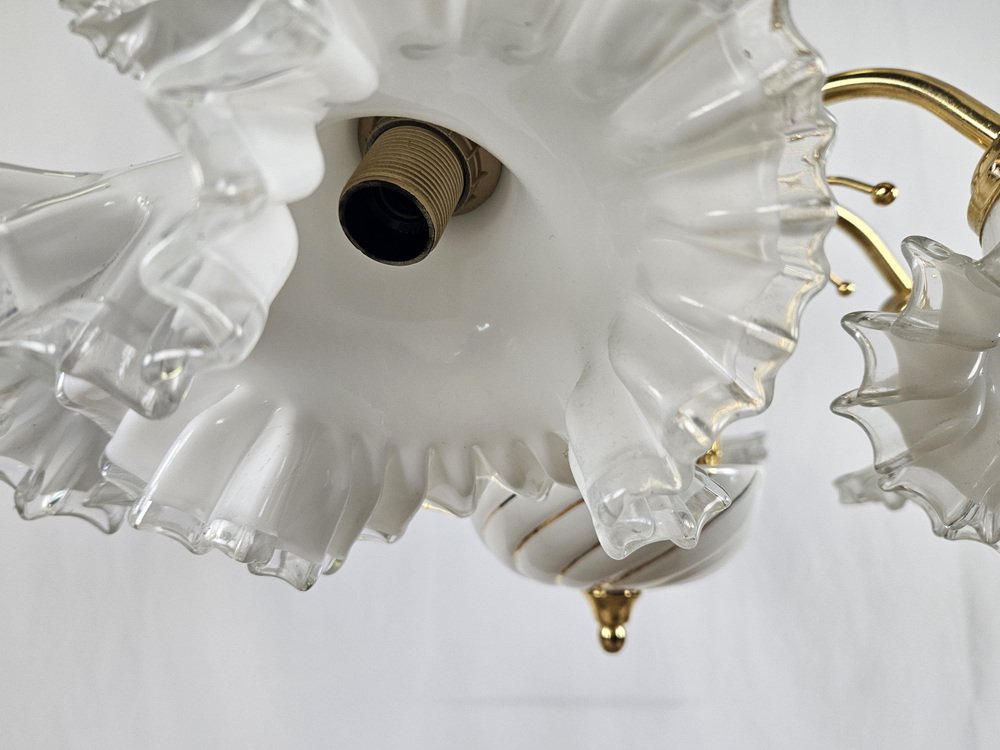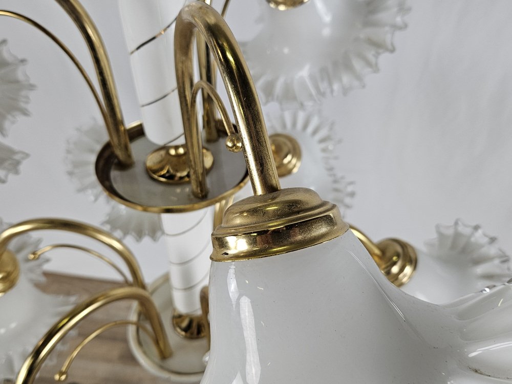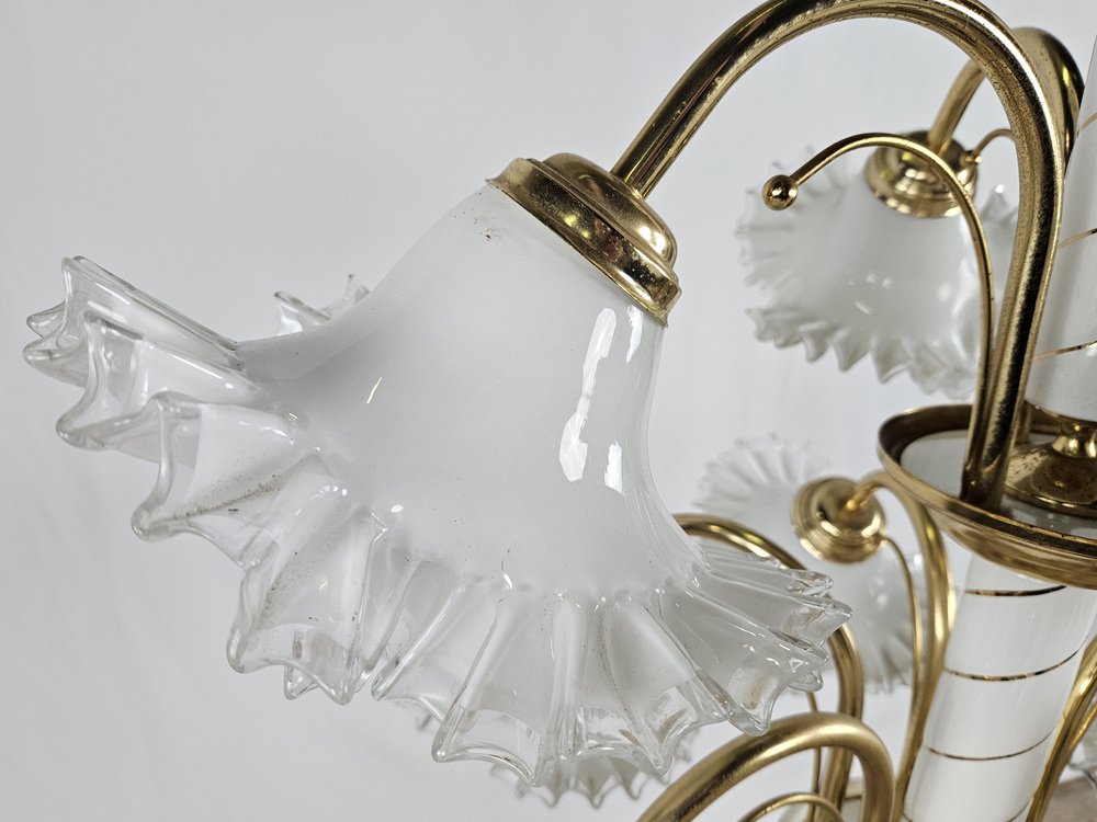 Large Ceramic Chandelier in Brass and Murano Glass, Italy, 1970s