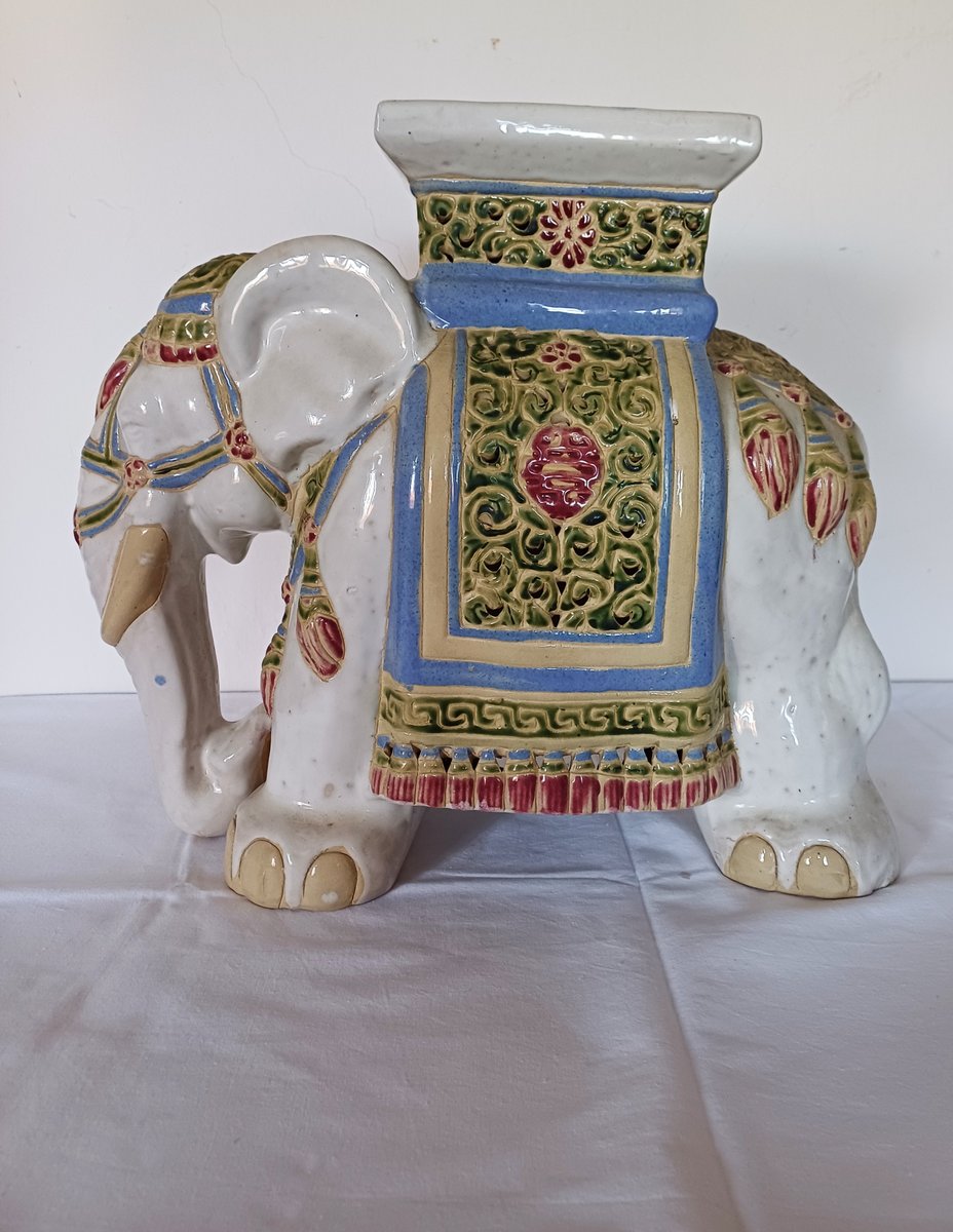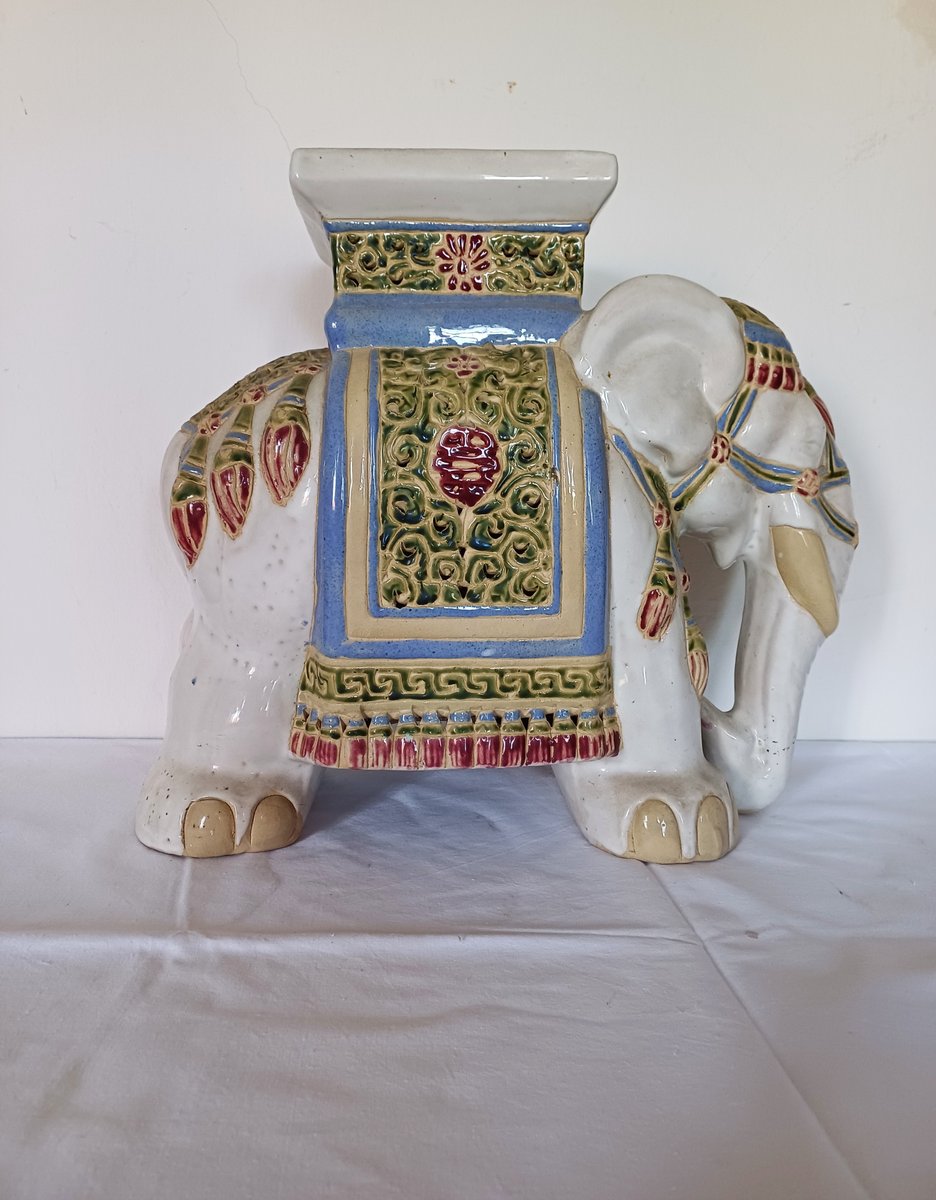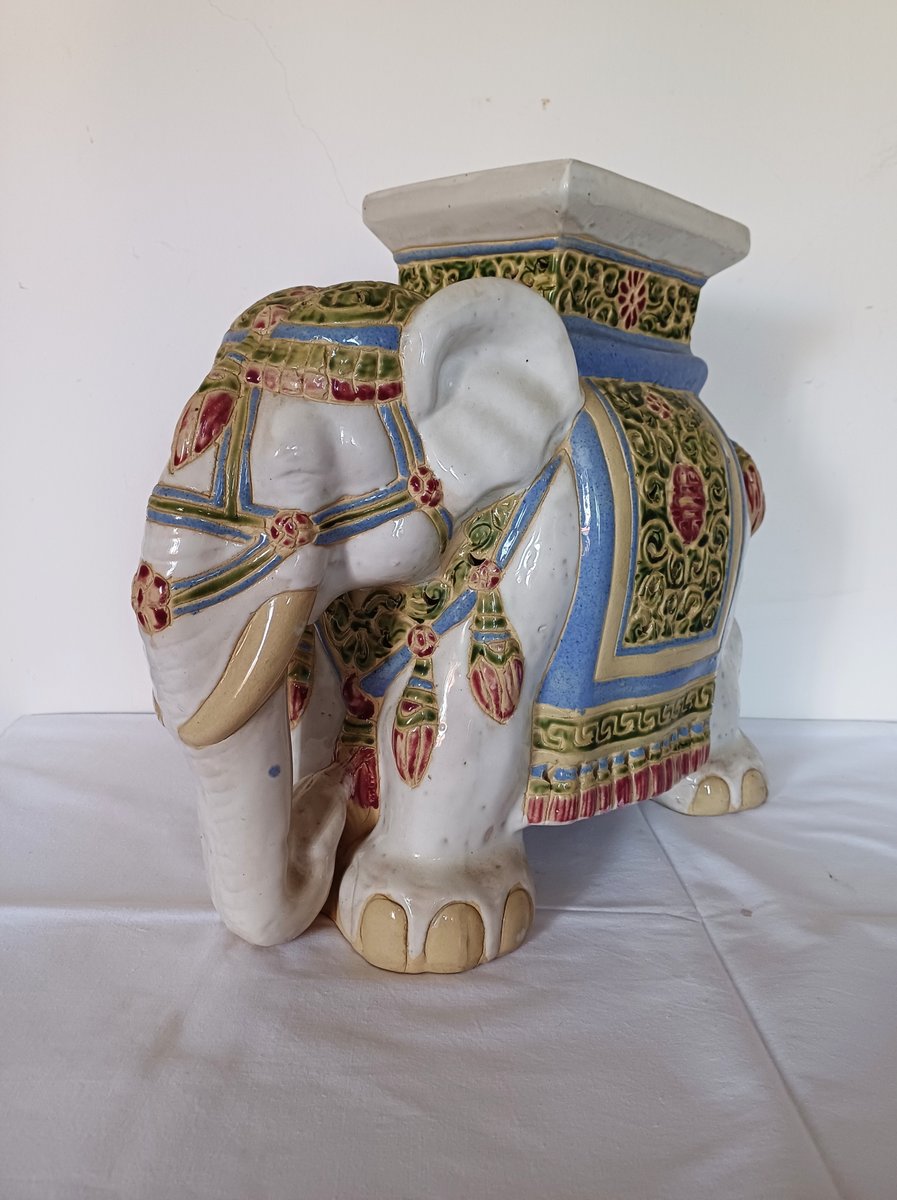 Large Ceramic Elephant Garden Stool or Plant Stand, 1960s