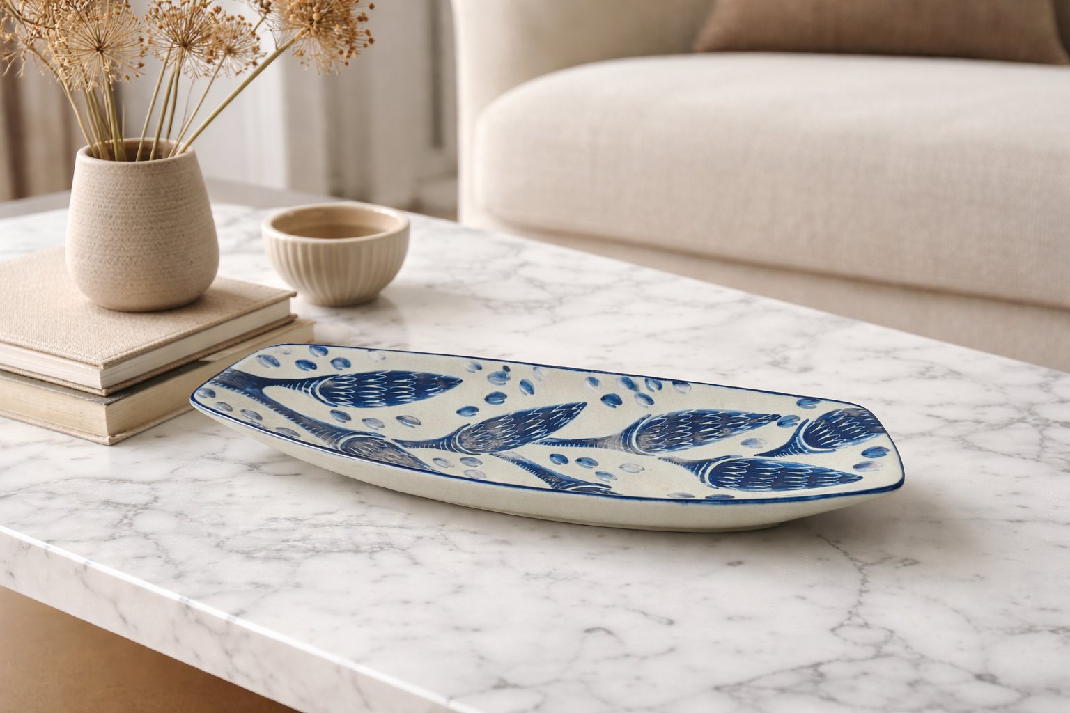 Large Decorative Stoneware Platter by Einar Johansen for Søholm, Denmark, 1960s