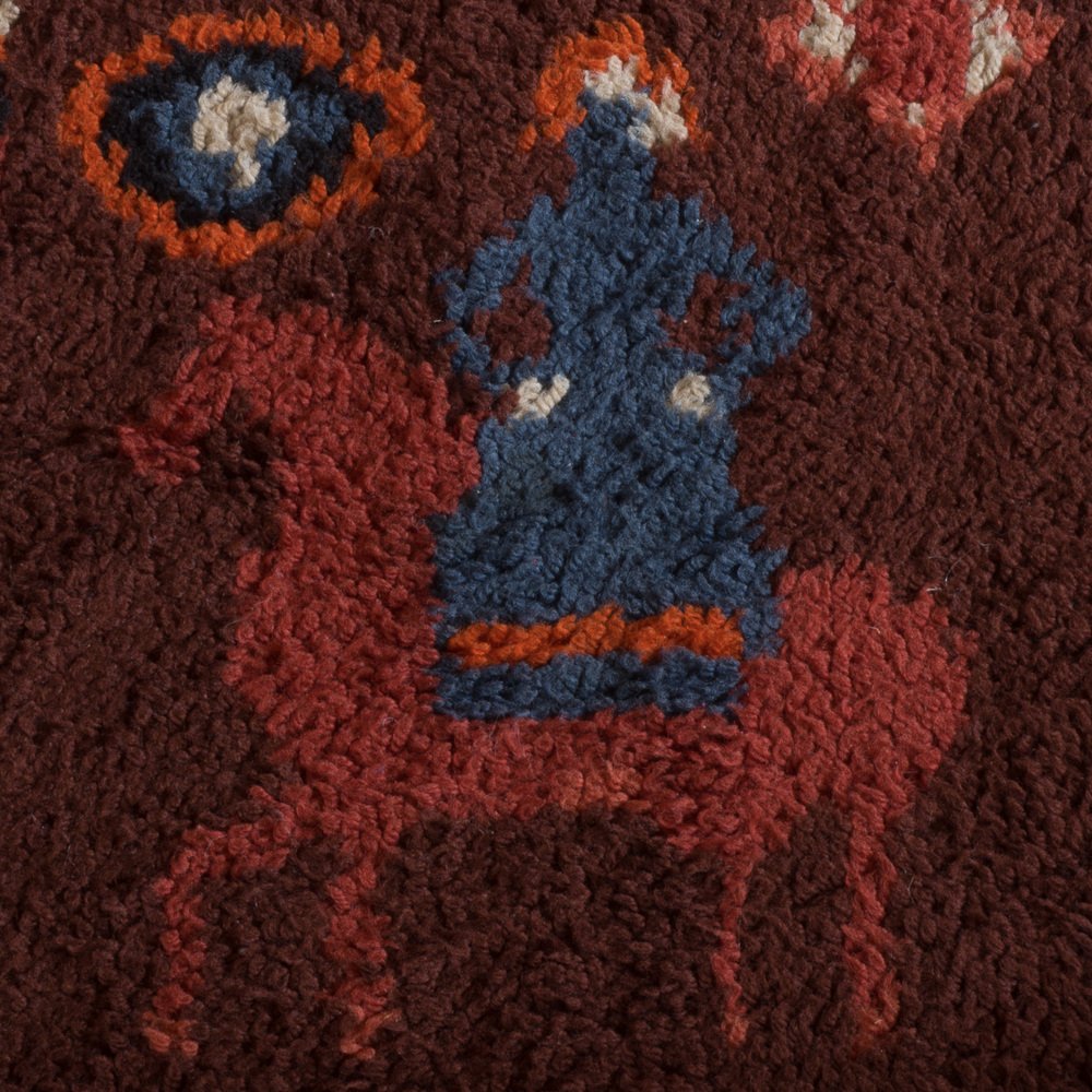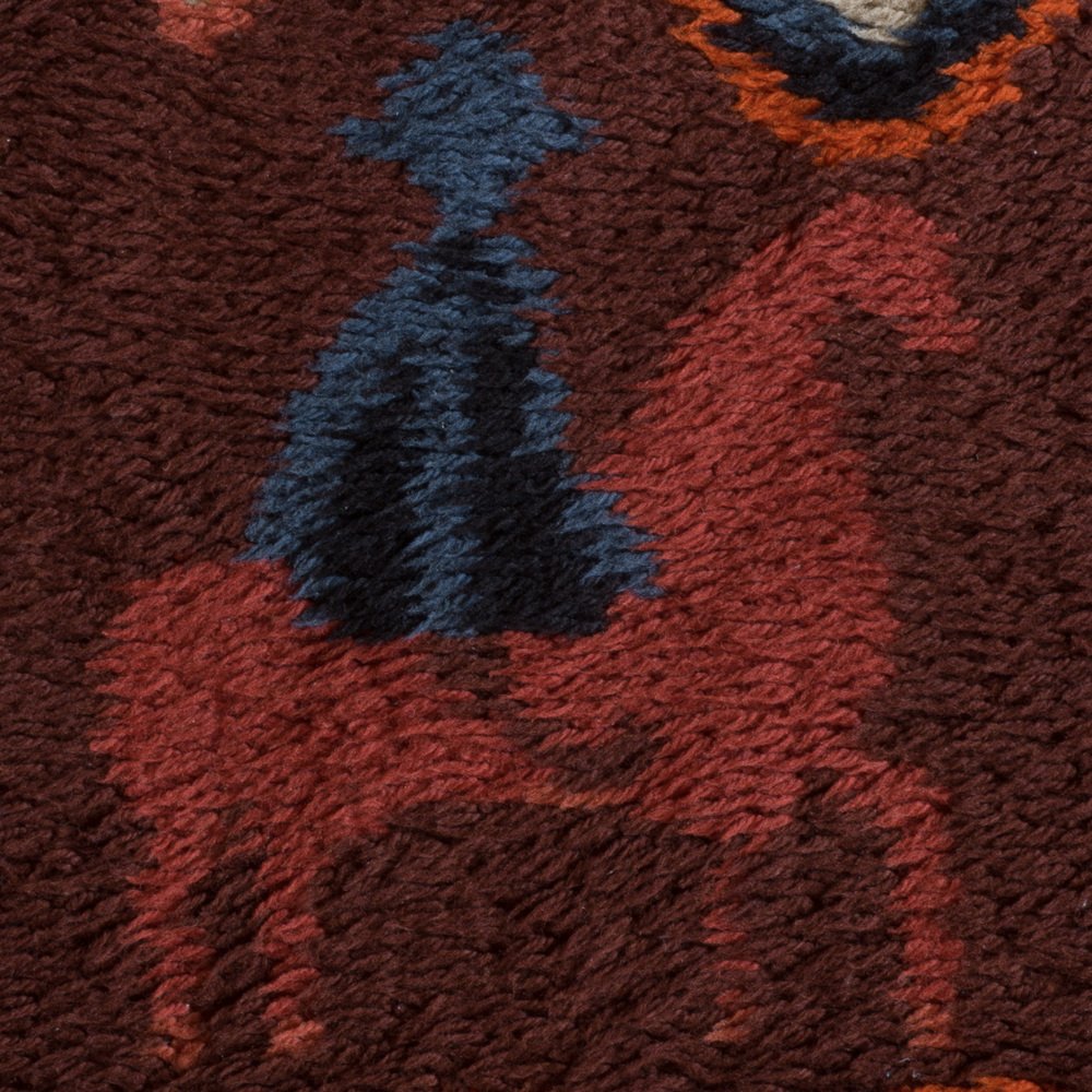 Large Finnish Hand Knotted Folk Art Ryiju Rug