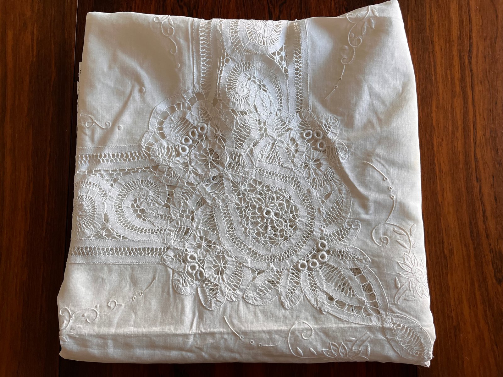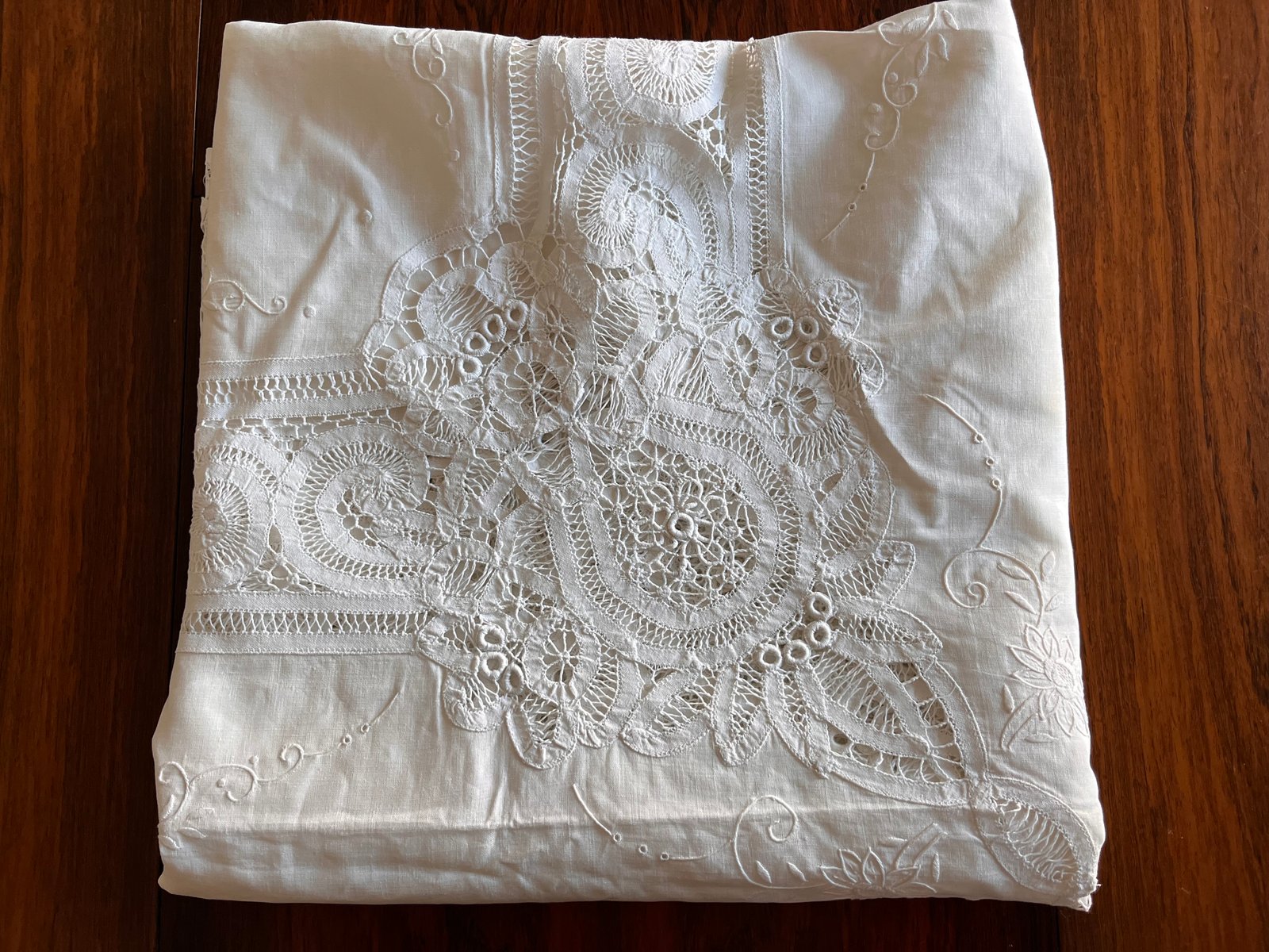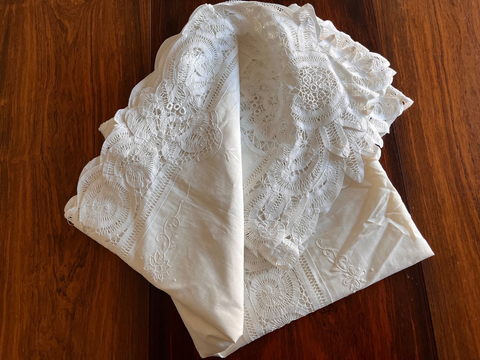 Large Hand-Embroidered Linen Tablecloth, 1900s