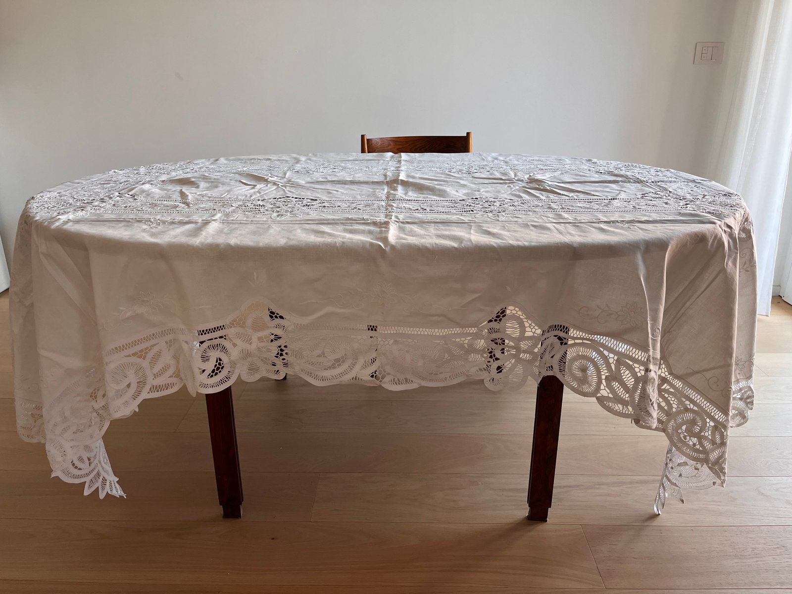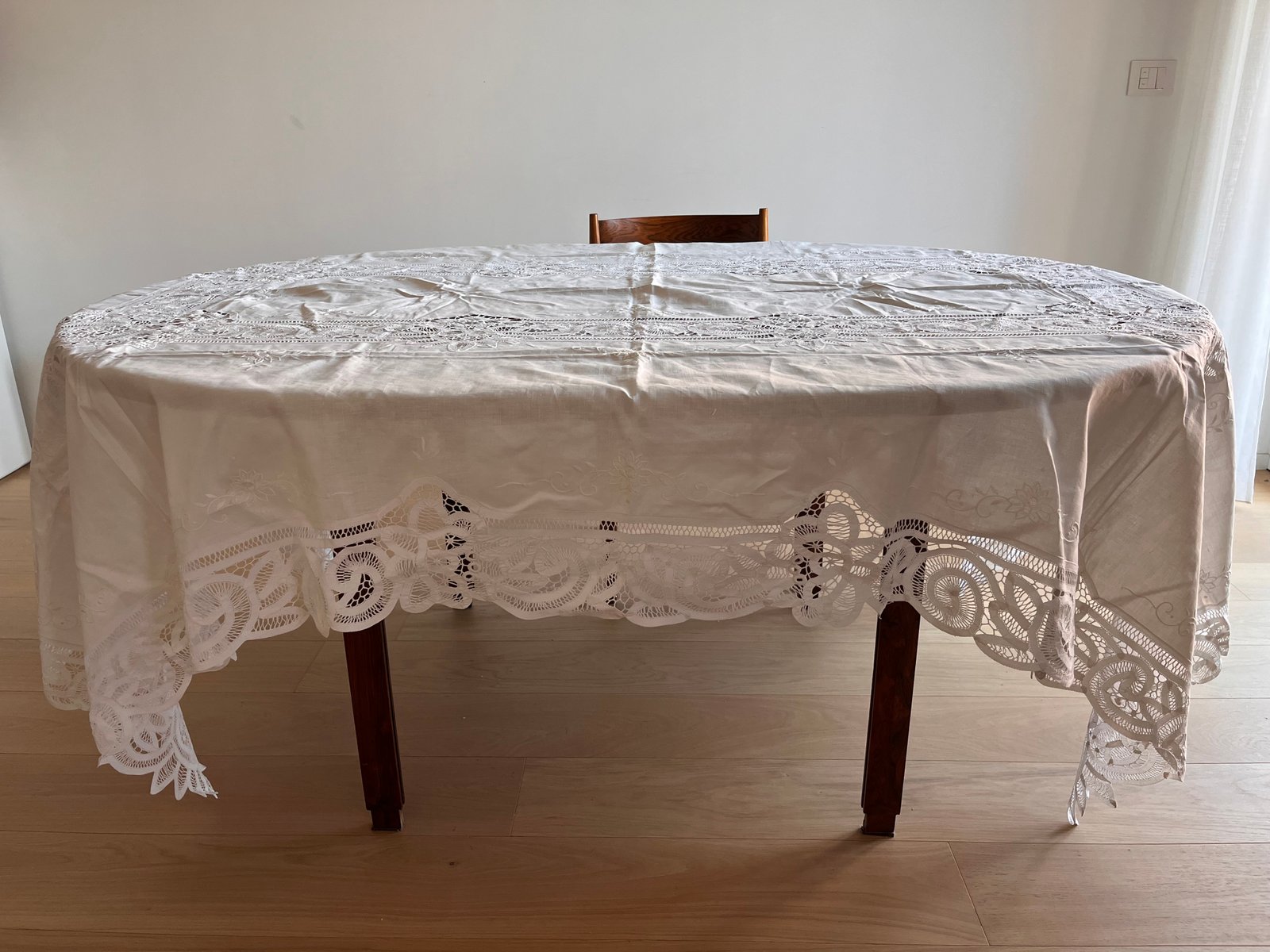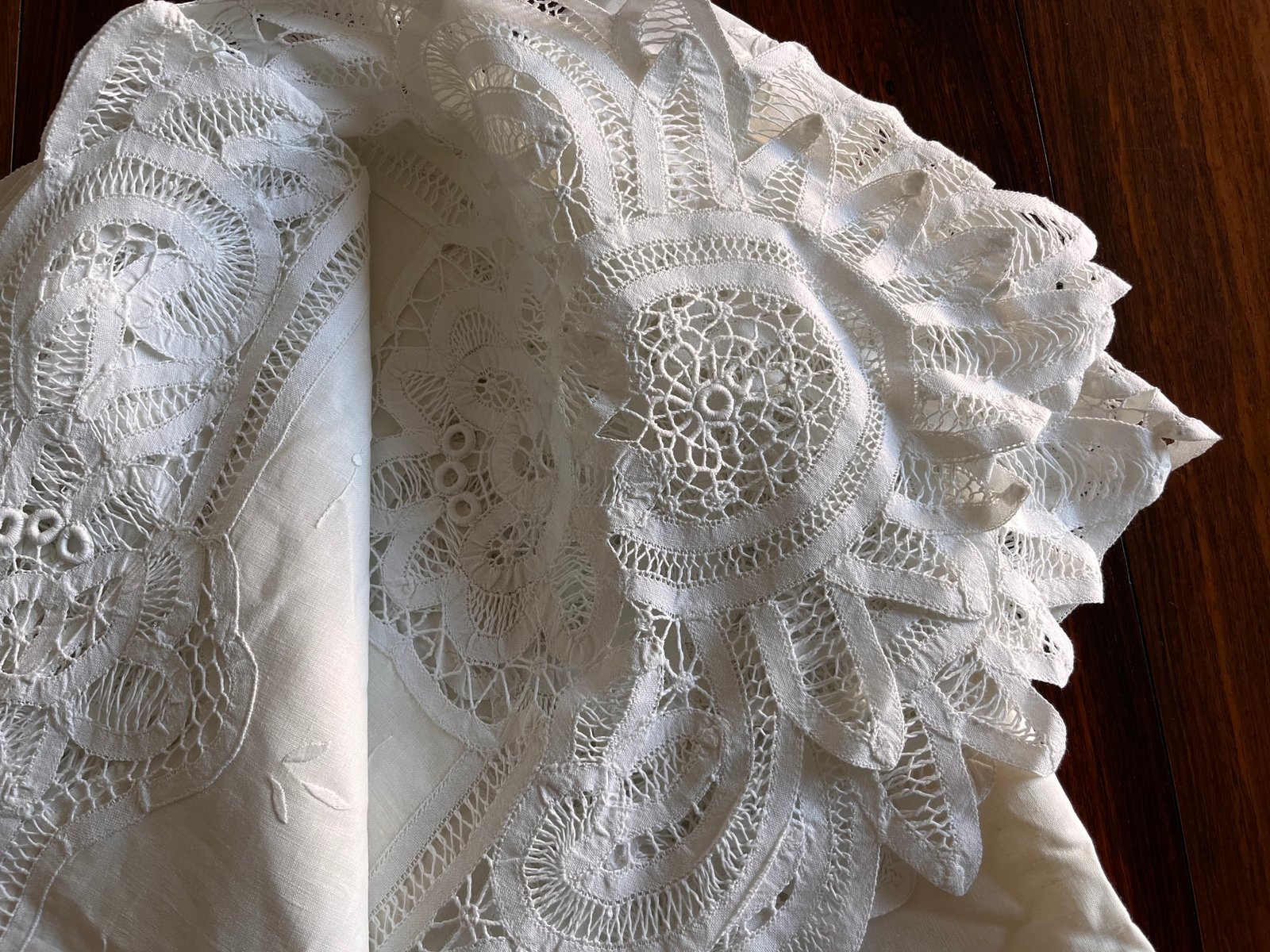 Large Hand-Embroidered Linen Tablecloth, 1900s