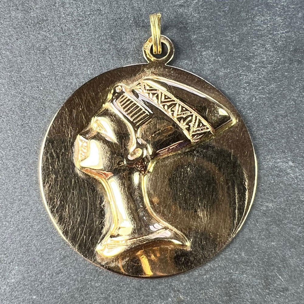 Large Italian 18 Karat Yellow Gold Queen Nefertiti Bust Charm Pendant, 1980s