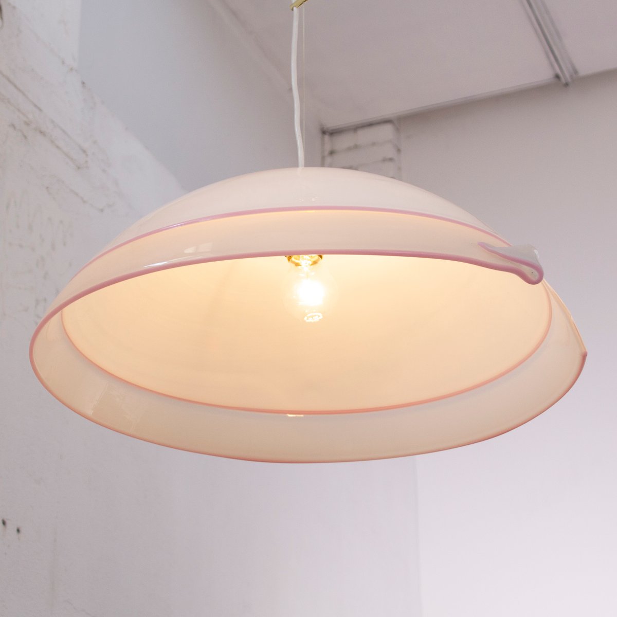 Large Italian Ceiling Lamp in White Murano Glass with Pink Gray Finishes, 1980s