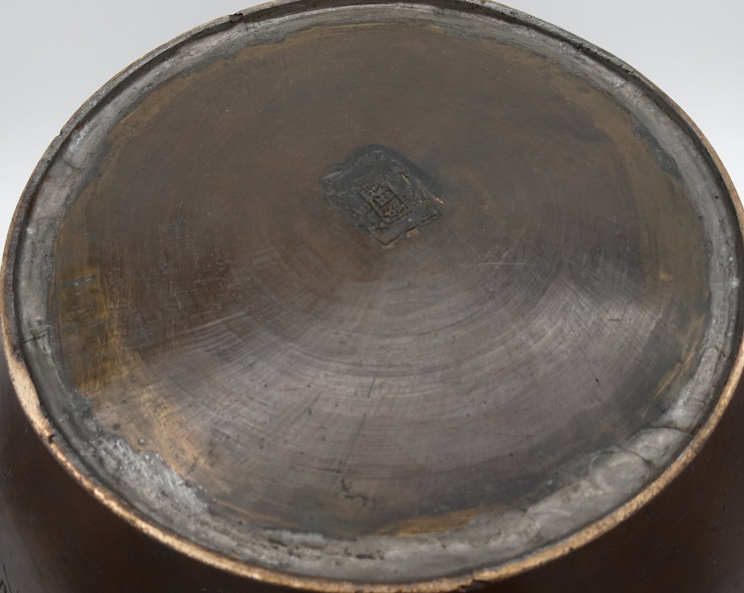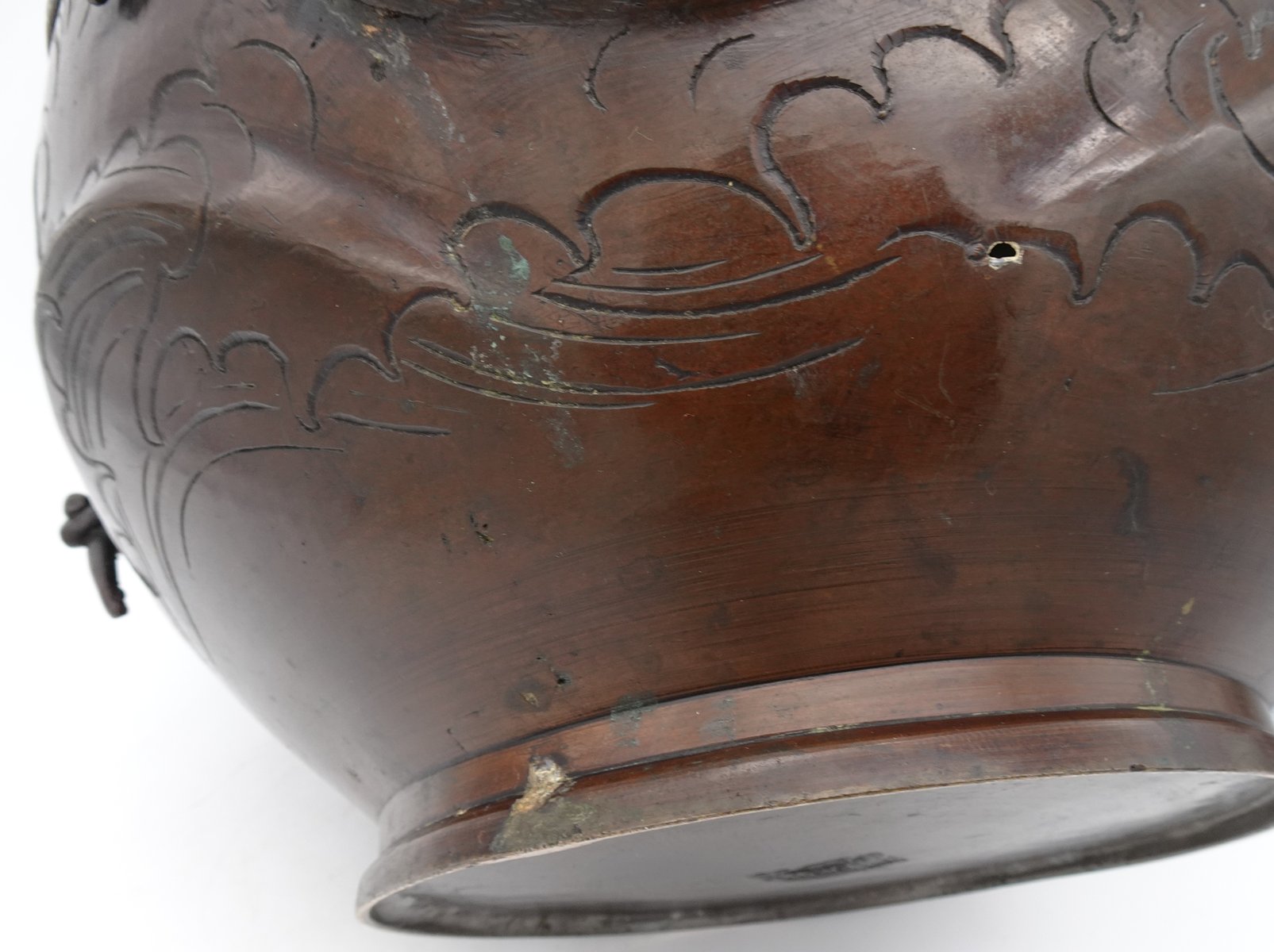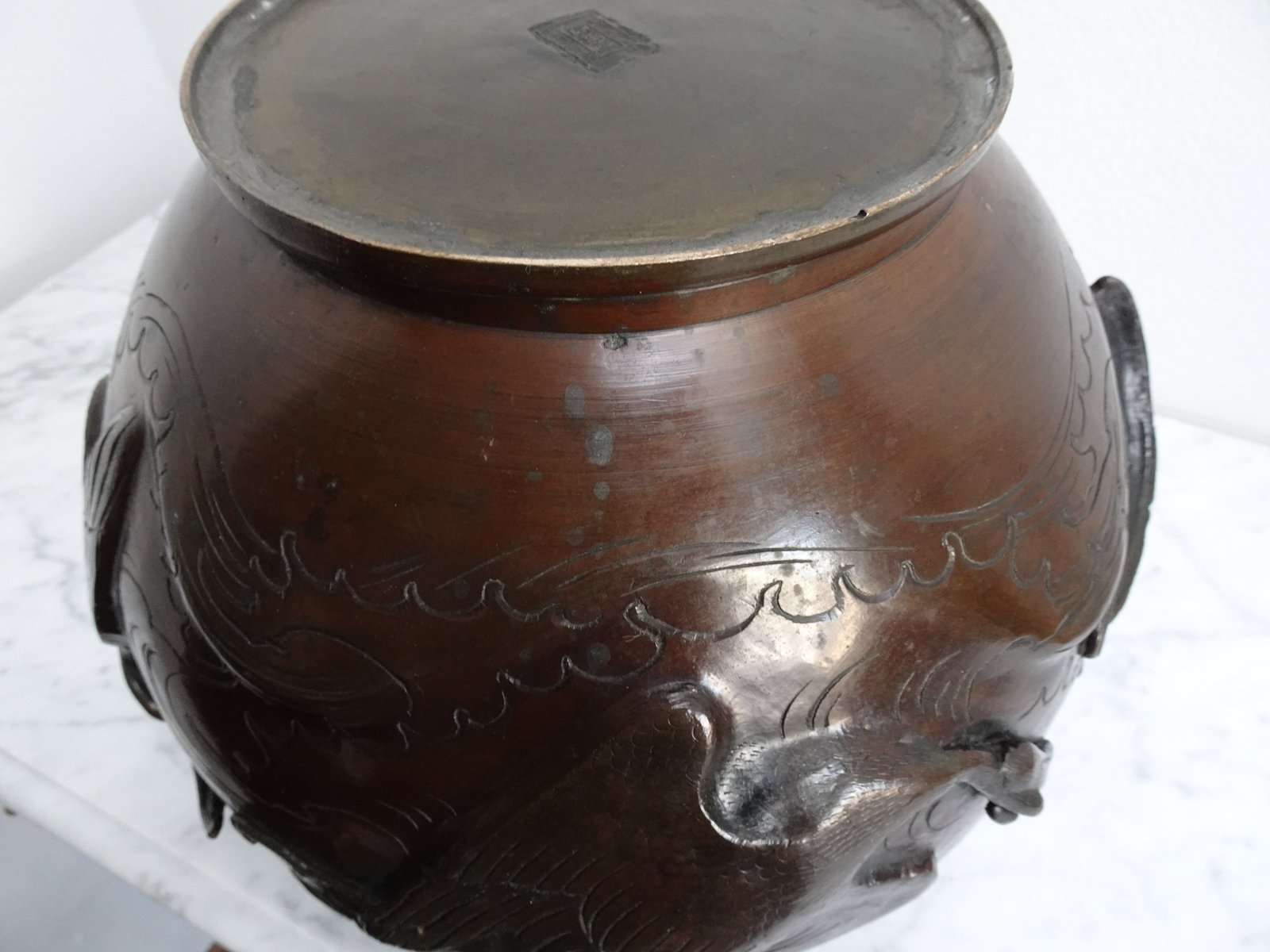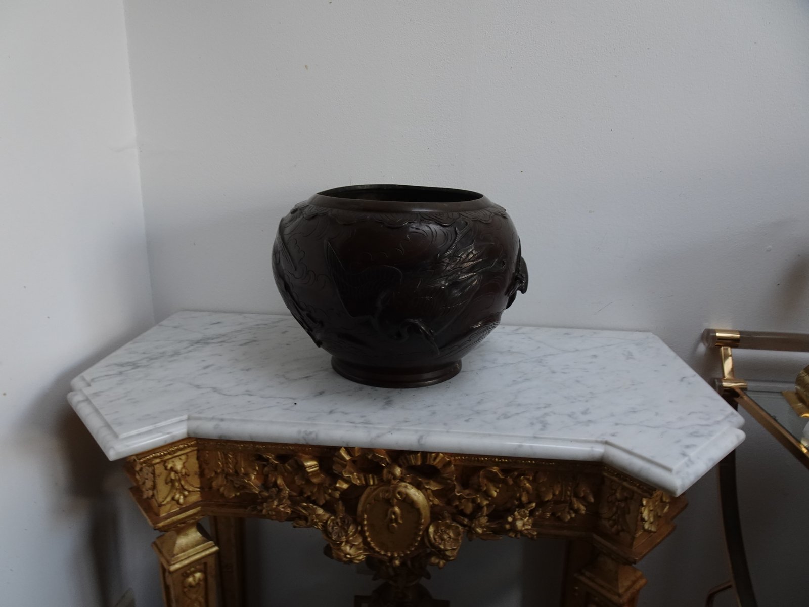 Large Japanese Meiji Bronze Planter with High Relief Cranes, 1890s