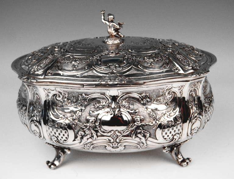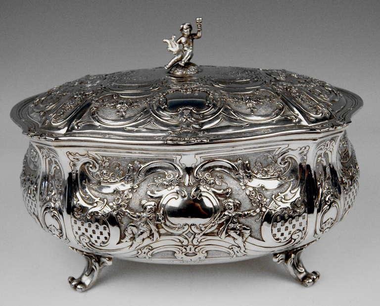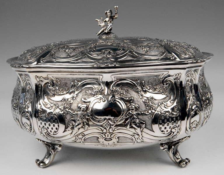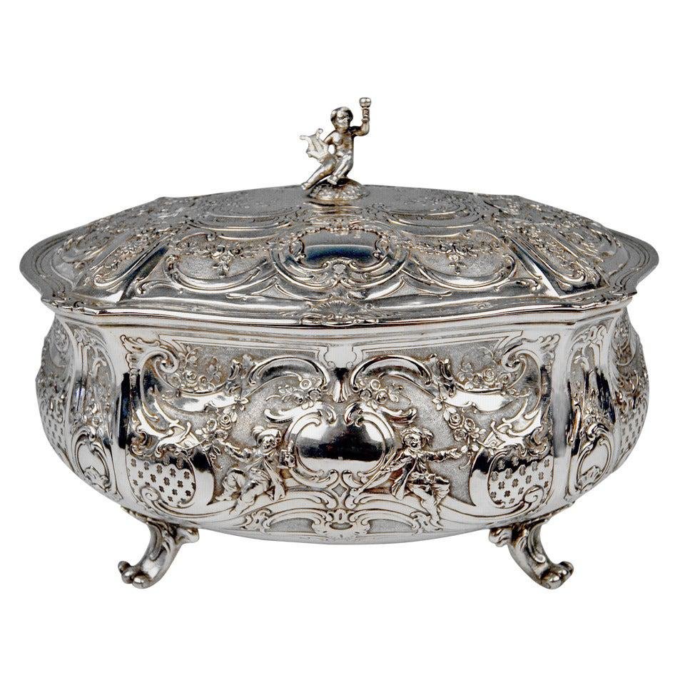 Large Lidded Bowl on Feet in Silver, Hanau, Germany, 1907-1910