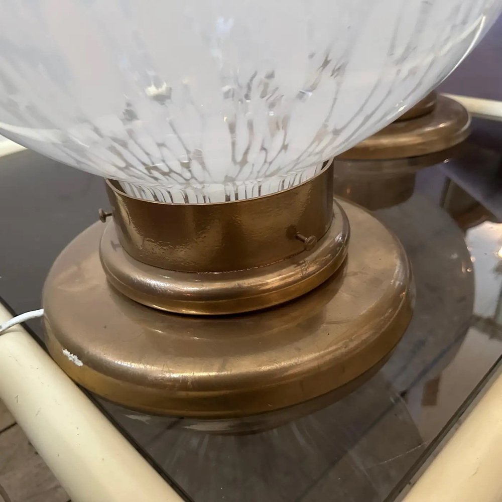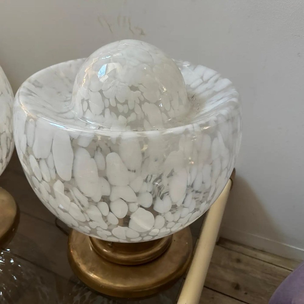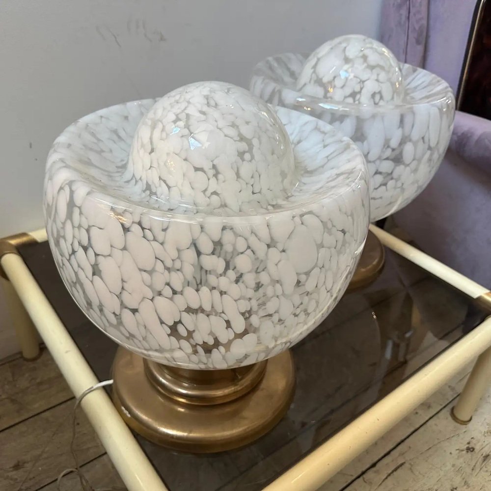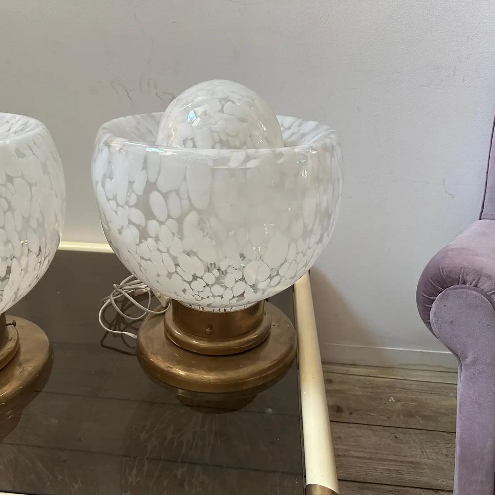 Large Mid-Century Modern Murano Glass and Brass Table Lamps attributed to Mazzega, 1970s, Set of 2