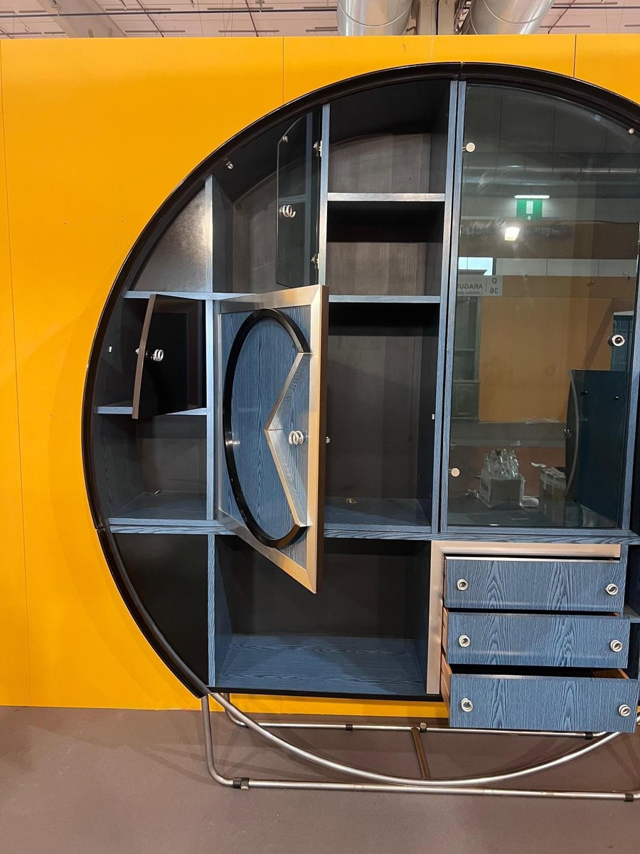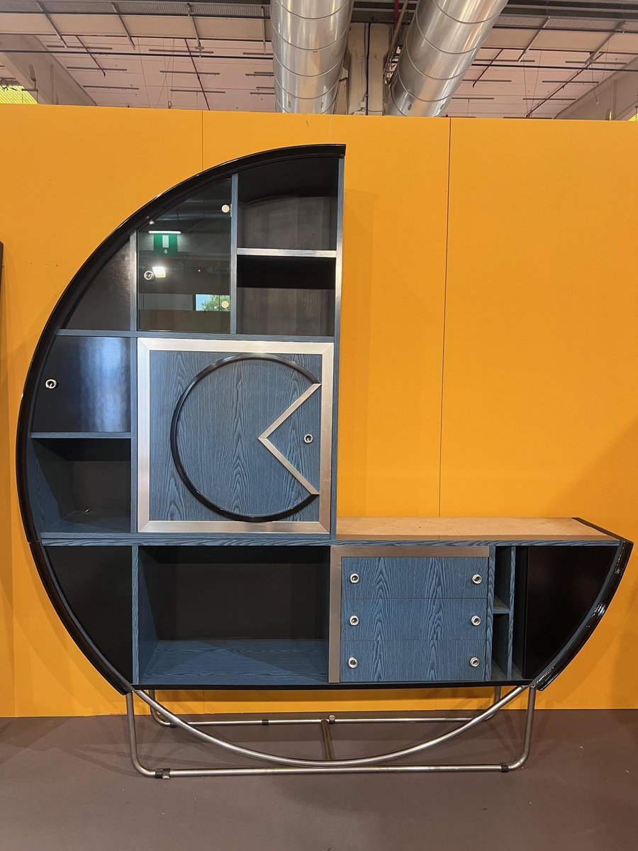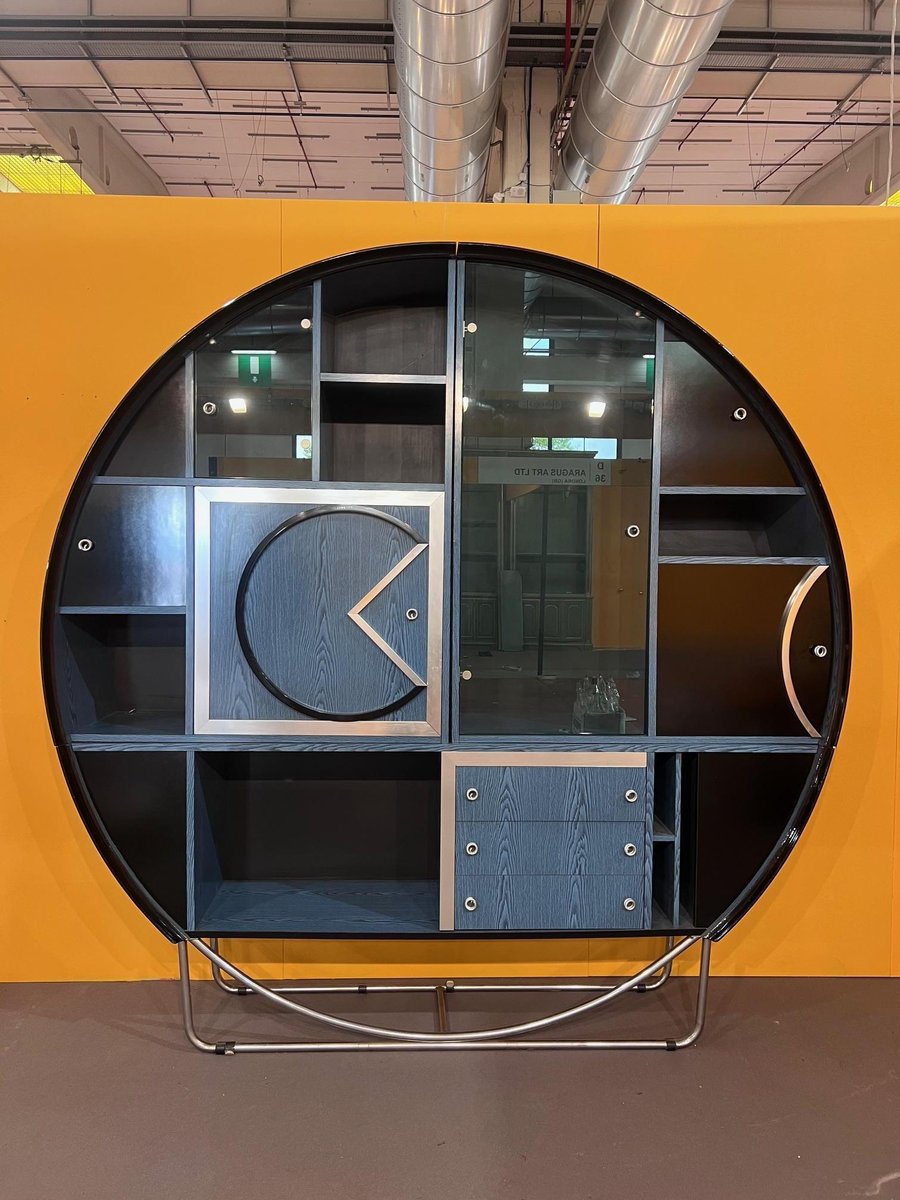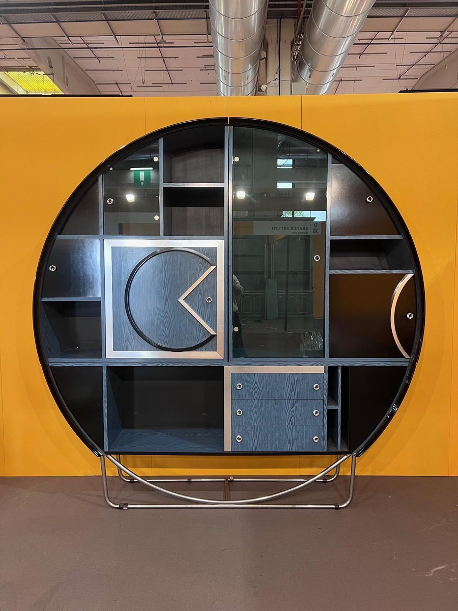 Large Round Geometric Bookcase in Wood, Metal and Glass, 1970s