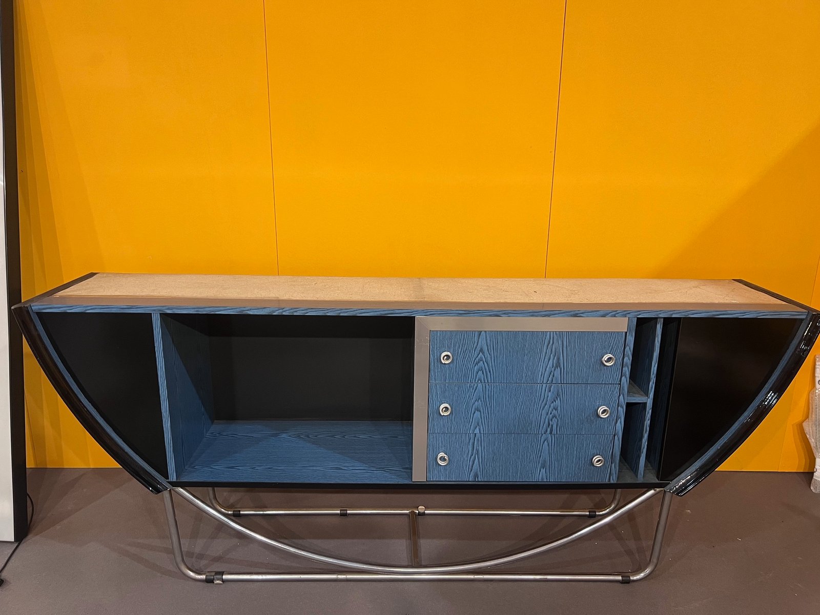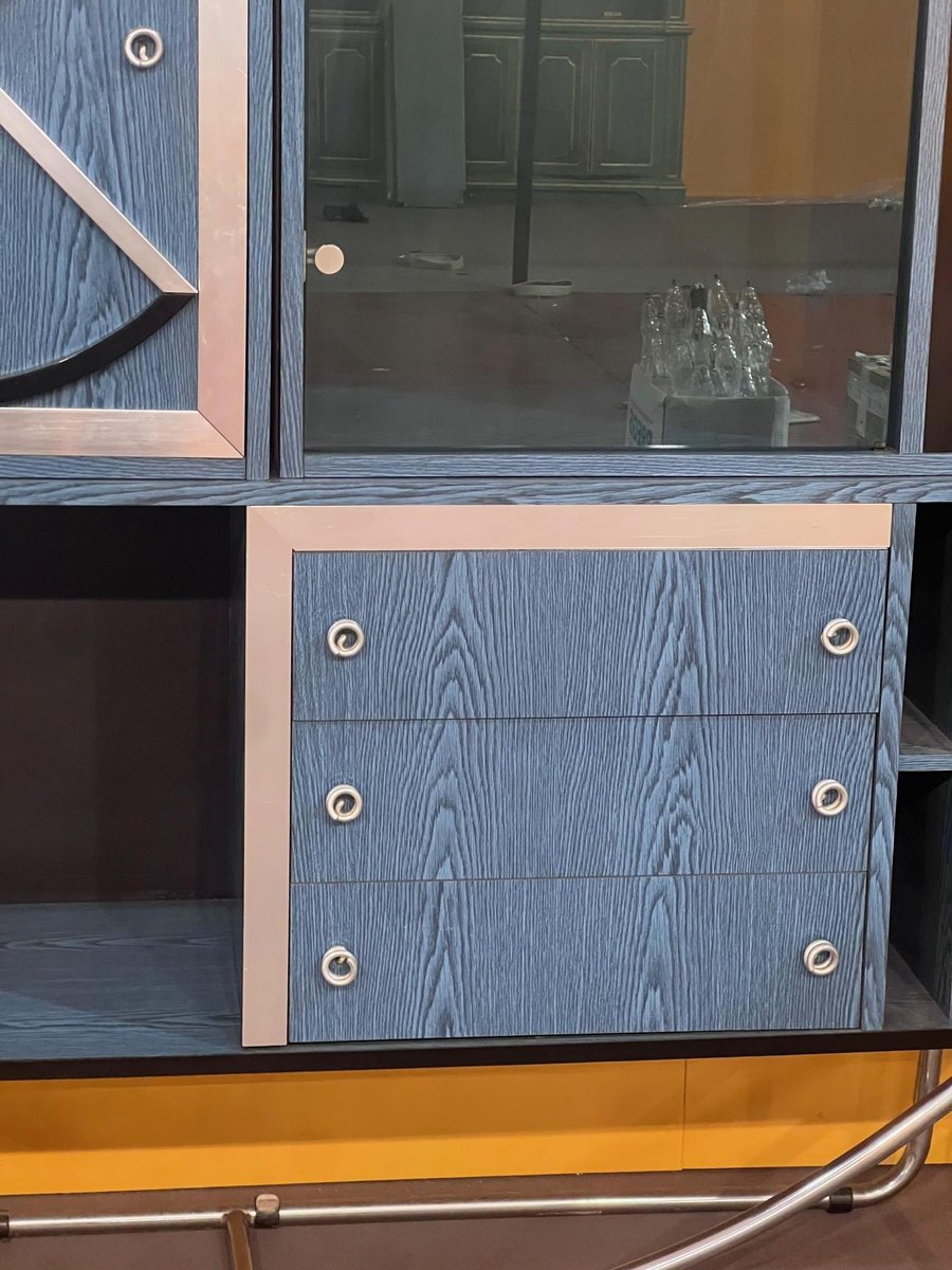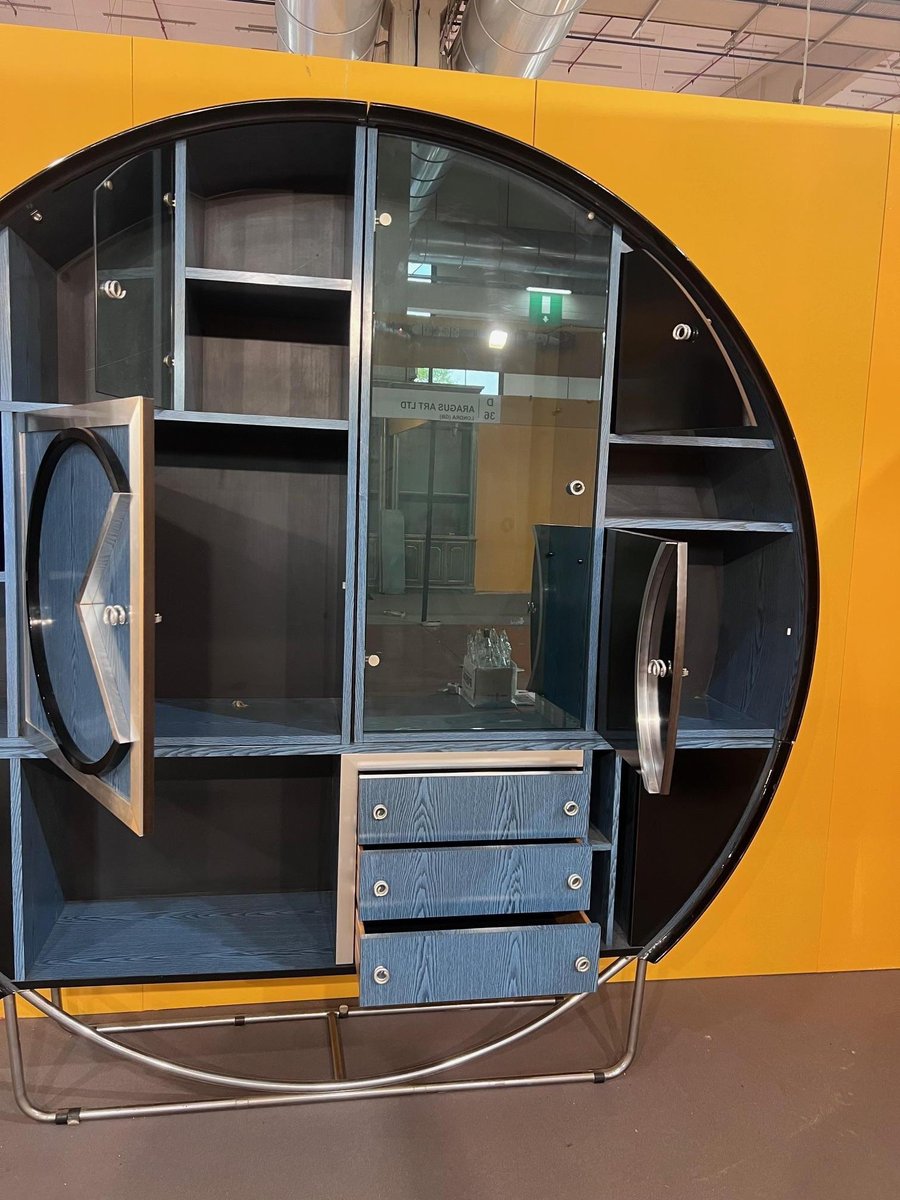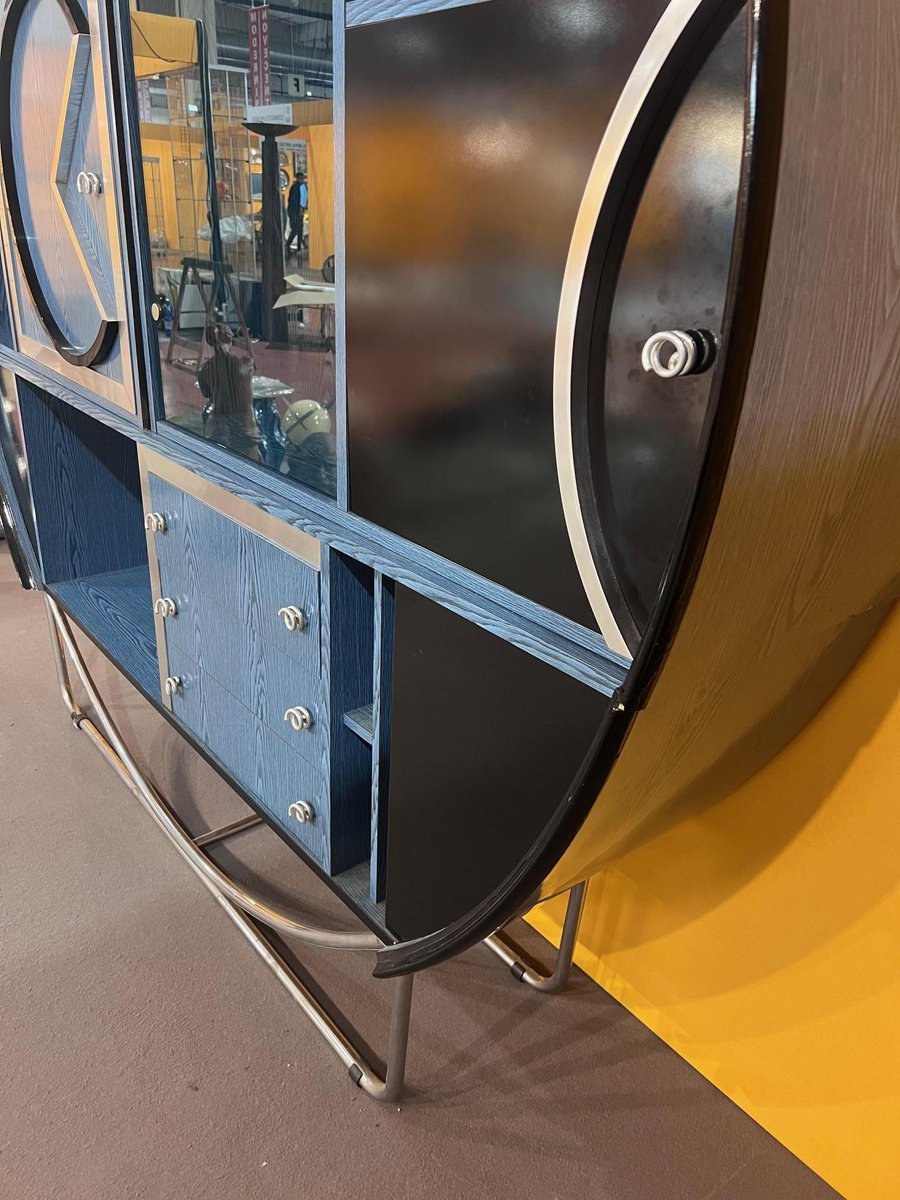 Large Round Geometric Bookcase in Wood, Metal and Glass, 1970s