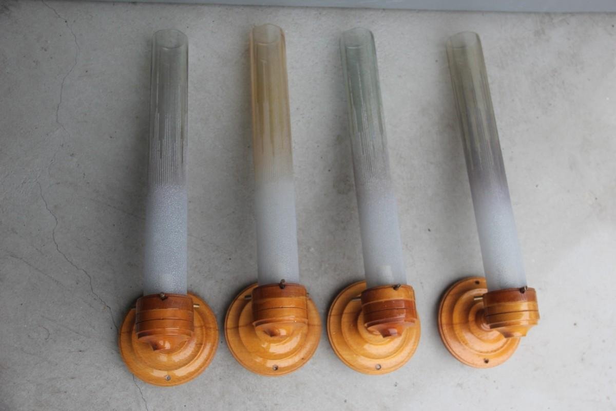 Large Round Wood & Murano Glass Sconce, 1960s