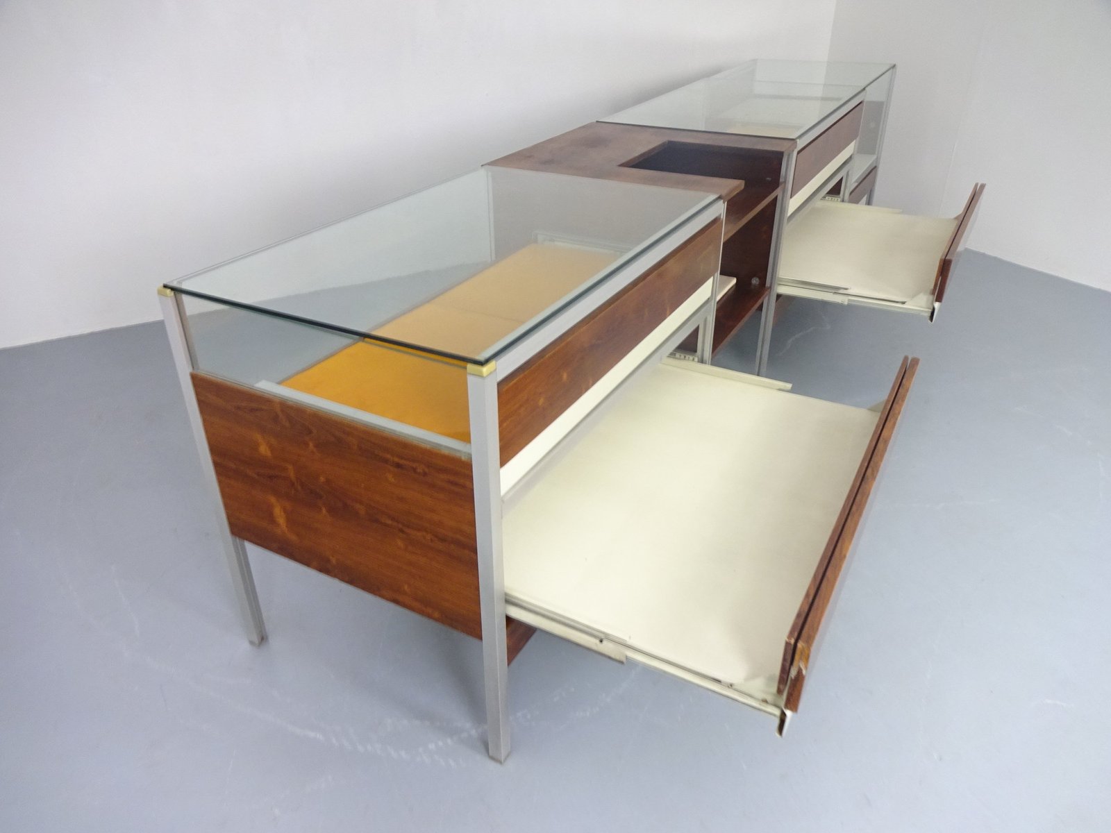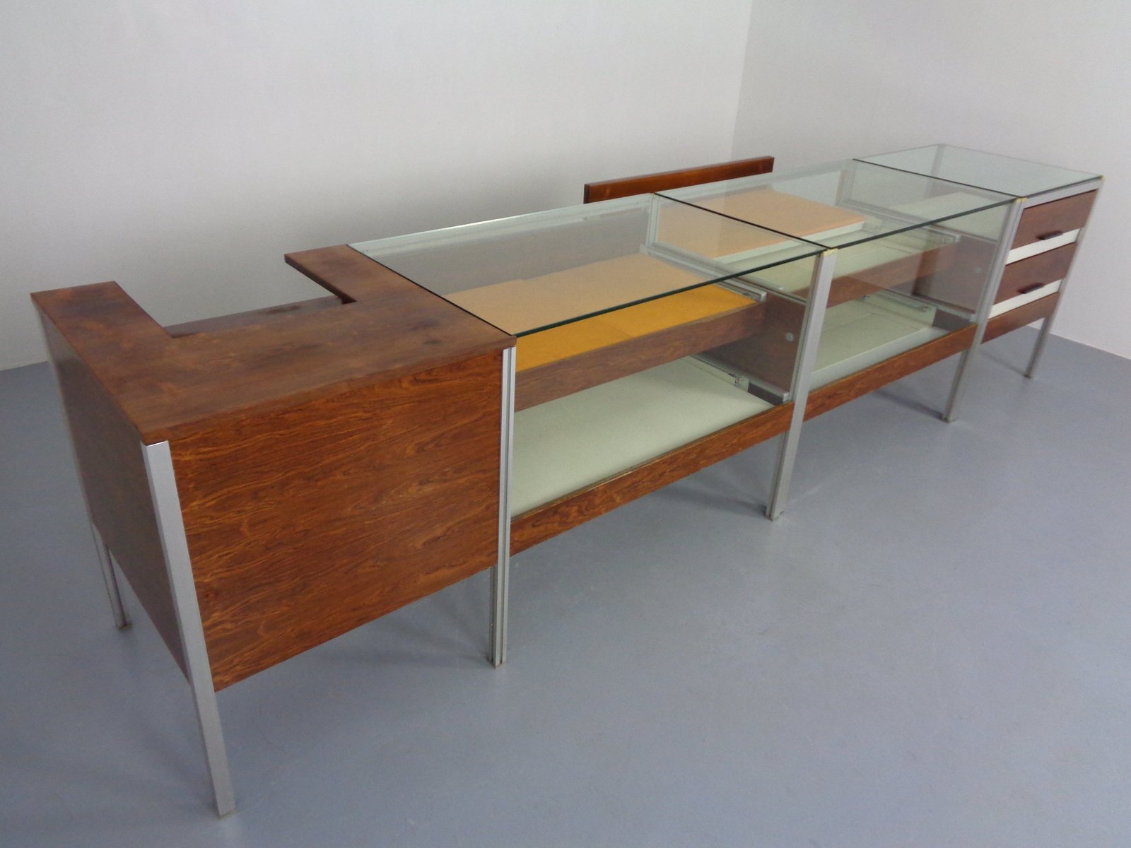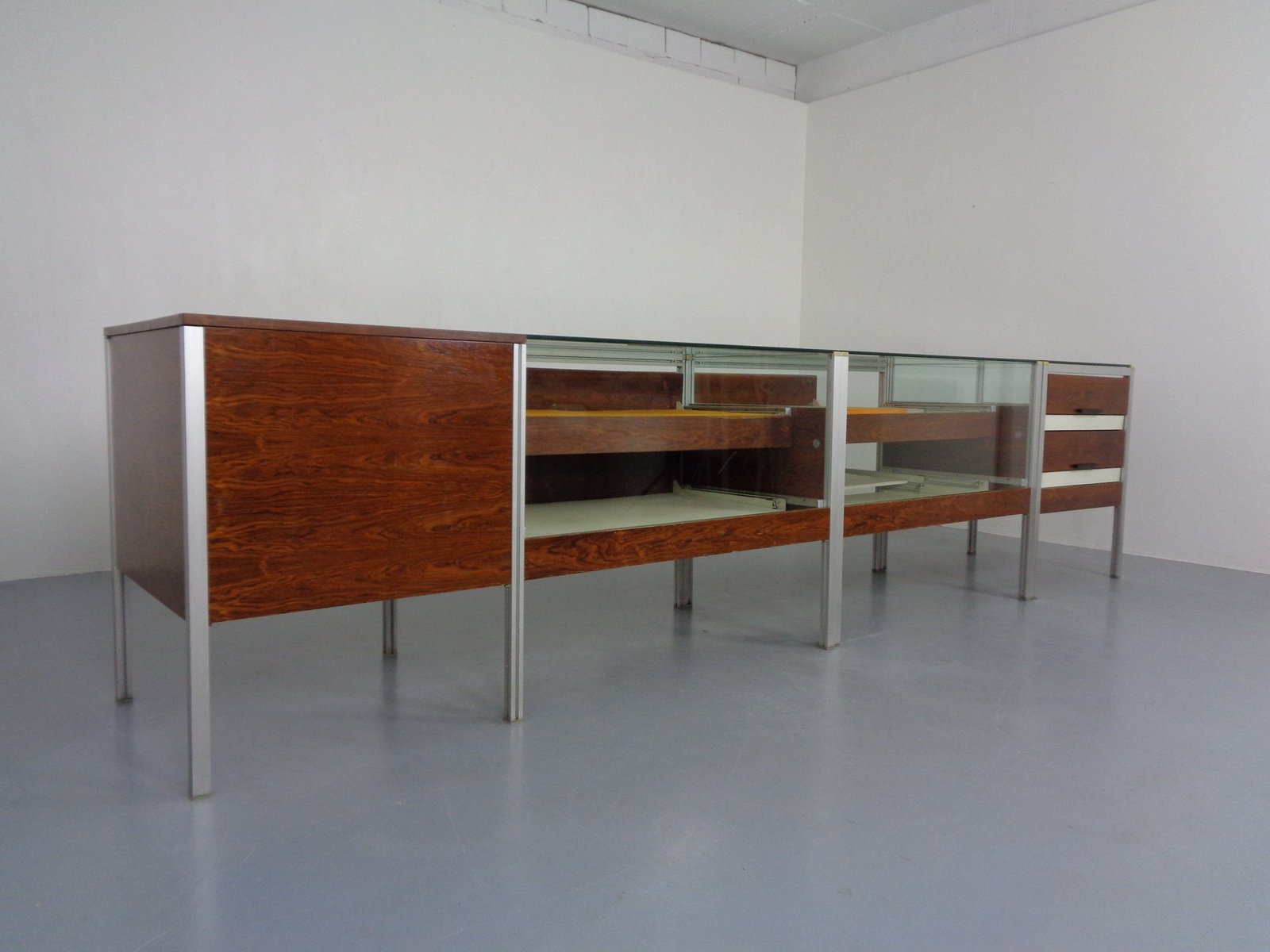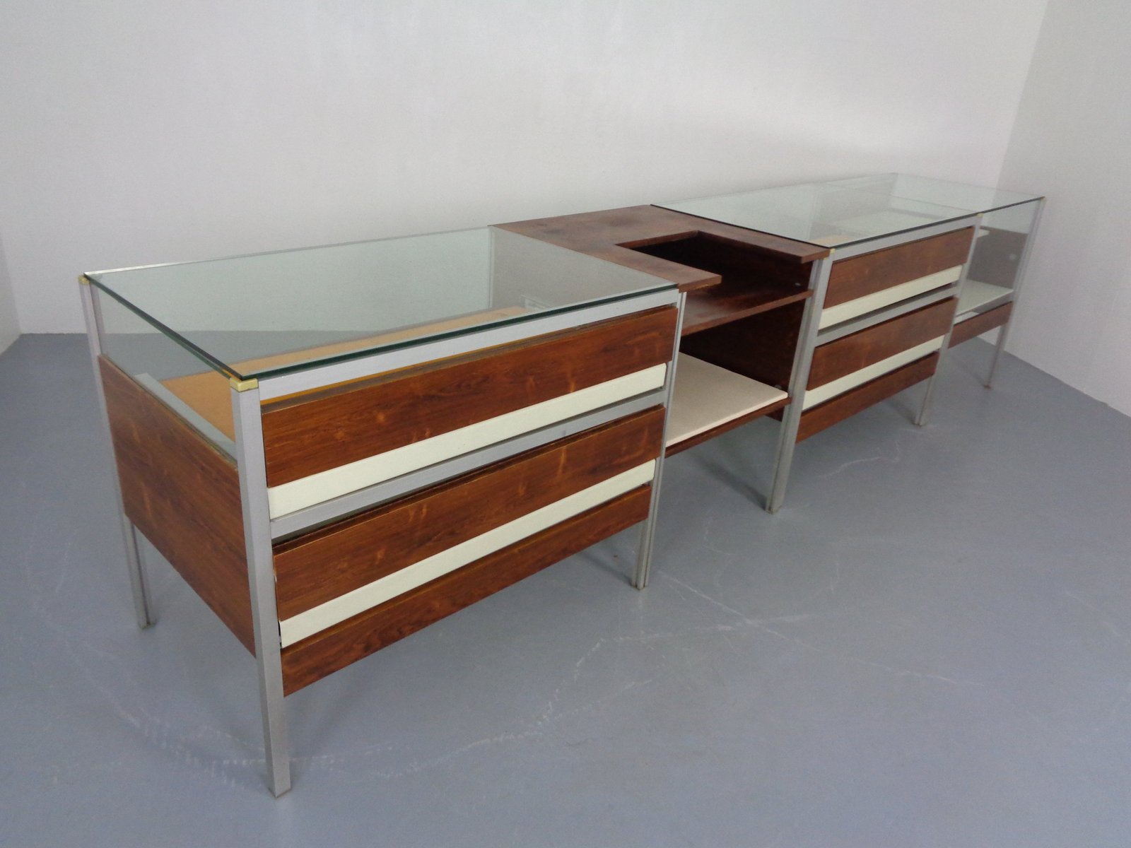 Large Sales Counters in Rosewood and Steel and Glass, 1960s, Set of 3