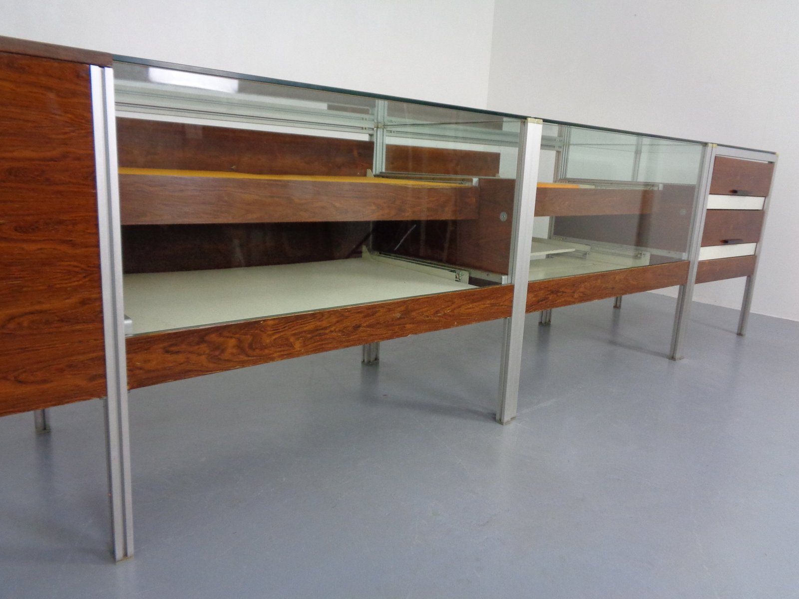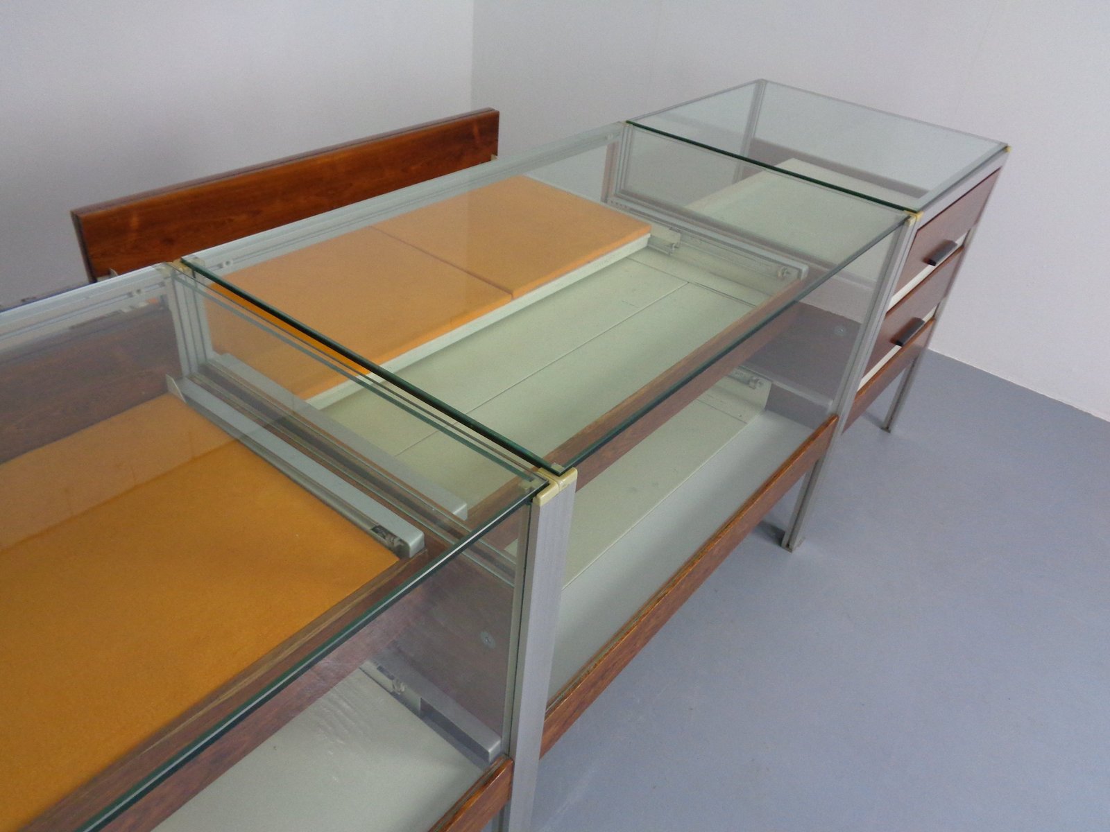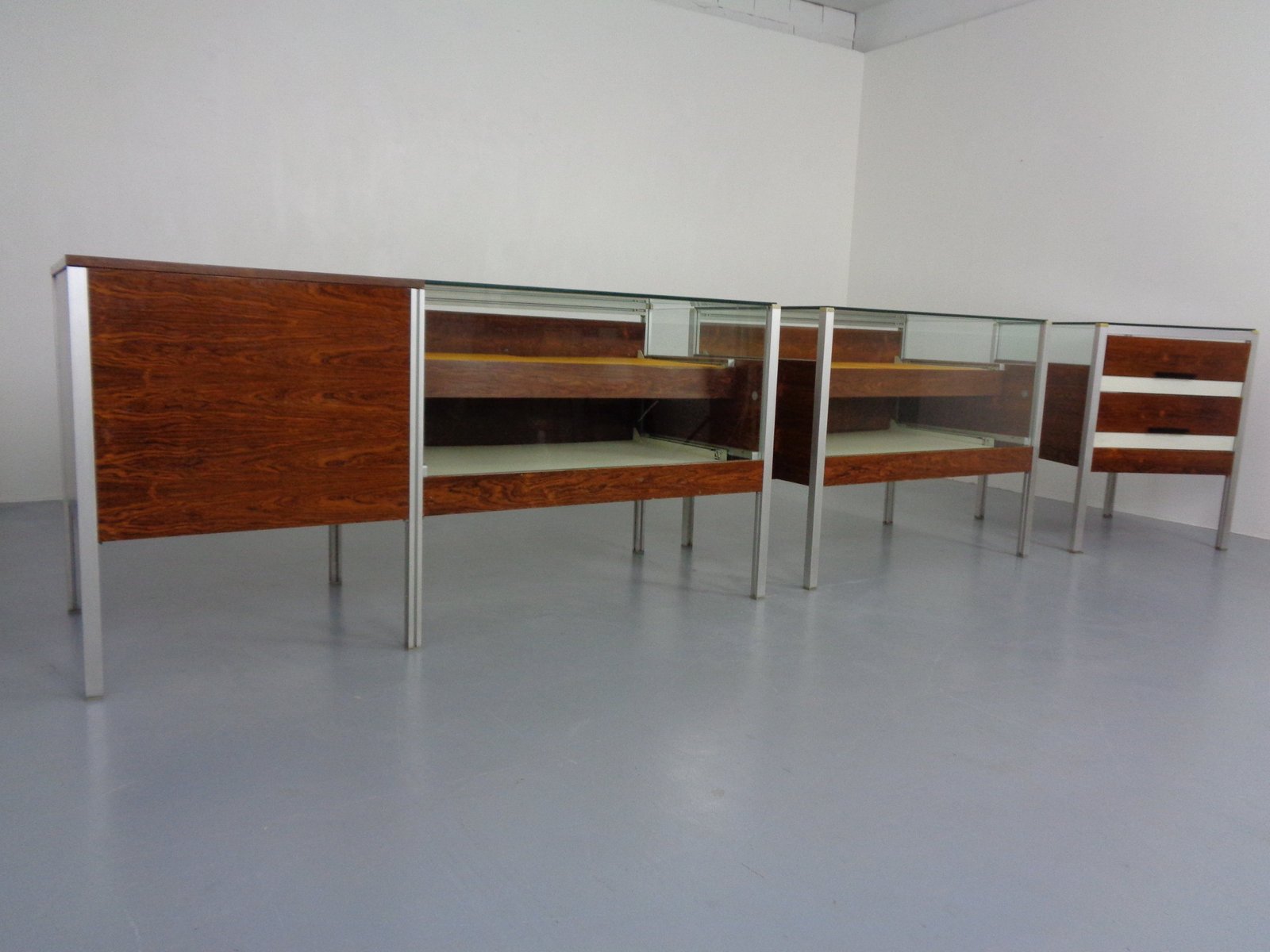 Large Sales Counters in Rosewood and Steel and Glass, 1960s, Set of 3