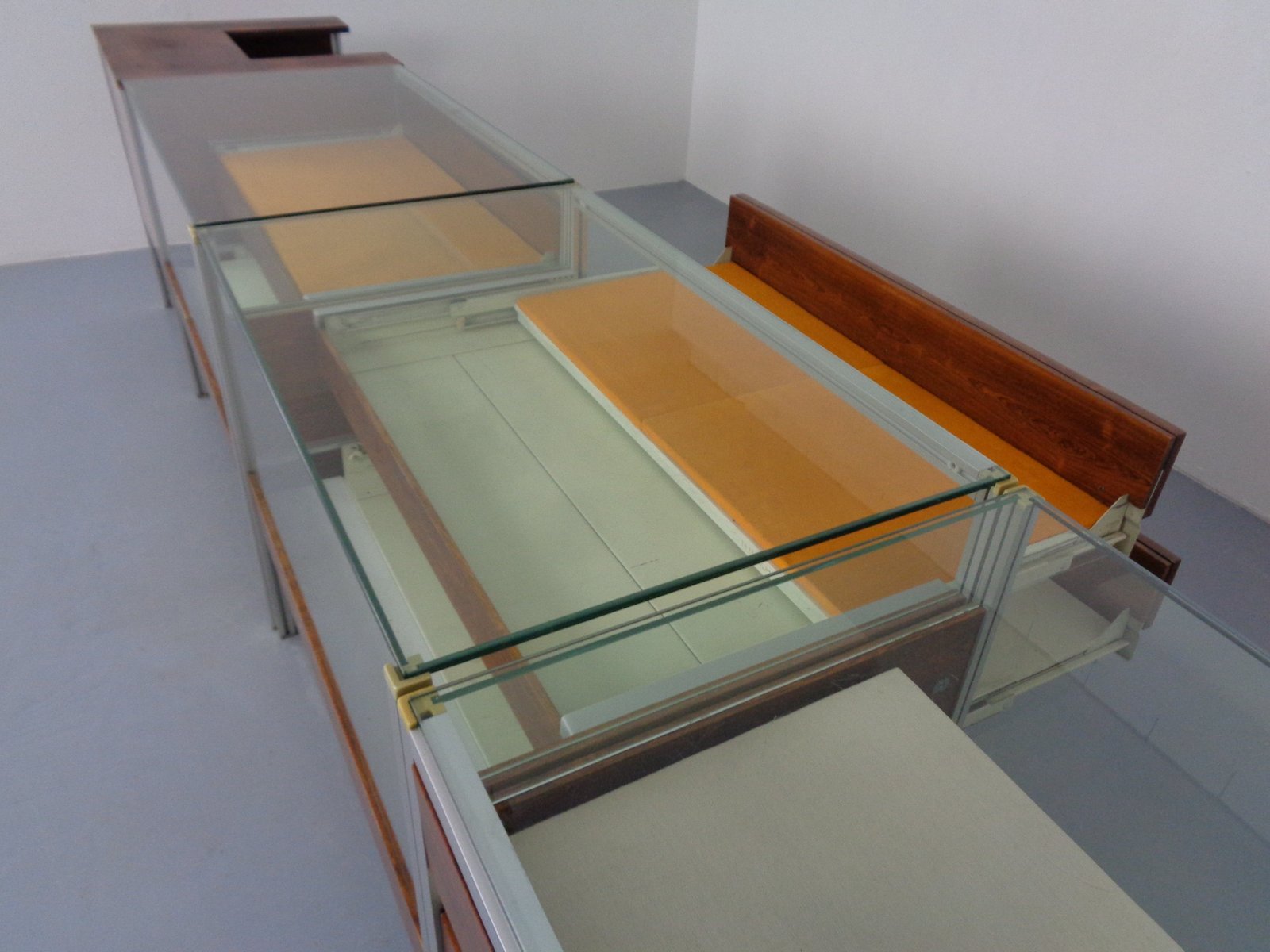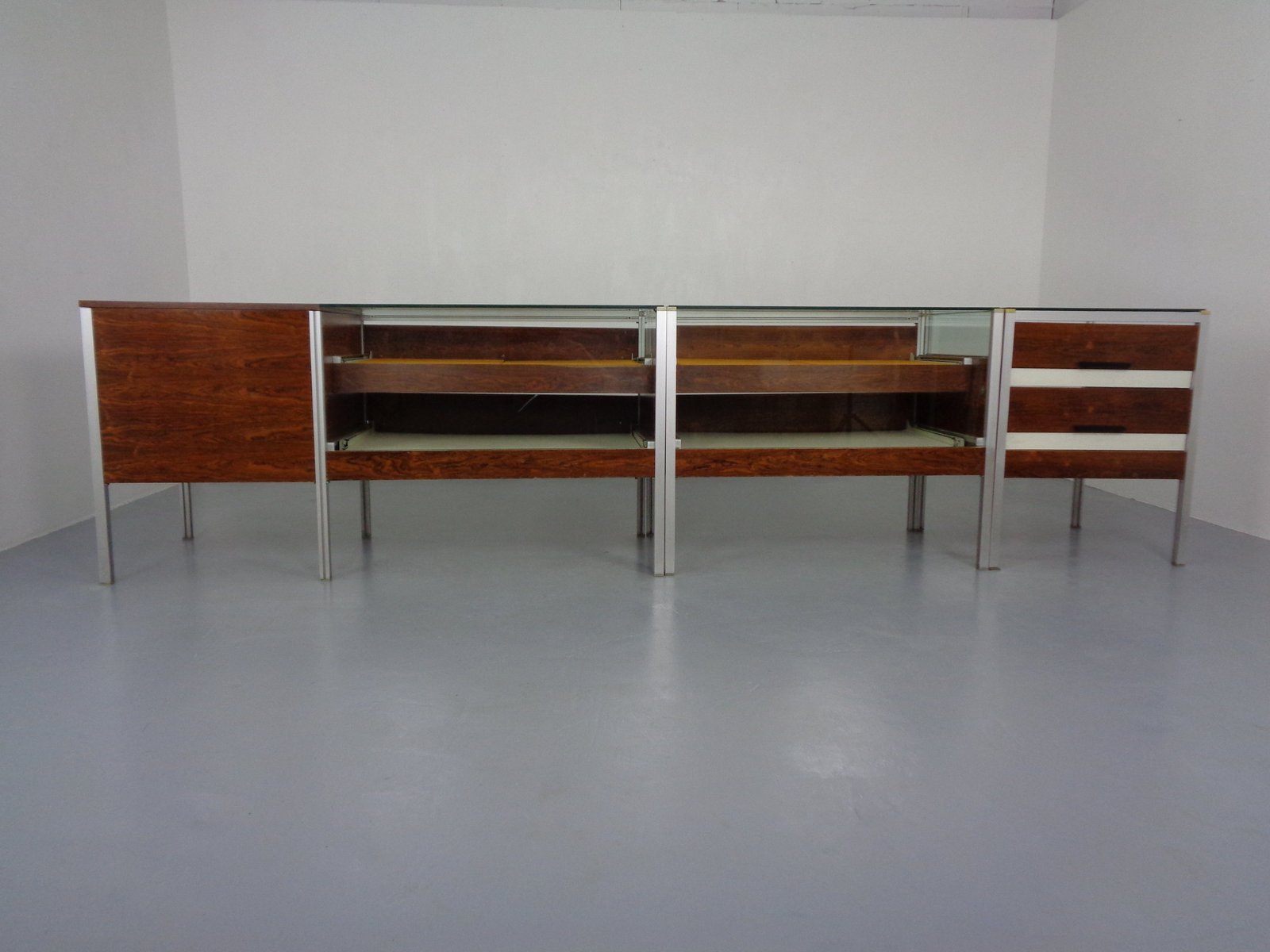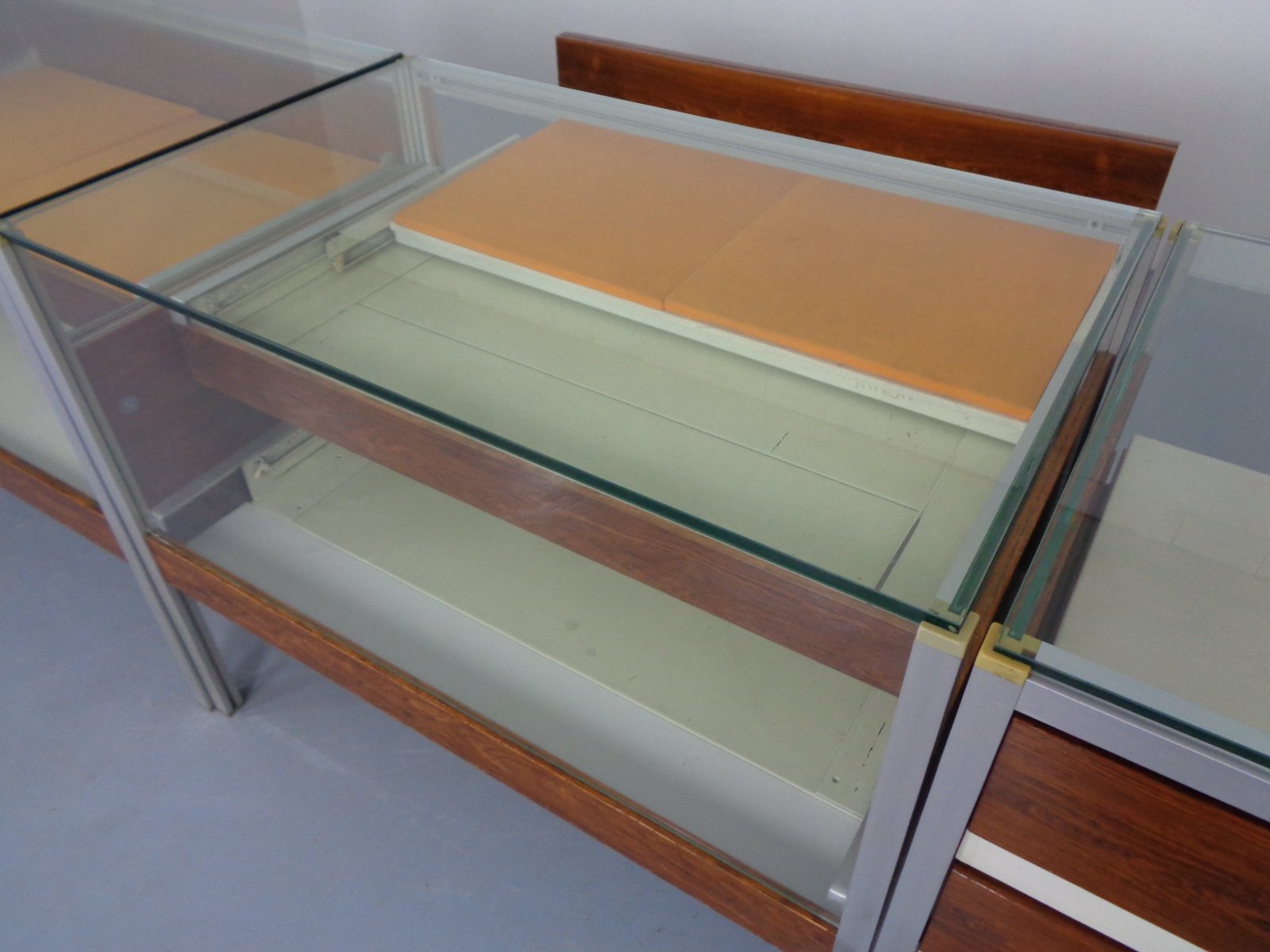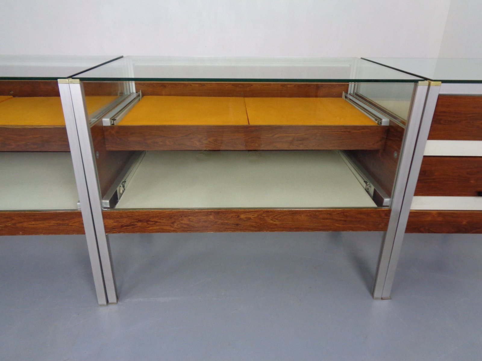 Large Sales Counters in Rosewood and Steel and Glass, 1960s, Set of 3